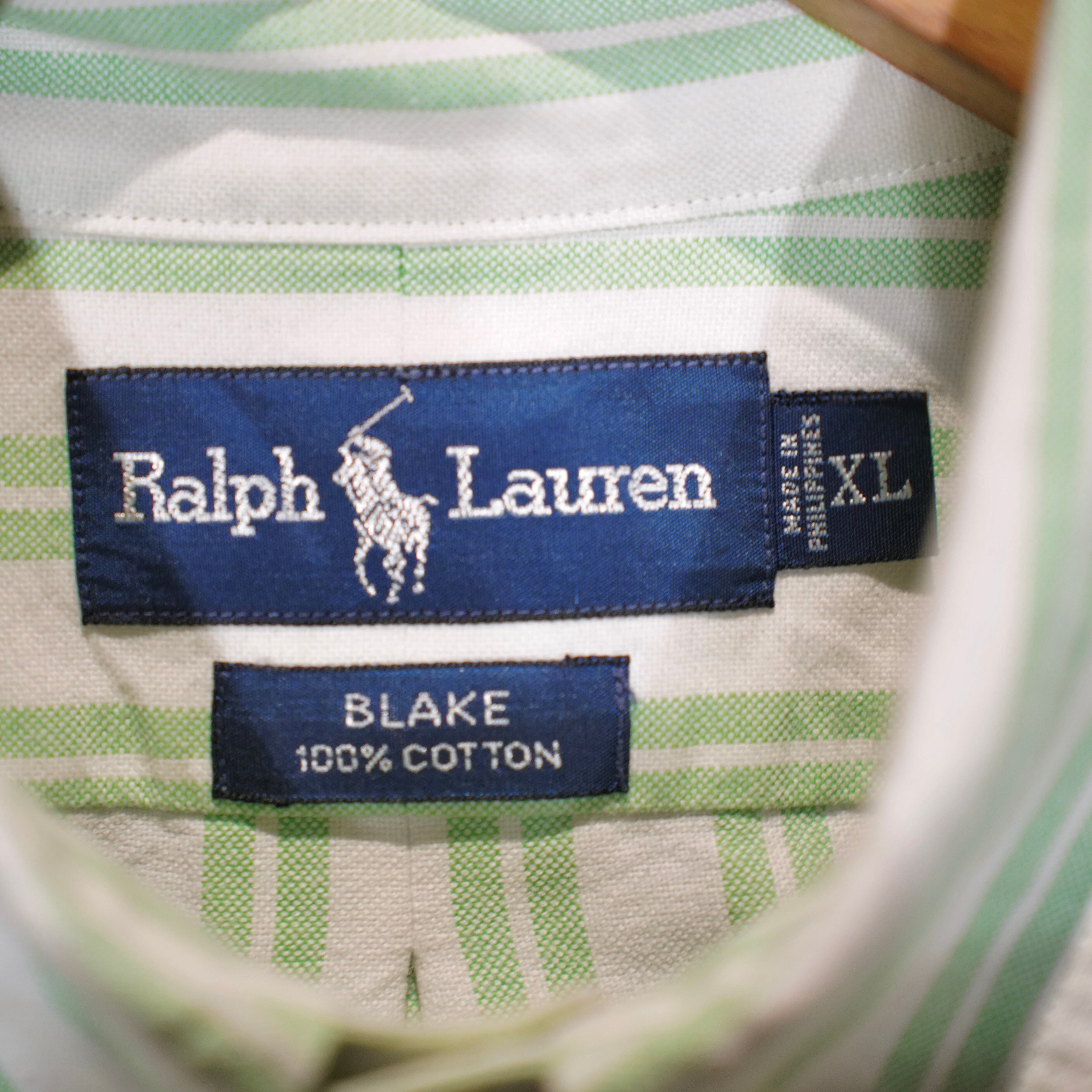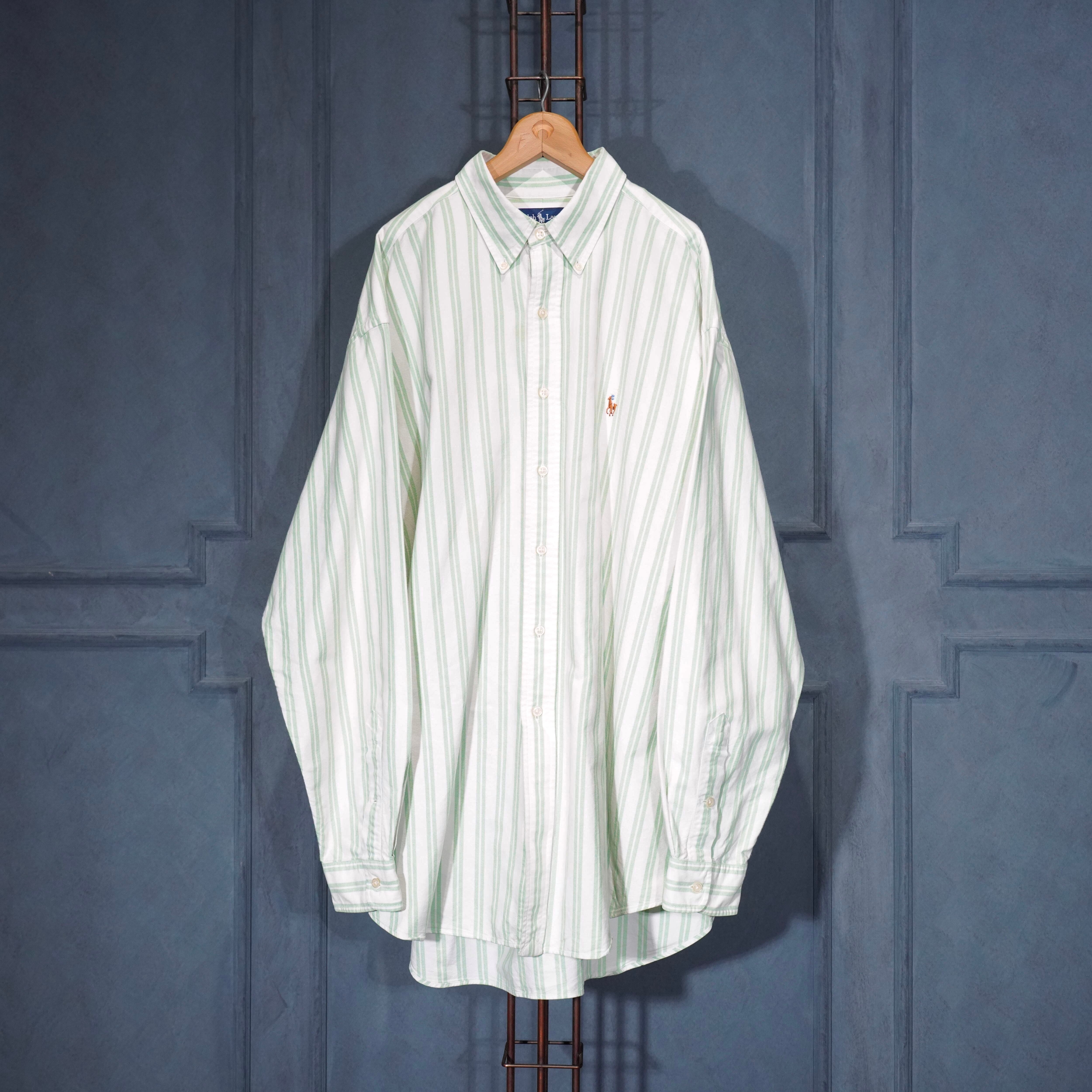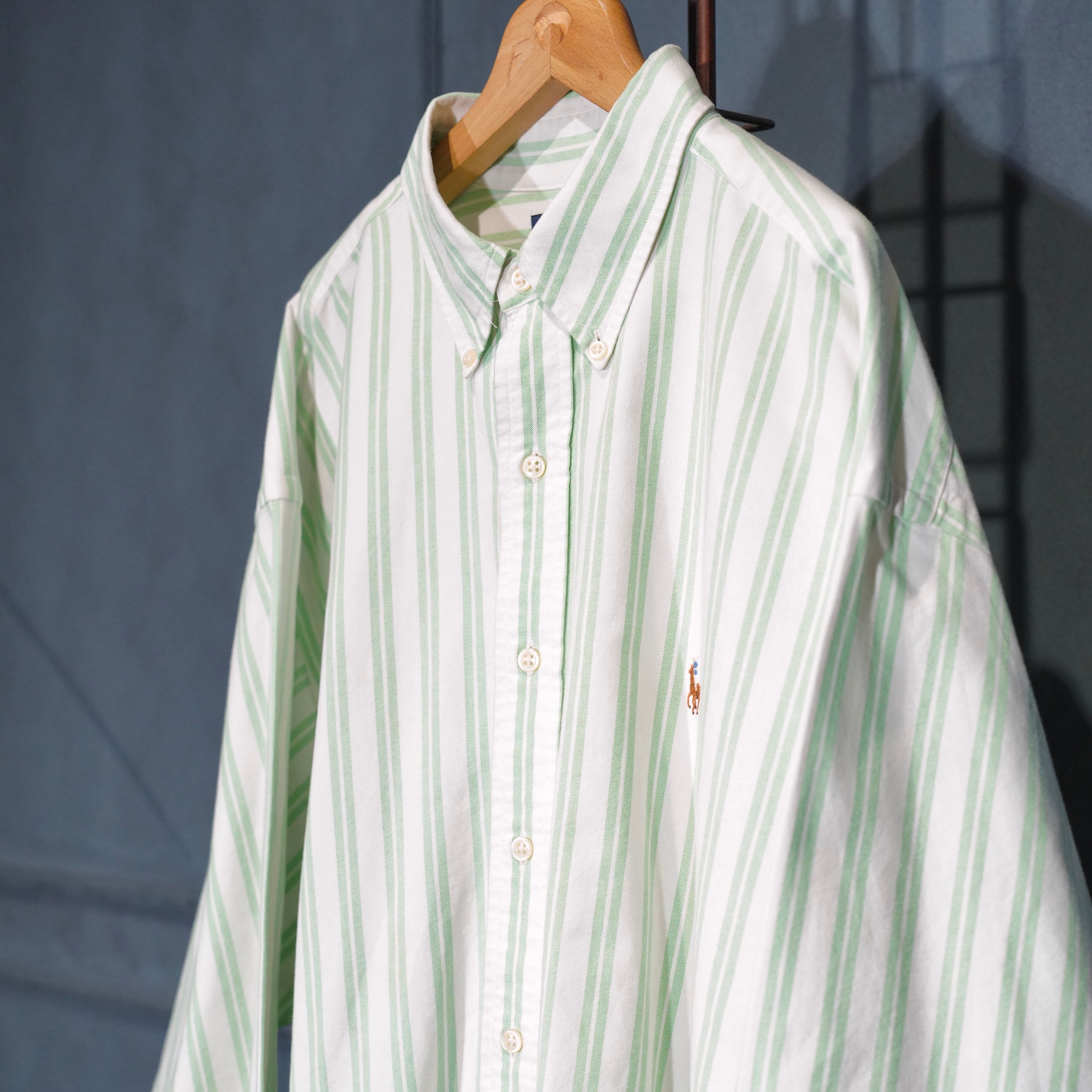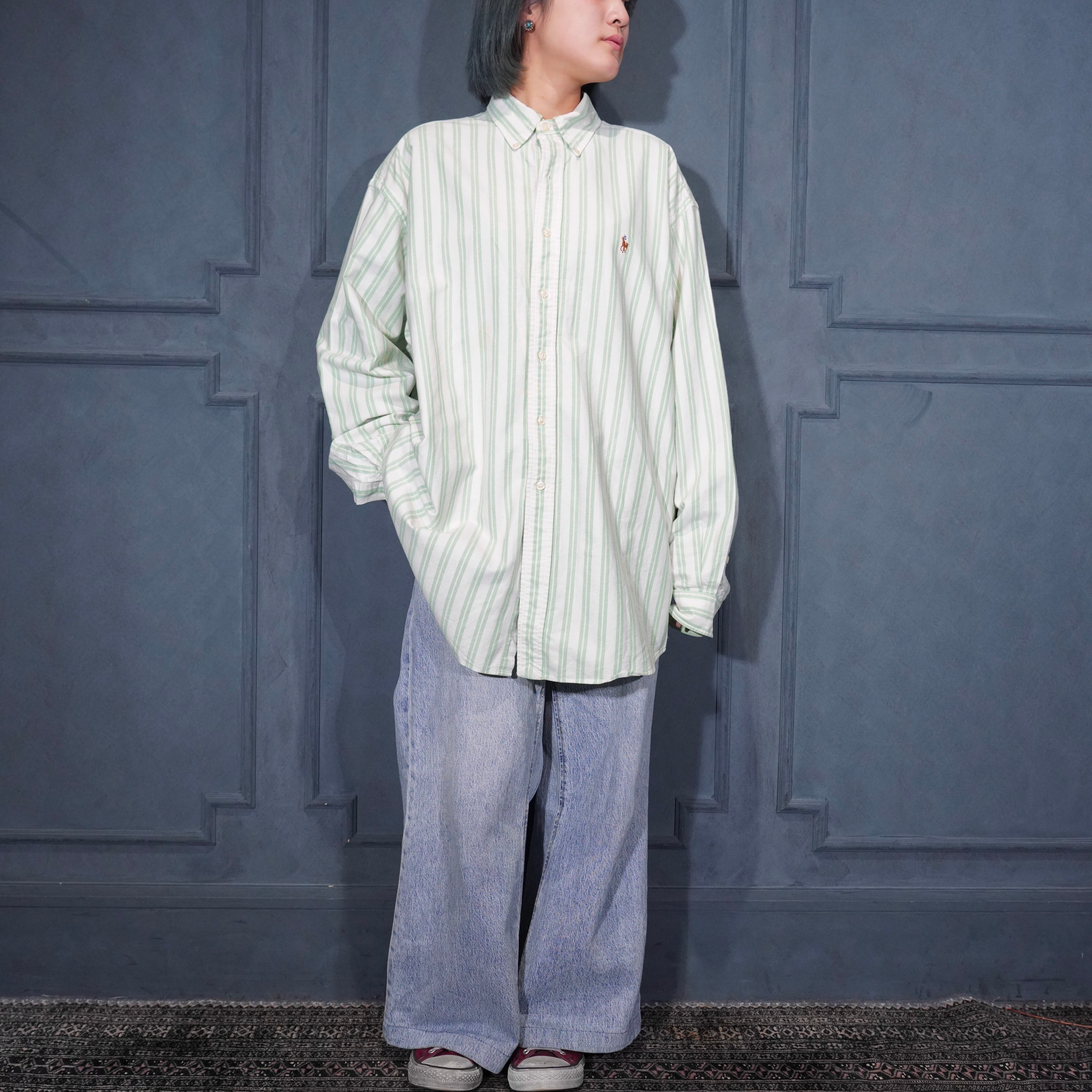 USA VINTAGE Ralph Lauren STRIPE PATTERNED HORSE EMBROIDERY DESIGN COTTON BD SHIRT/アメリカ古着ストライプ柄ホース刺繍デザインコットンボタンダウンシャツ