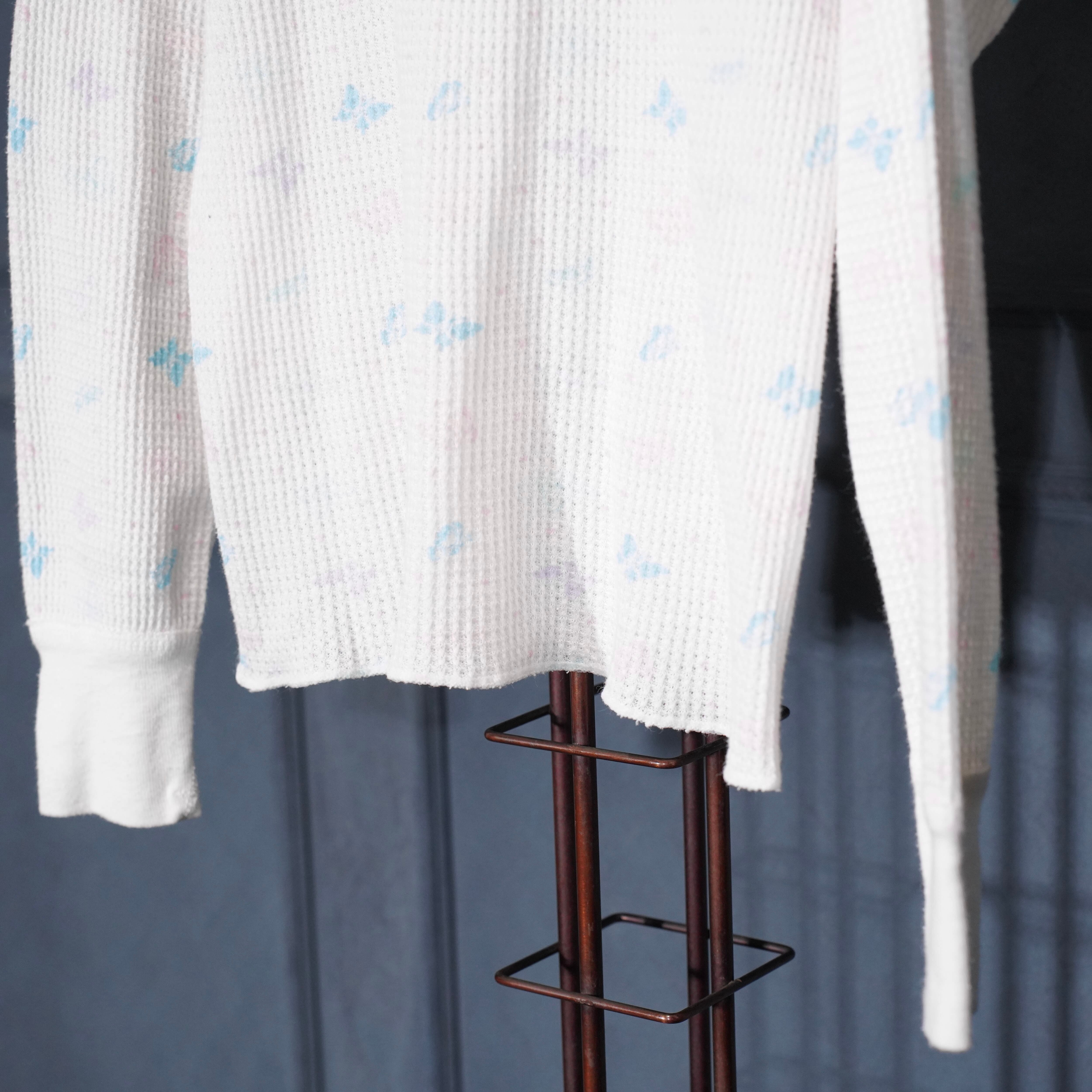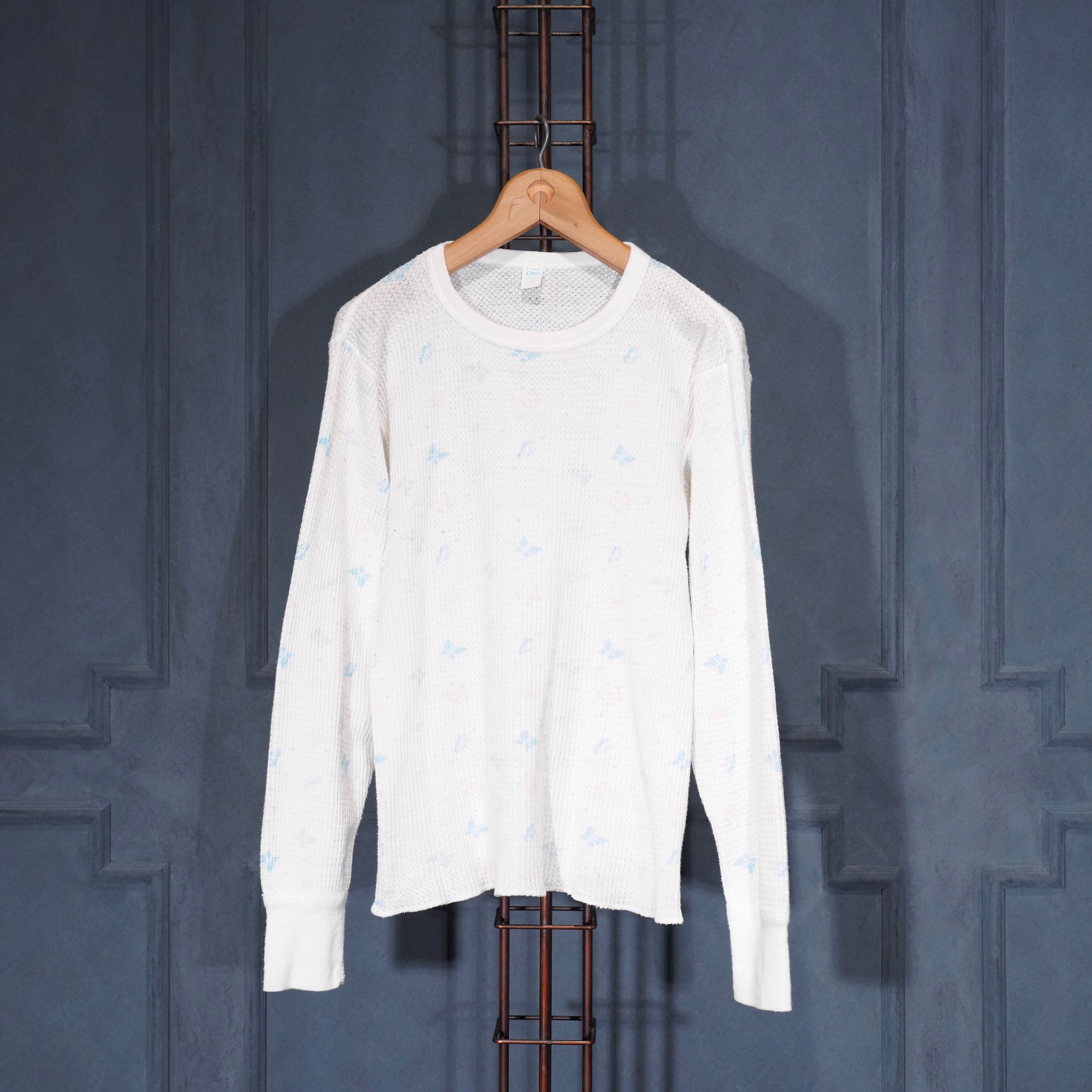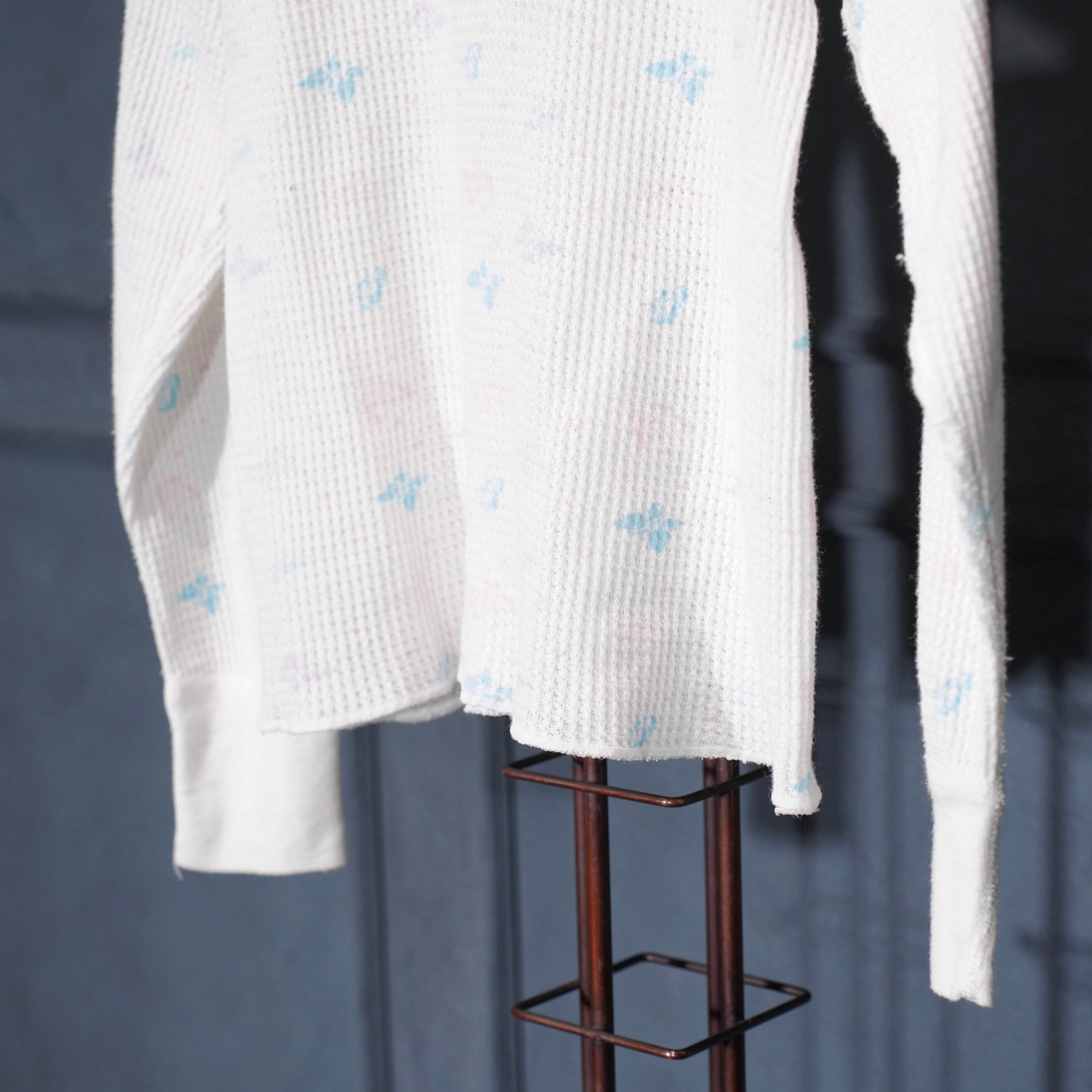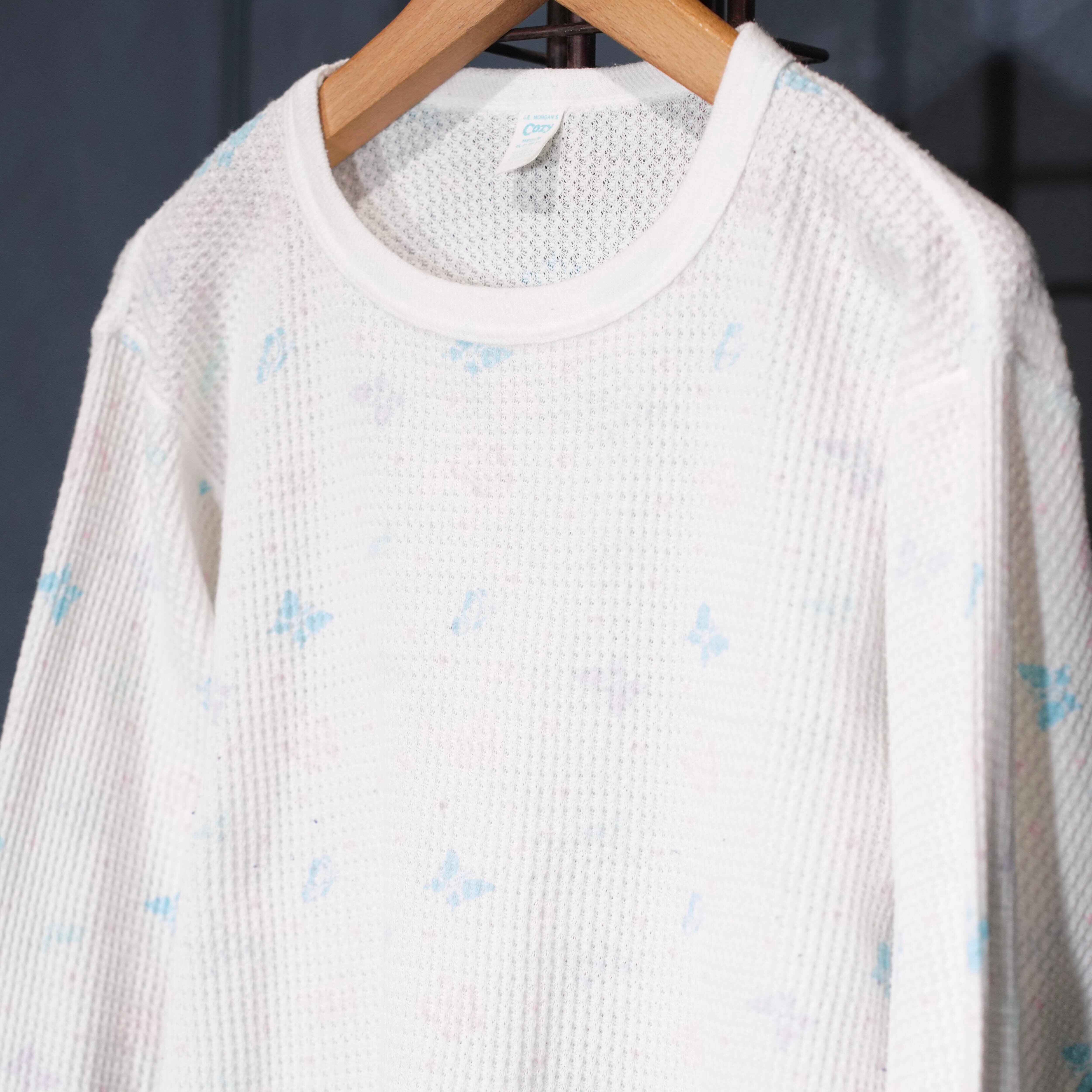 80’s USA VINTAGE Cozy BUTTERFLY PATTERNED THERMAL CUT&SEWN/80年代アメリカ古着バタフライ柄サーマルカットソー