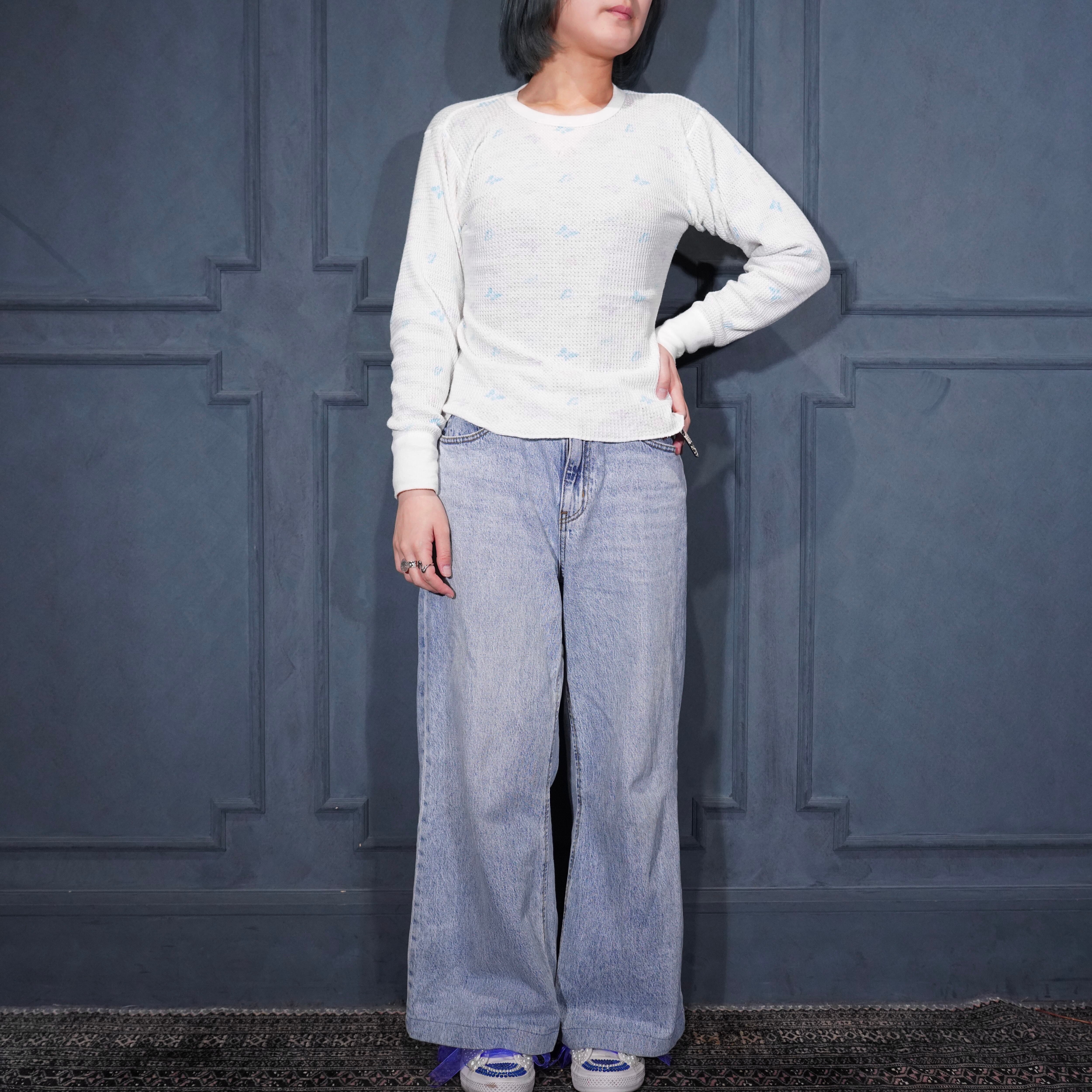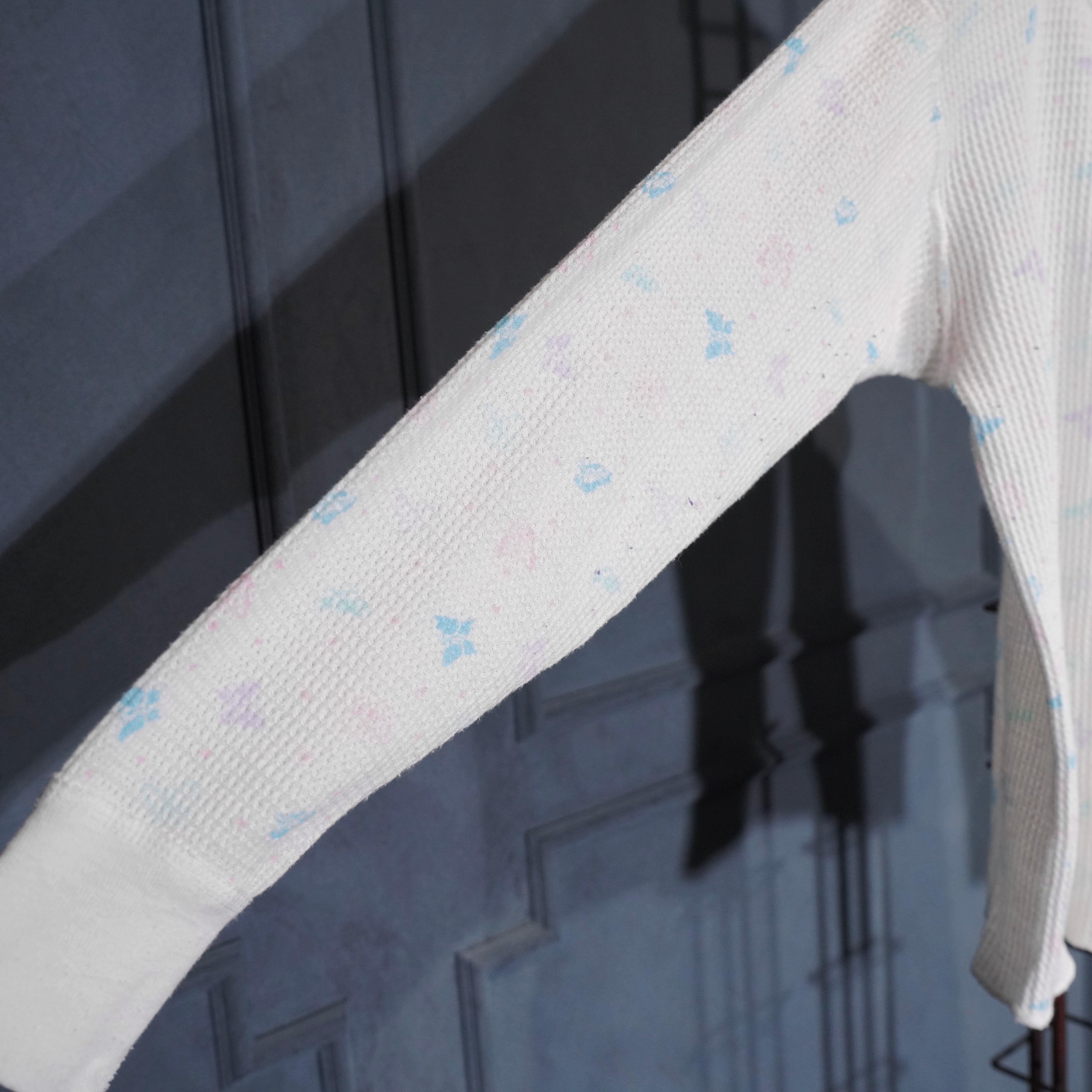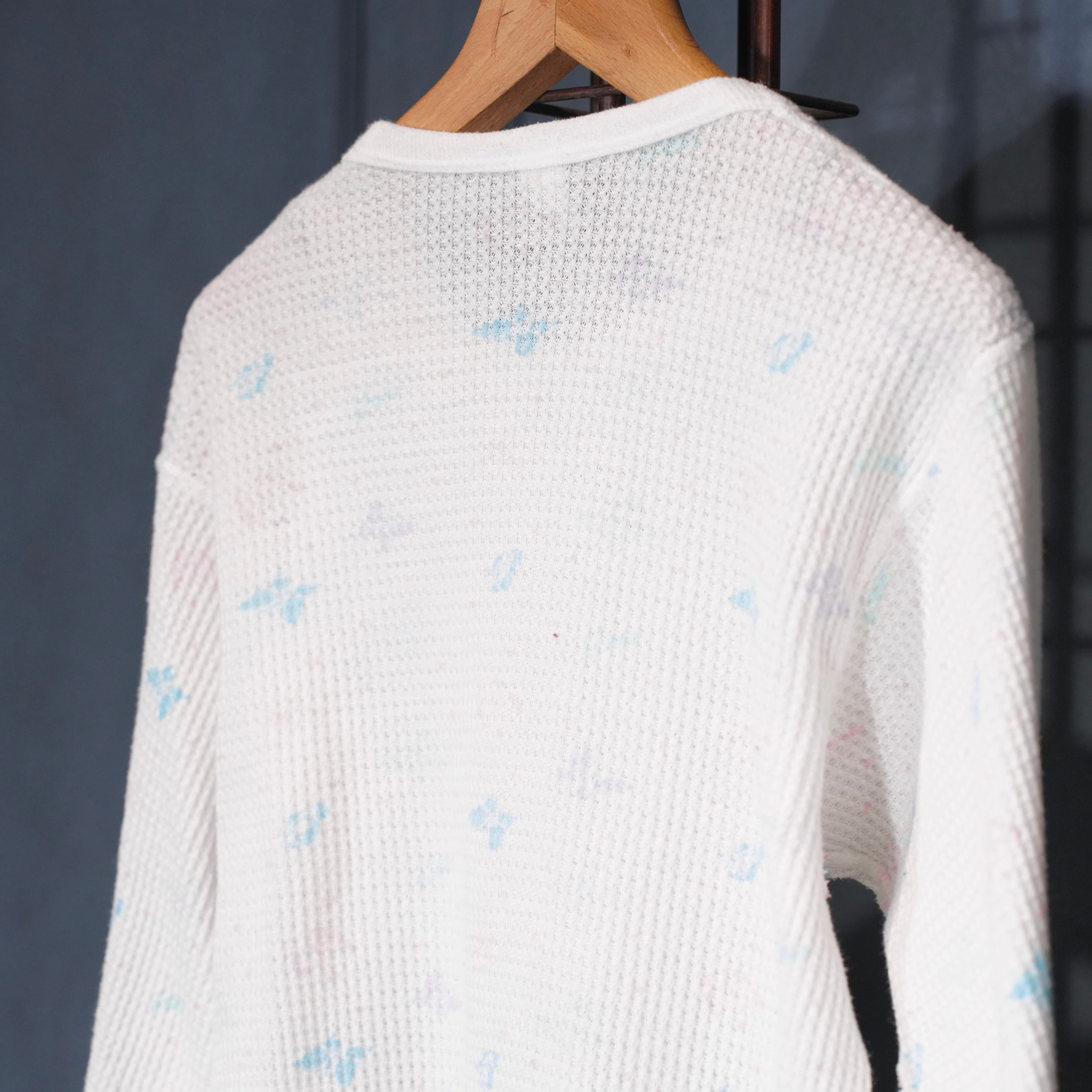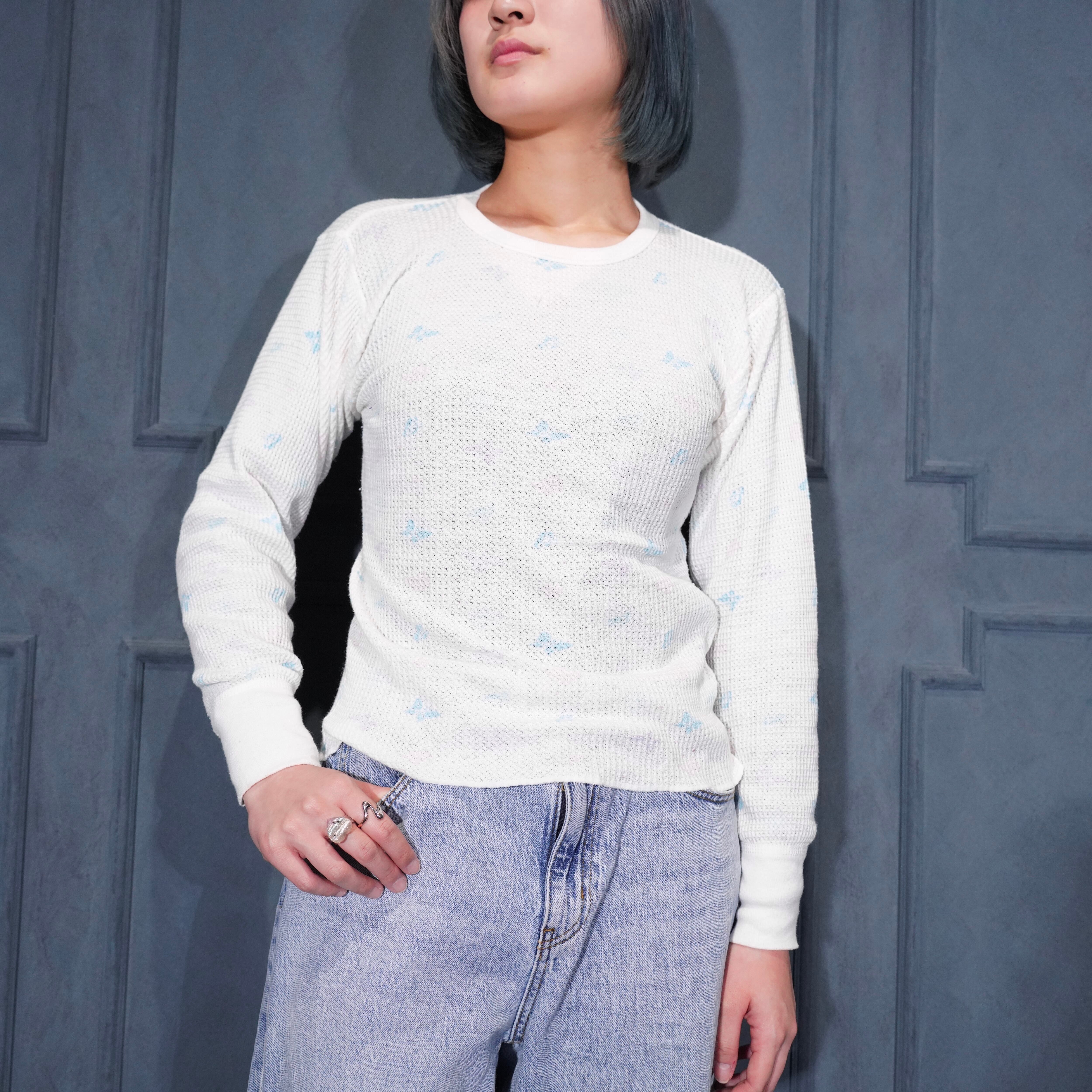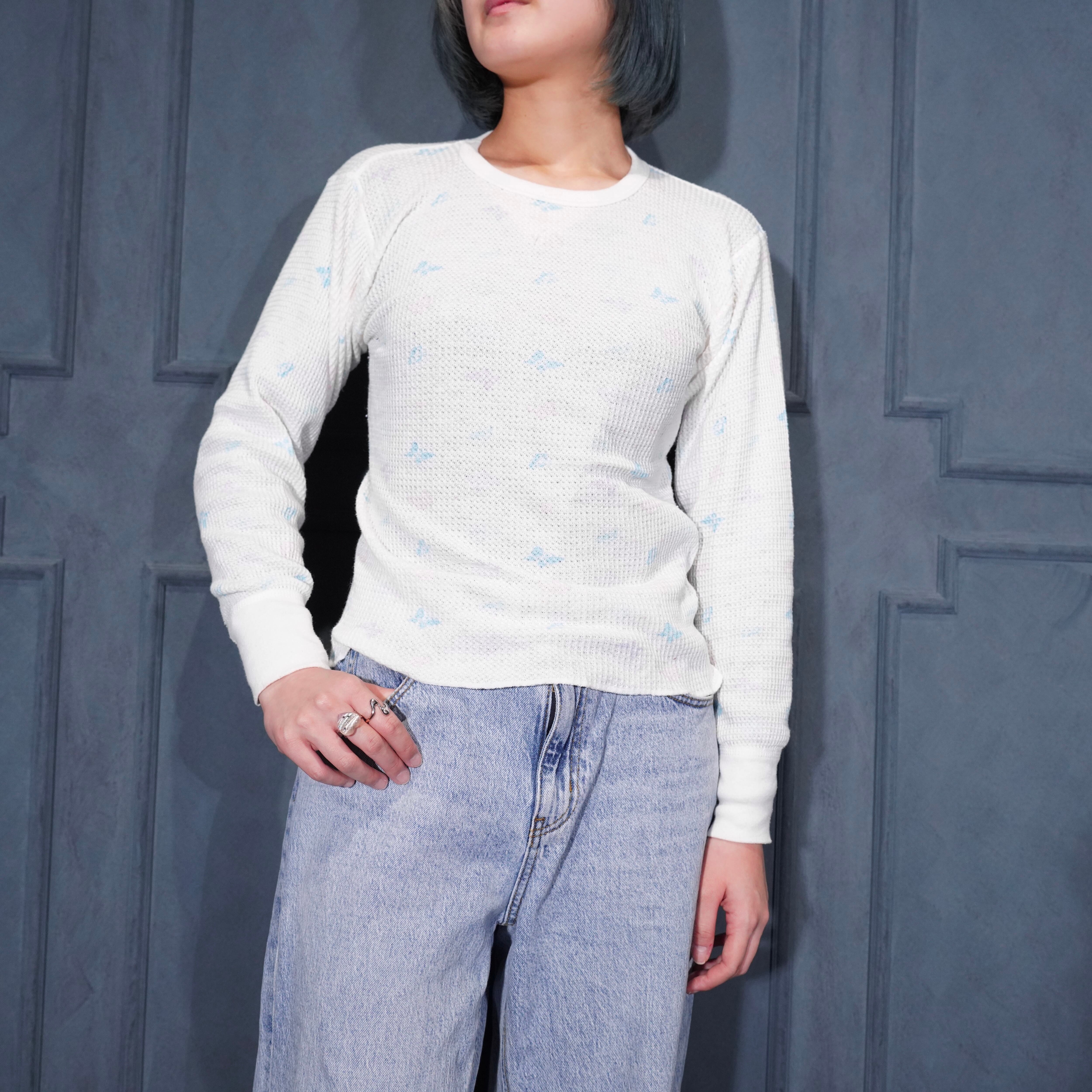 80’s USA VINTAGE Cozy BUTTERFLY PATTERNED THERMAL CUT&SEWN/80年代アメリカ古着バタフライ柄サーマルカットソー
