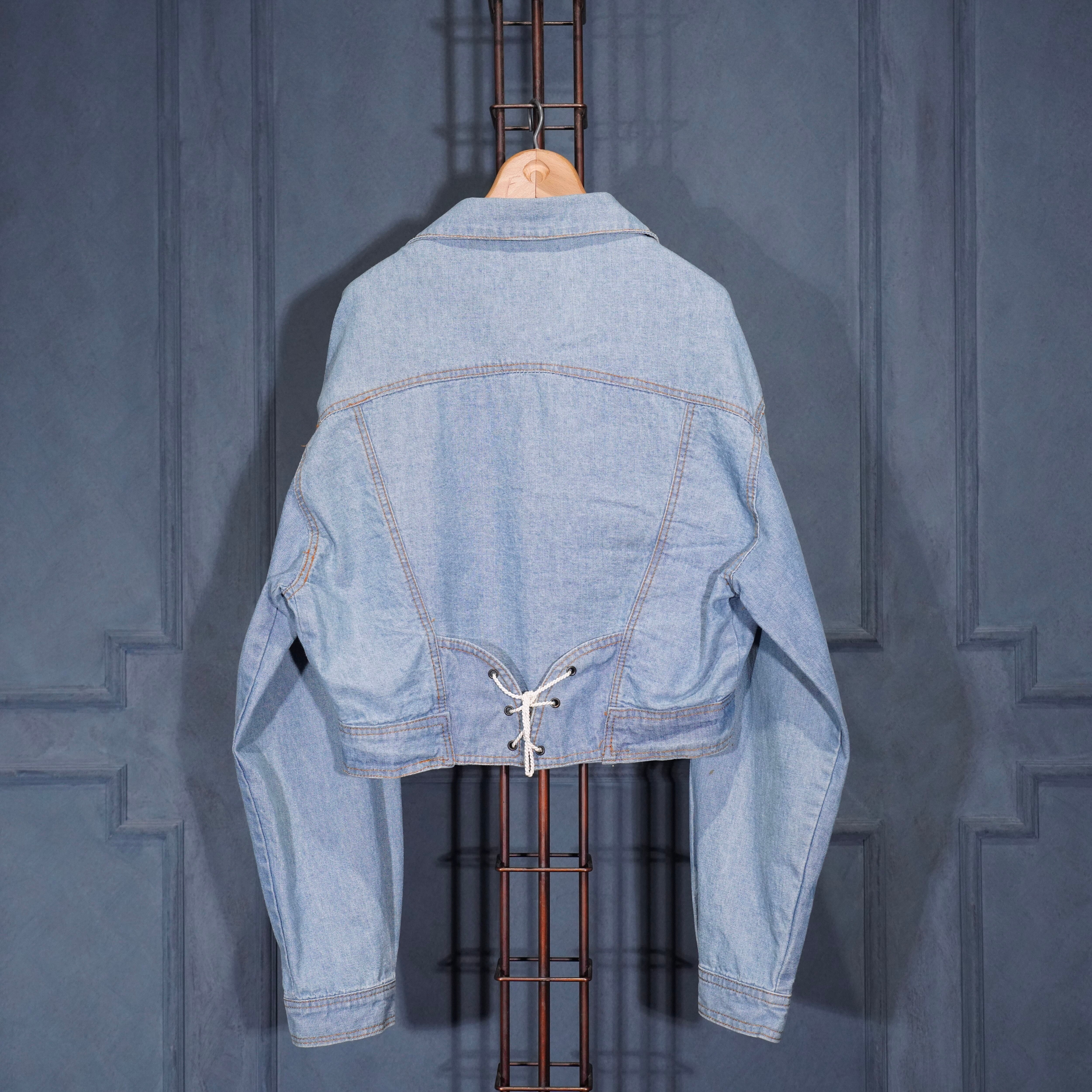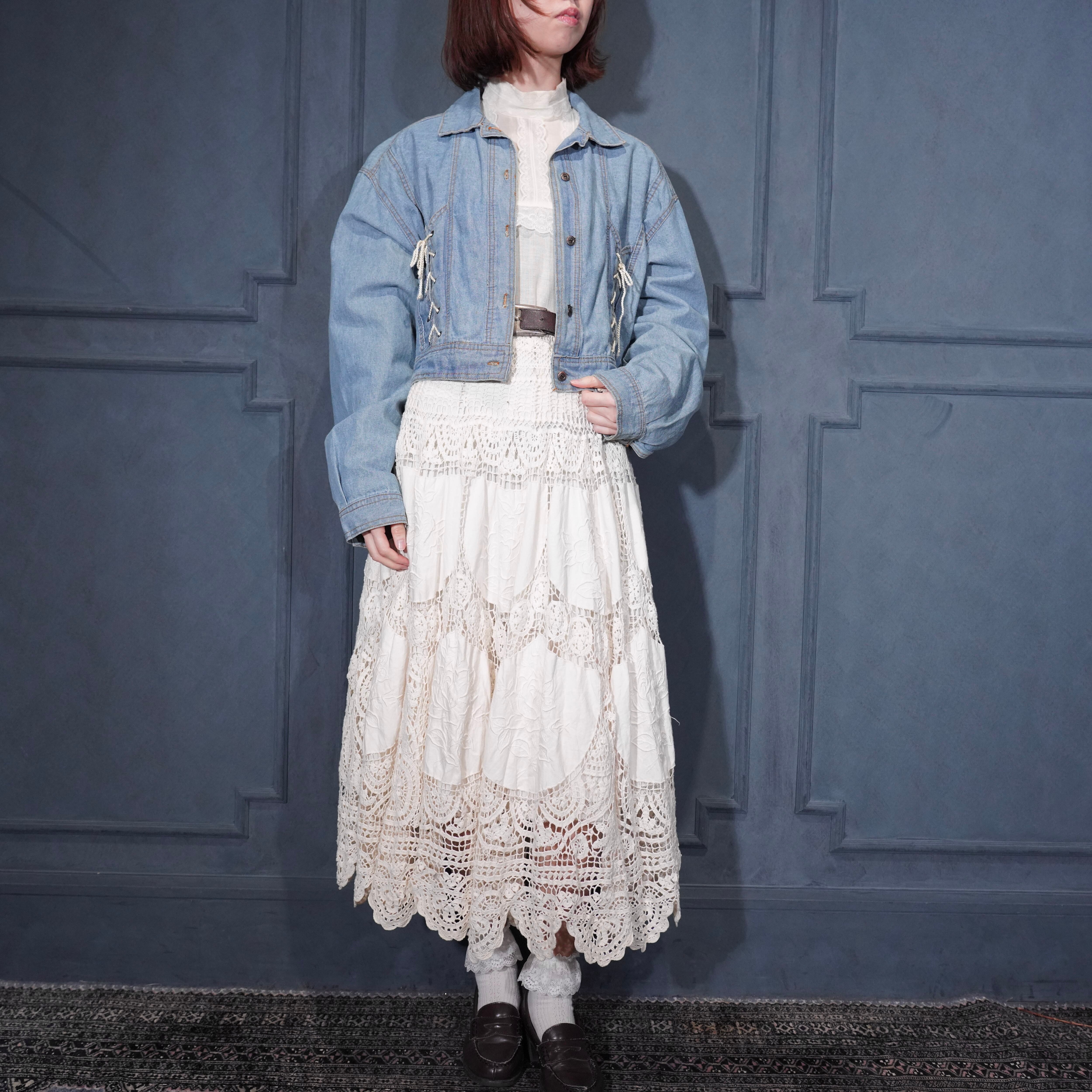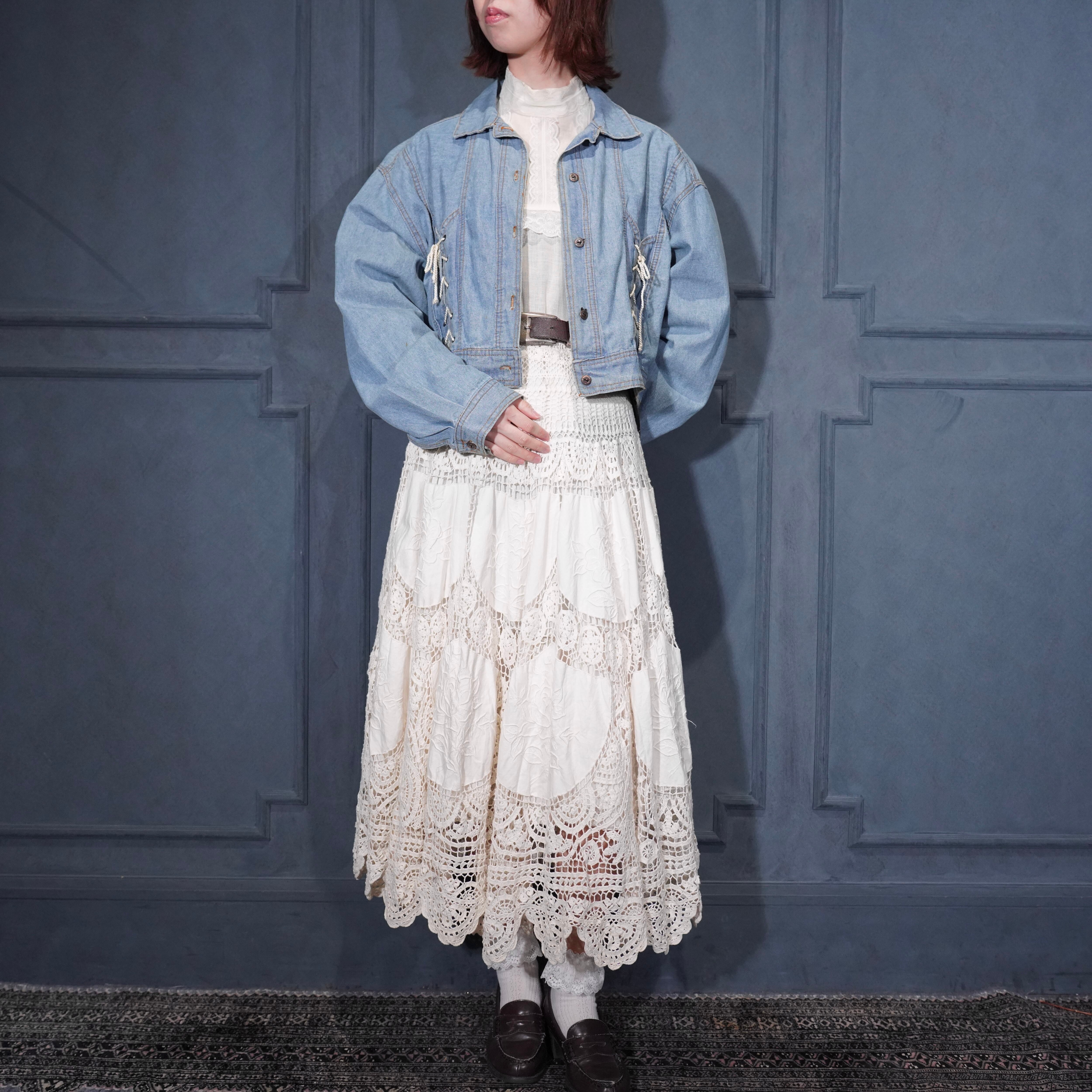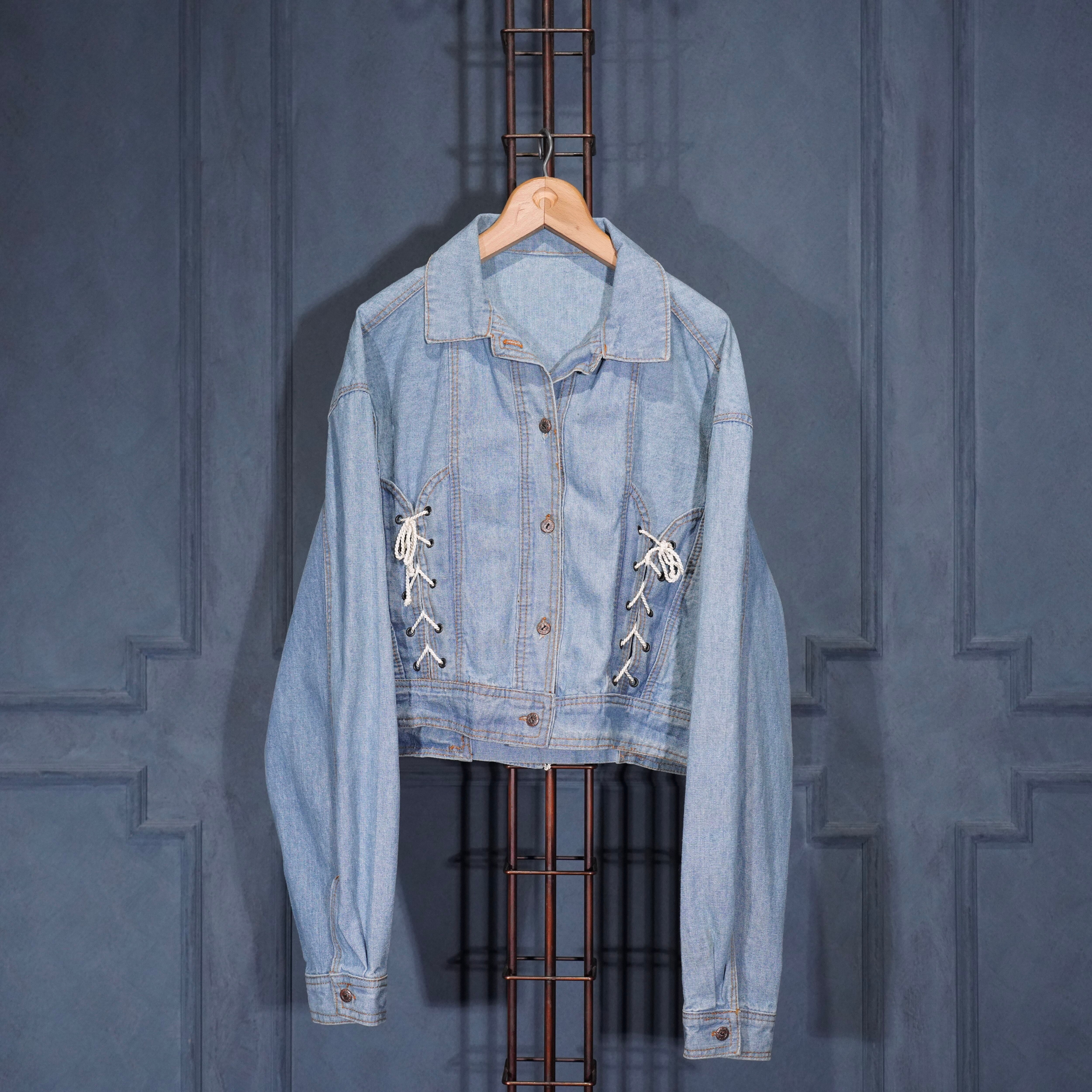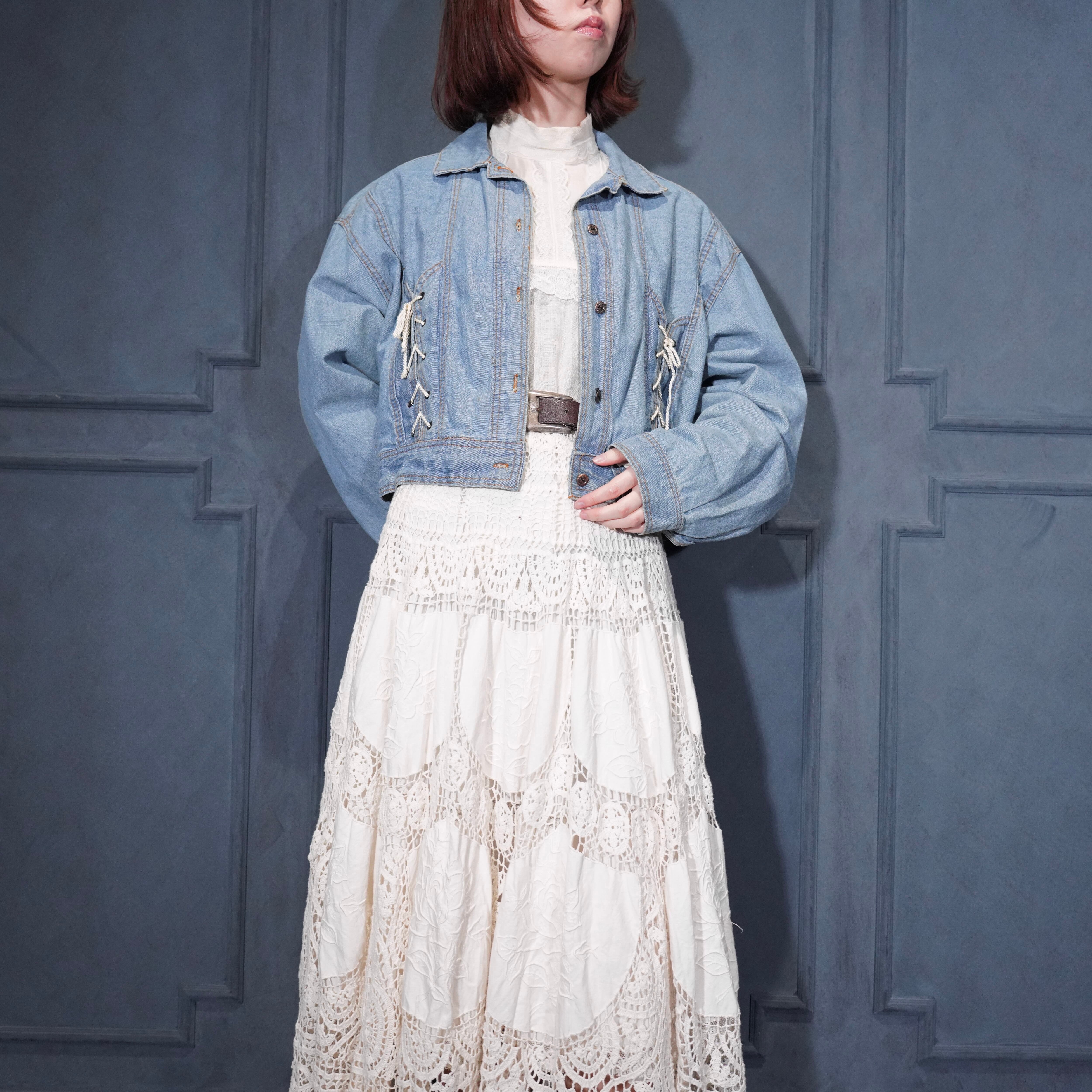 USA VINTAGE SHORT LENGTH LACE UP DESIGN DENIM JACKET/アメリカ古着ショート丈レースアップデザインデニムジャケット