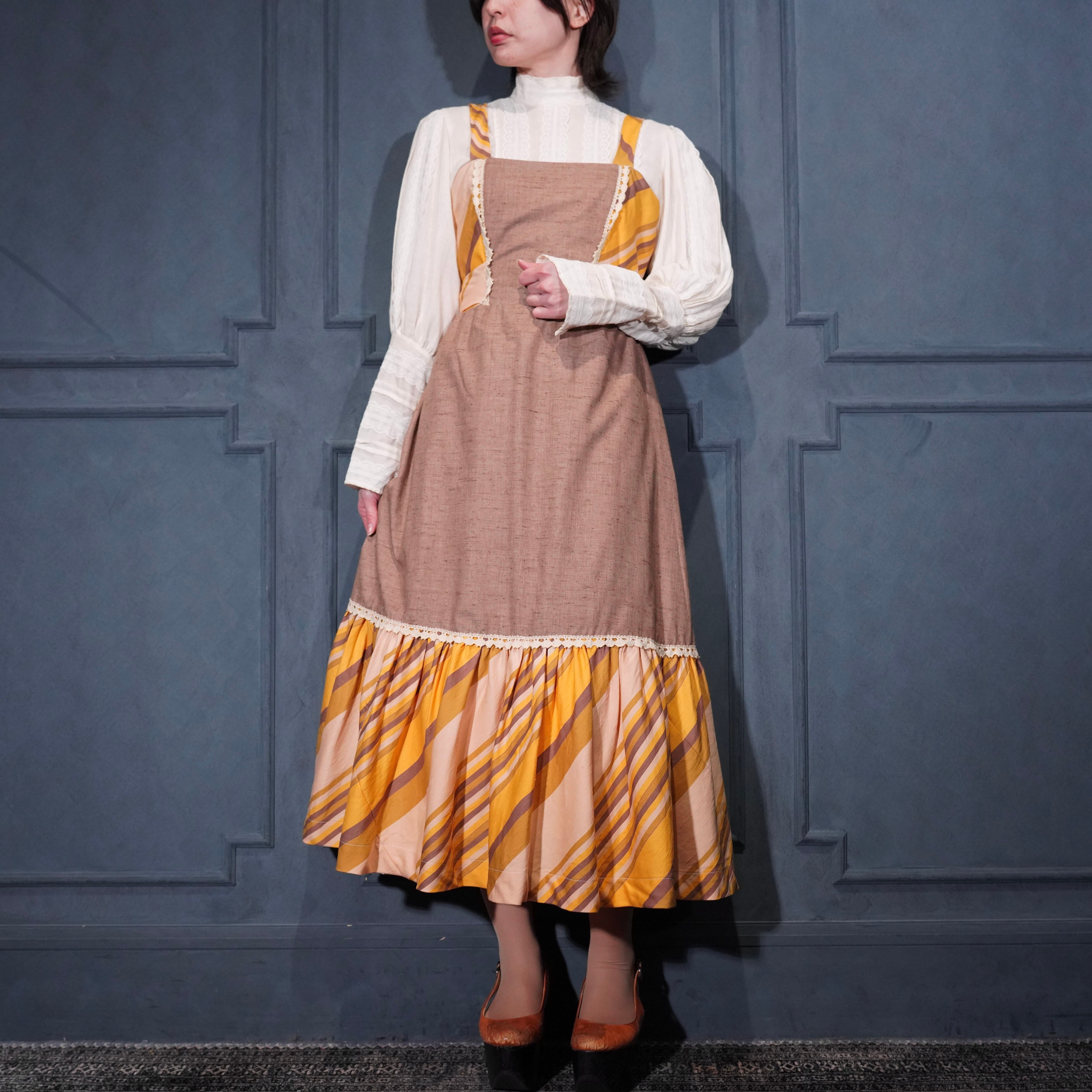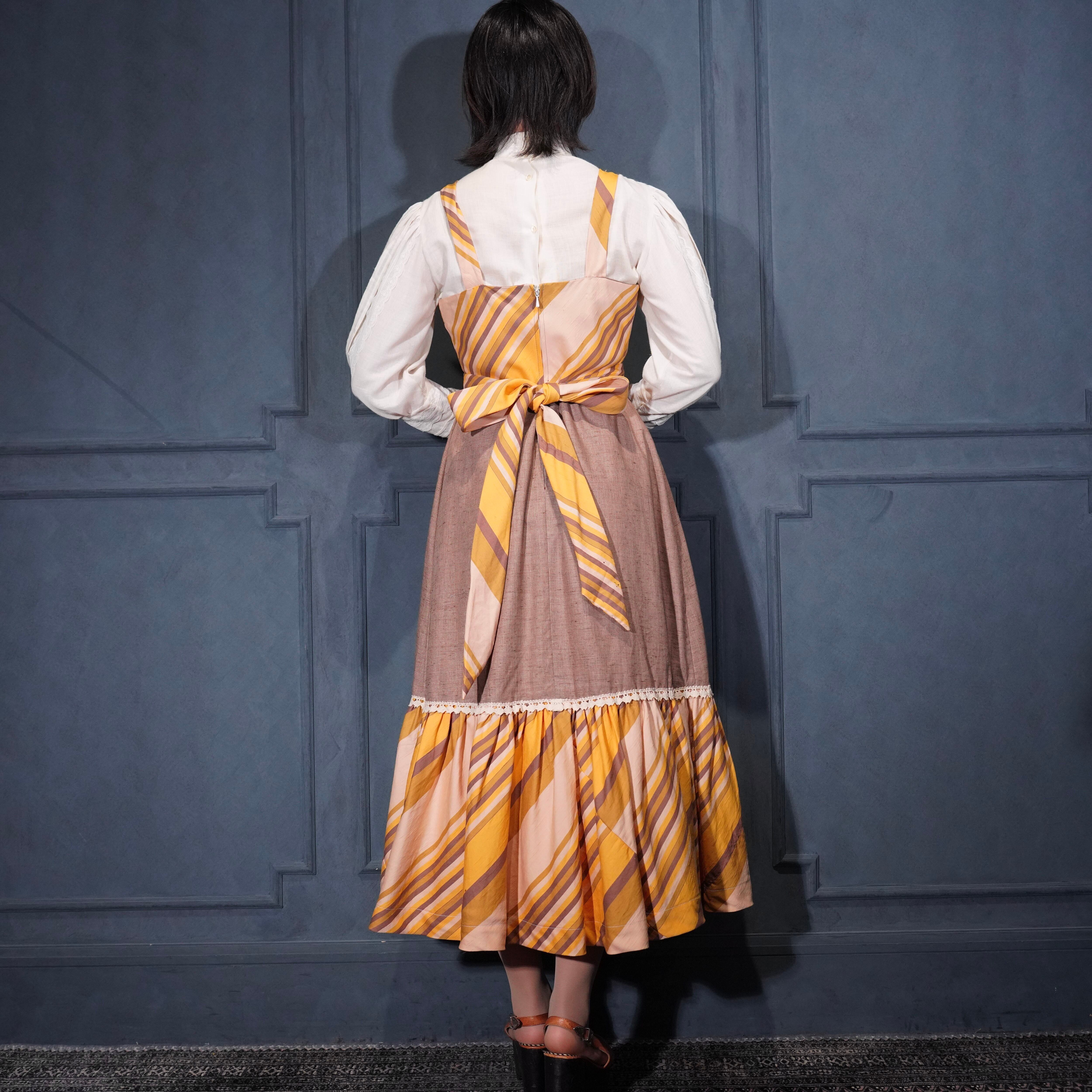 70’s USA VINTAGE BACK RIBBON DESIGN NO SLEEVE ONE PIECE/70年代アメリカ古着バックリボンデザインノースリーブワンピース