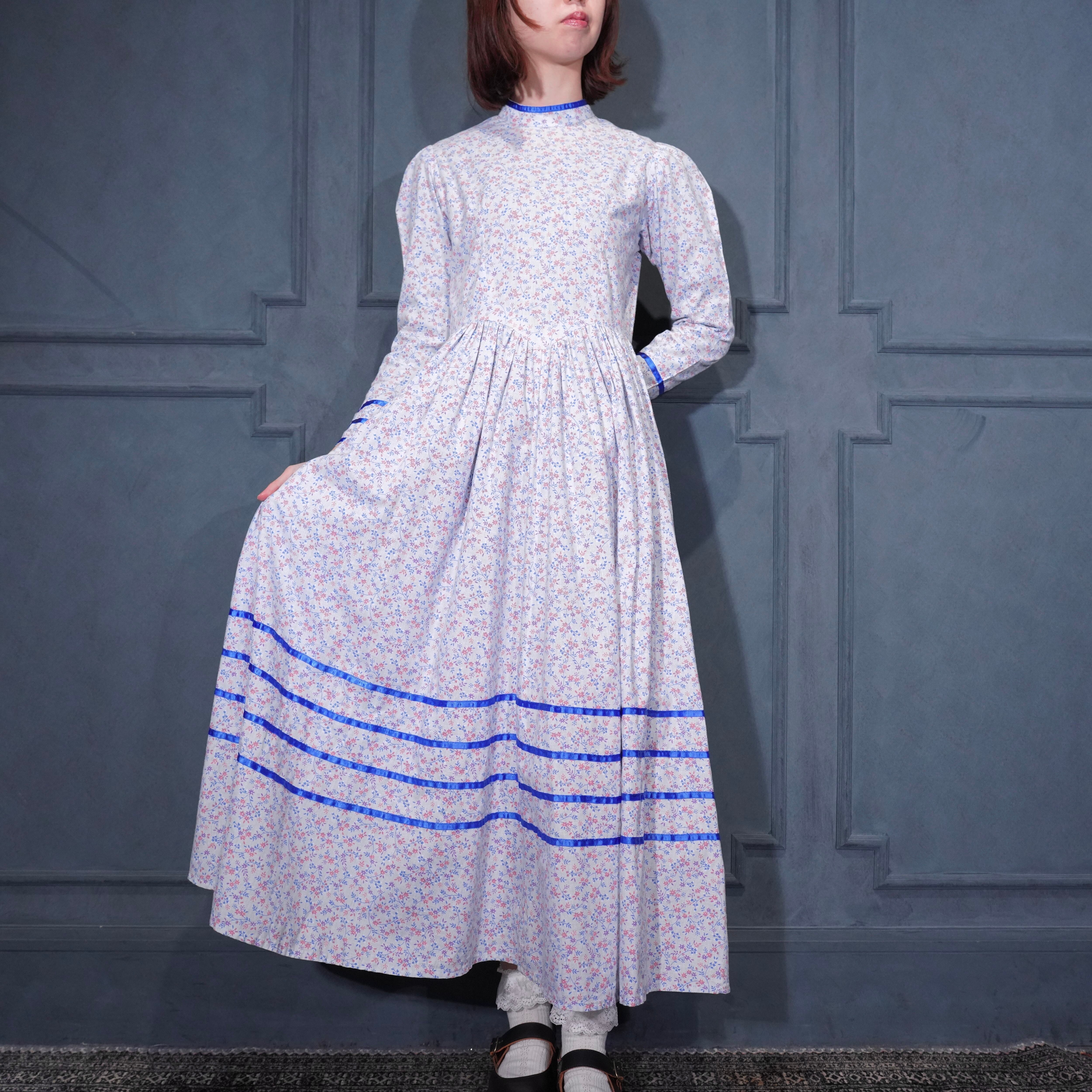 70's USA VINTAGE FLOWER PATTERNED LONG DRESS ONE PIECE/70年代アメリカ古着お花柄ロングドレスワンピース