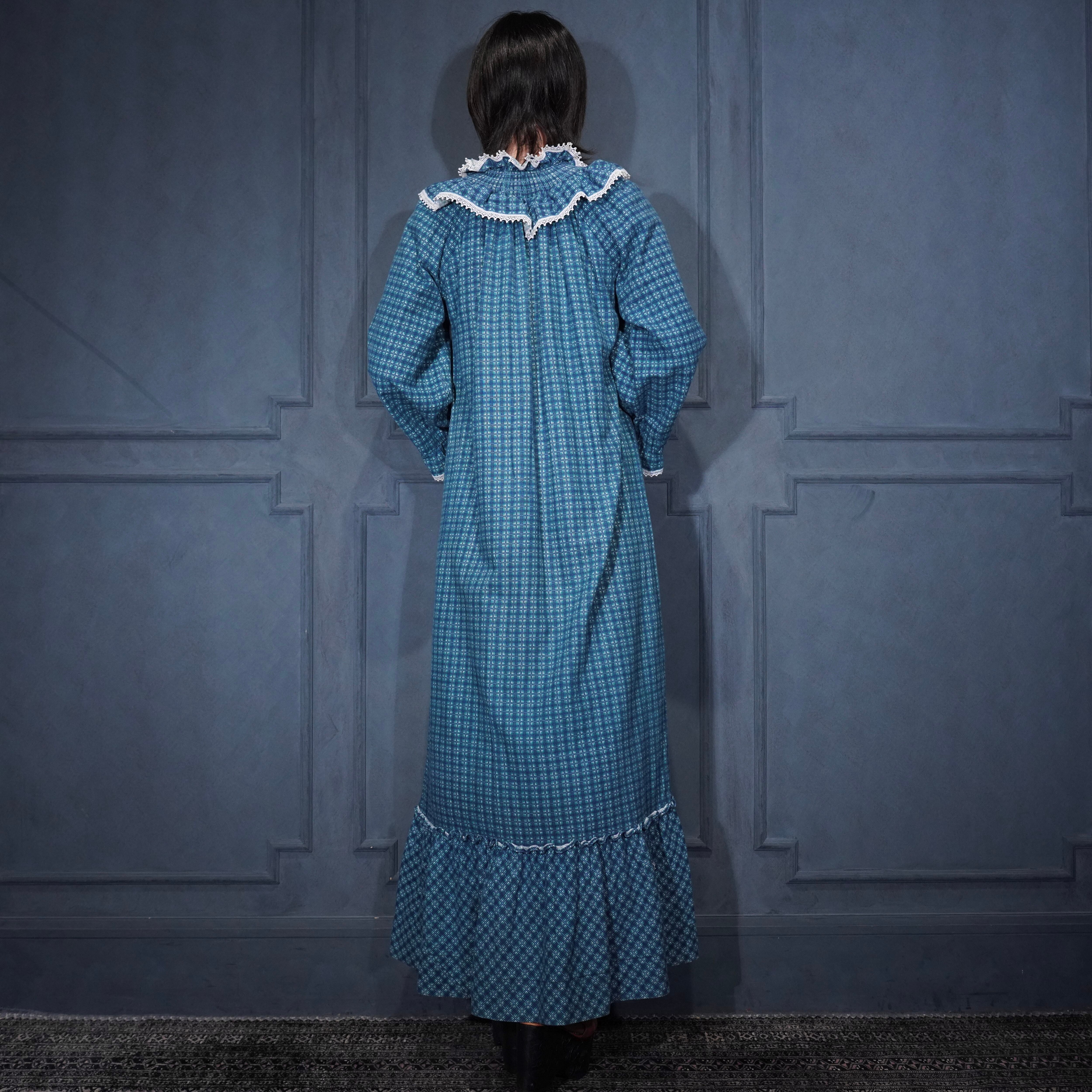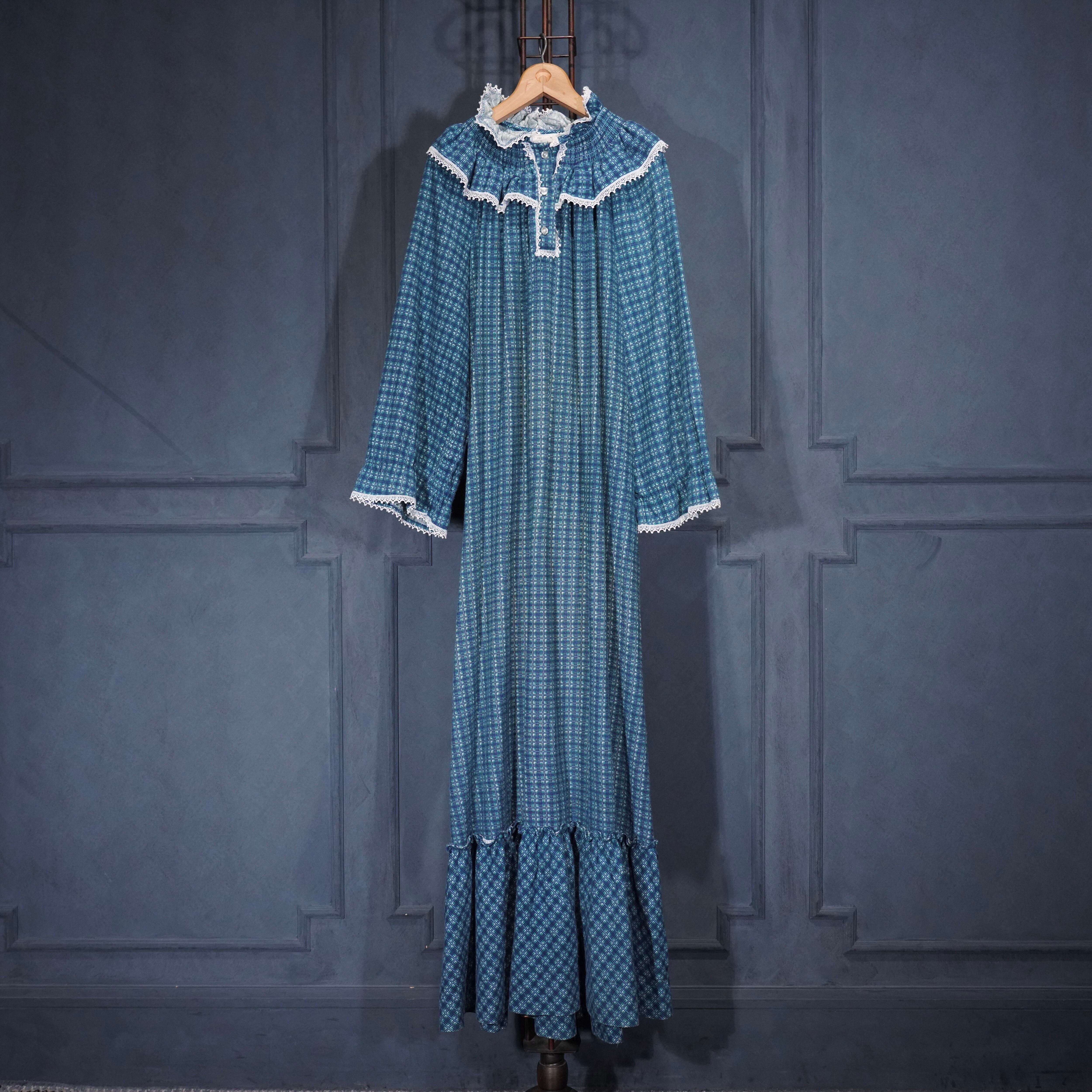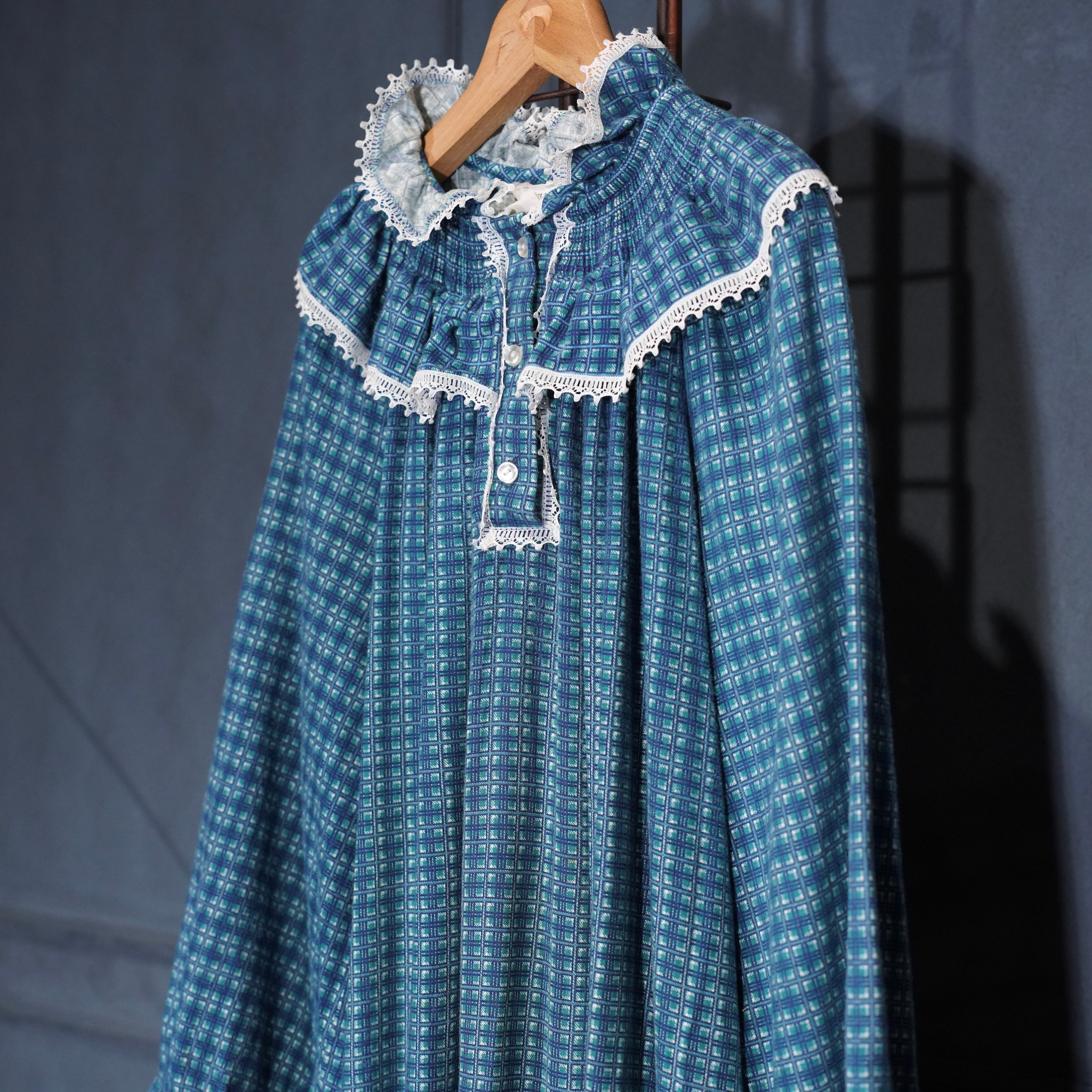 70’s〜80's USA VINTAGE GILLIGAN O'MALLEY LACE FRILL DESIGN NIGHTY DRESS COTTON ONE PIECE/70年代〜80年代アメリカ古着レーススリルデザインナイティドレスコットンワンピース