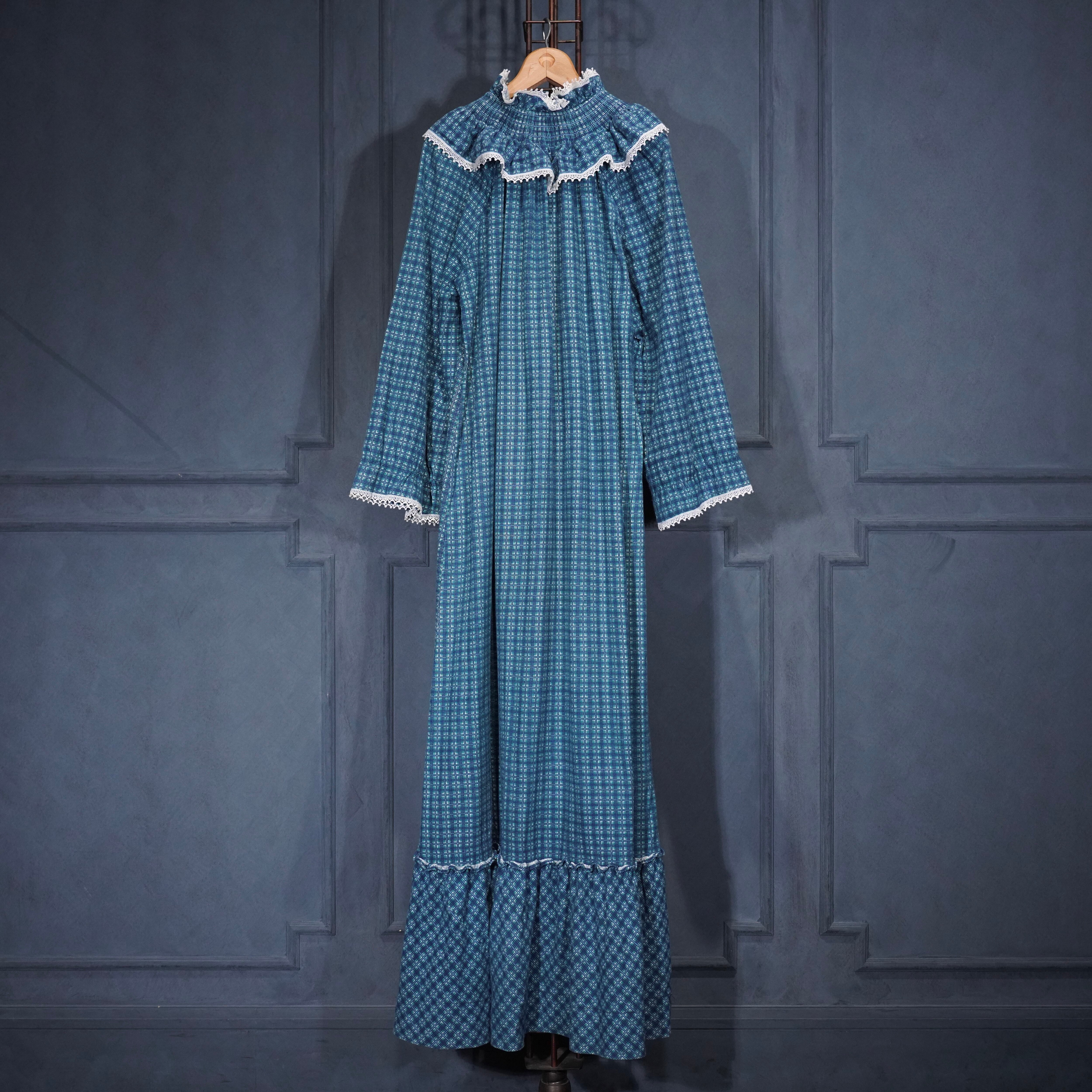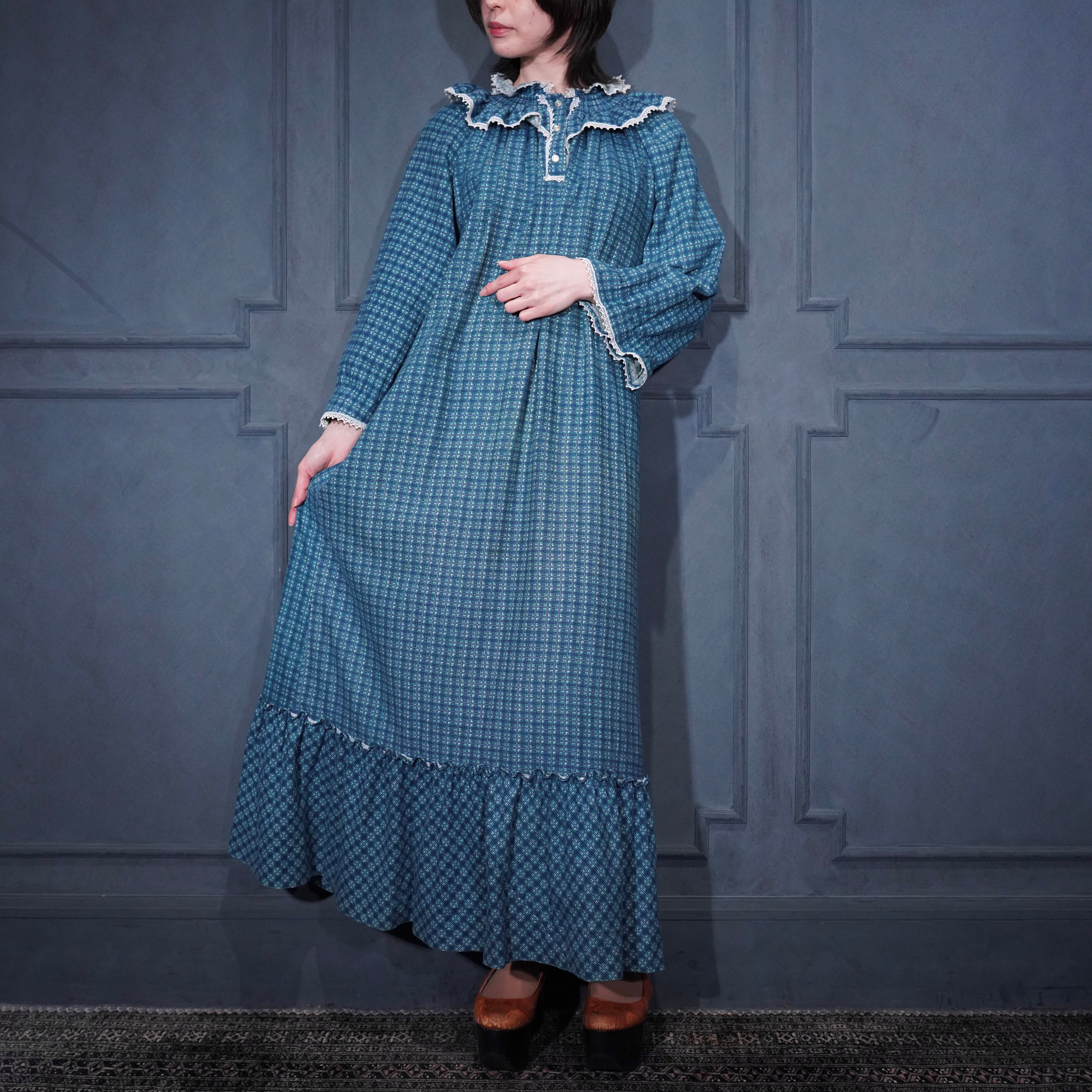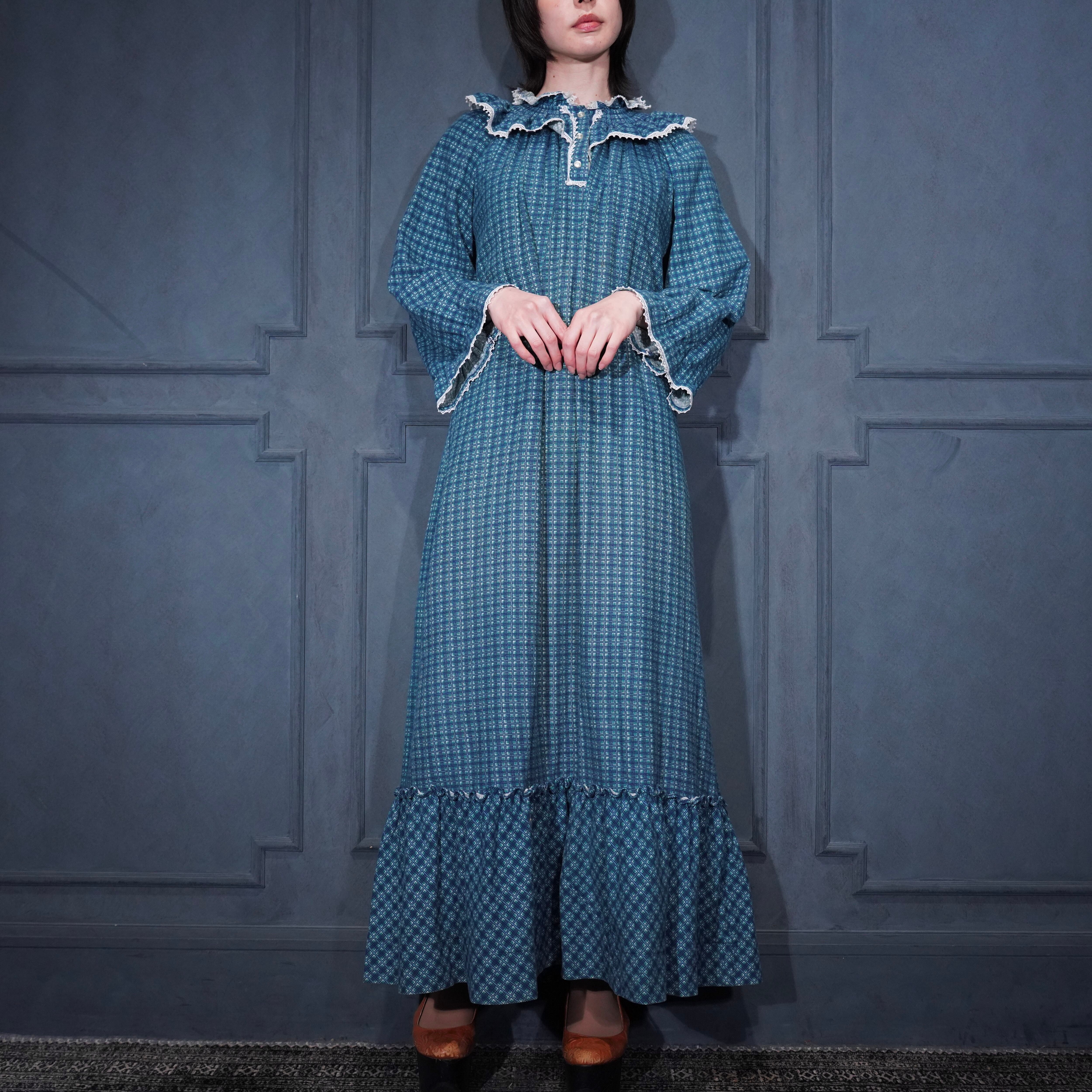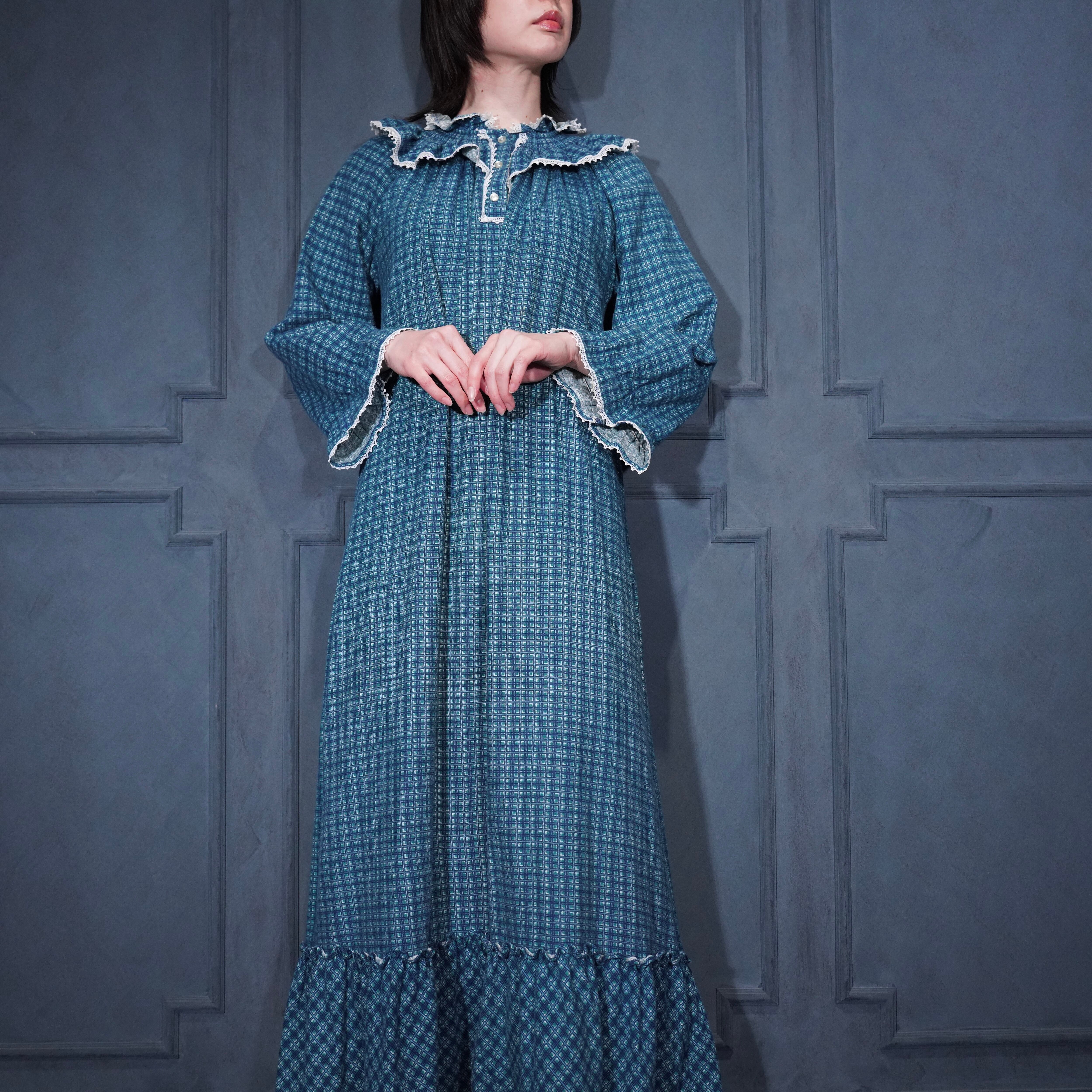 70’s〜80's USA VINTAGE GILLIGAN O'MALLEY LACE FRILL DESIGN NIGHTY DRESS COTTON ONE PIECE/70年代〜80年代アメリカ古着レーススリルデザインナイティドレスコットンワンピース