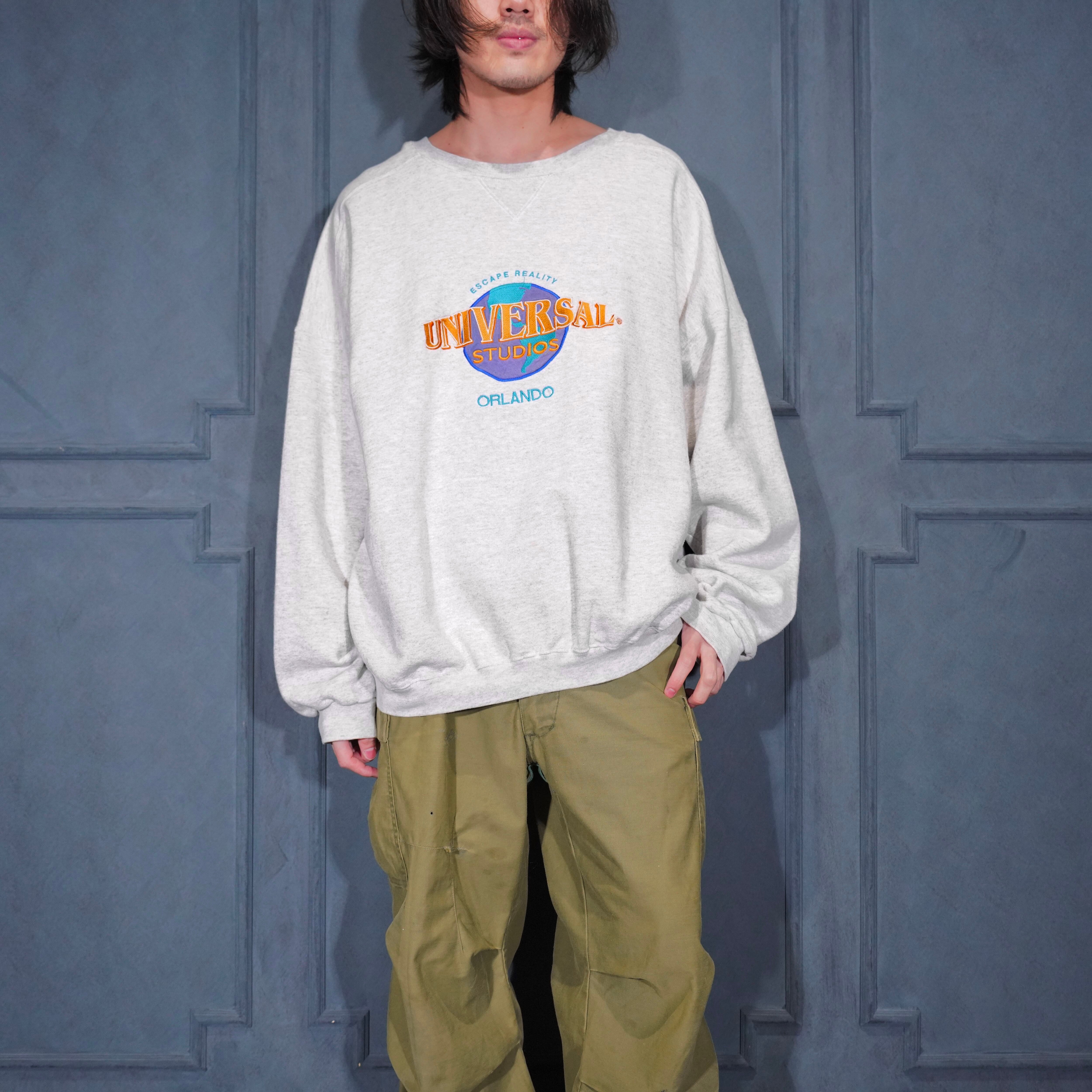 90's USA VINTAGE UNIVERSAL STUDIOUS LOGO EMBROIDERY SWEAT SHIRT/90年代アメリカ古着ユニバーサルスタジオロゴ刺繍デザインスウェット