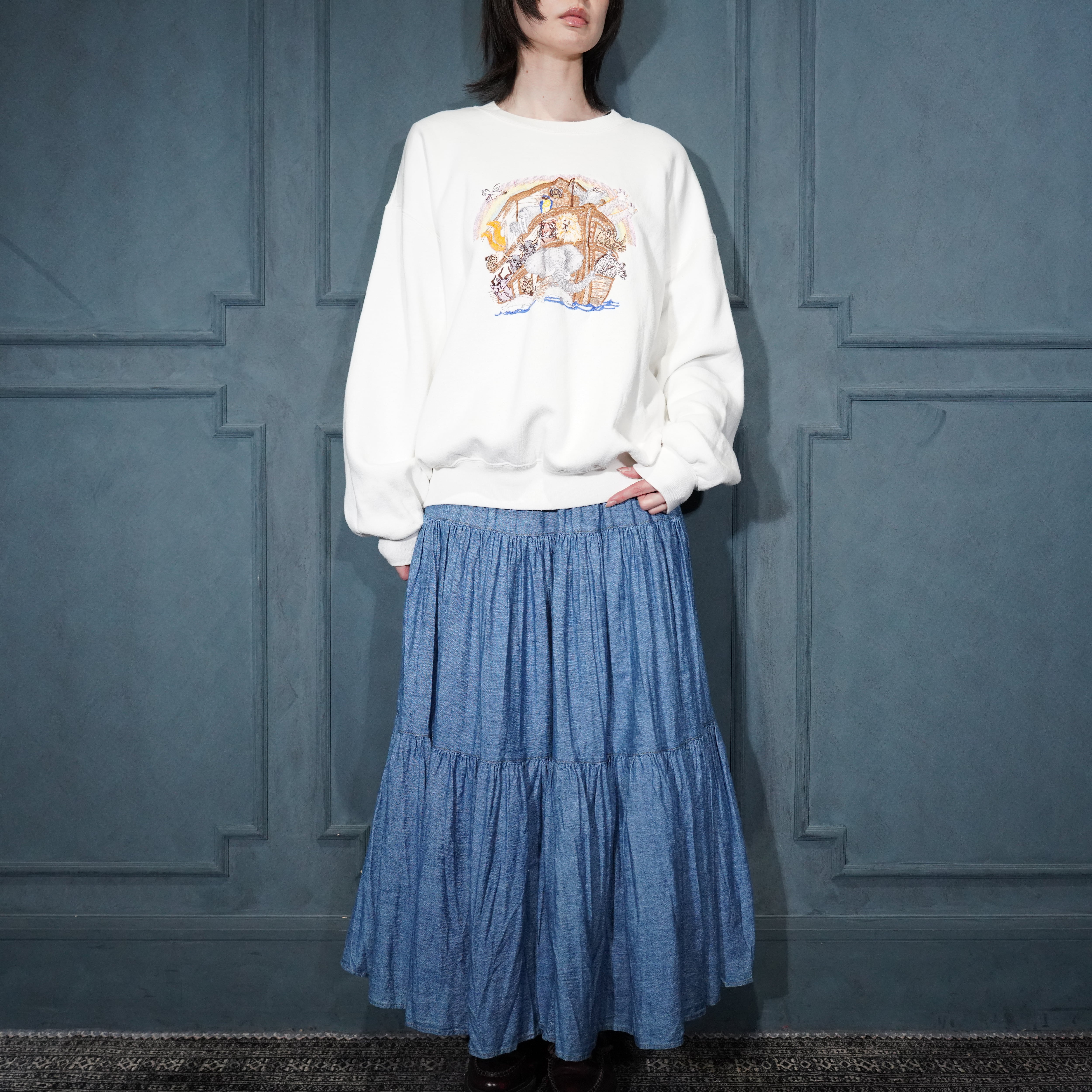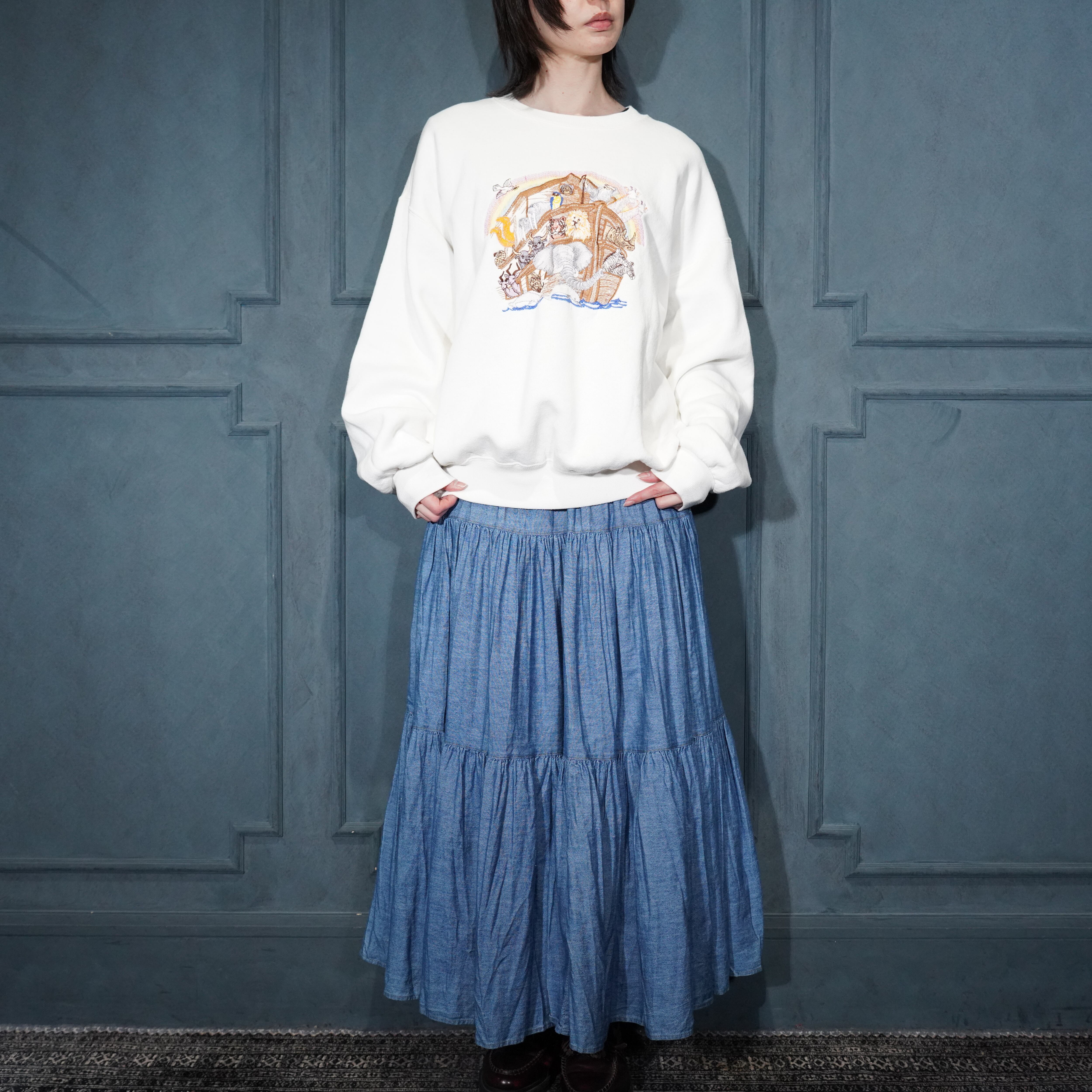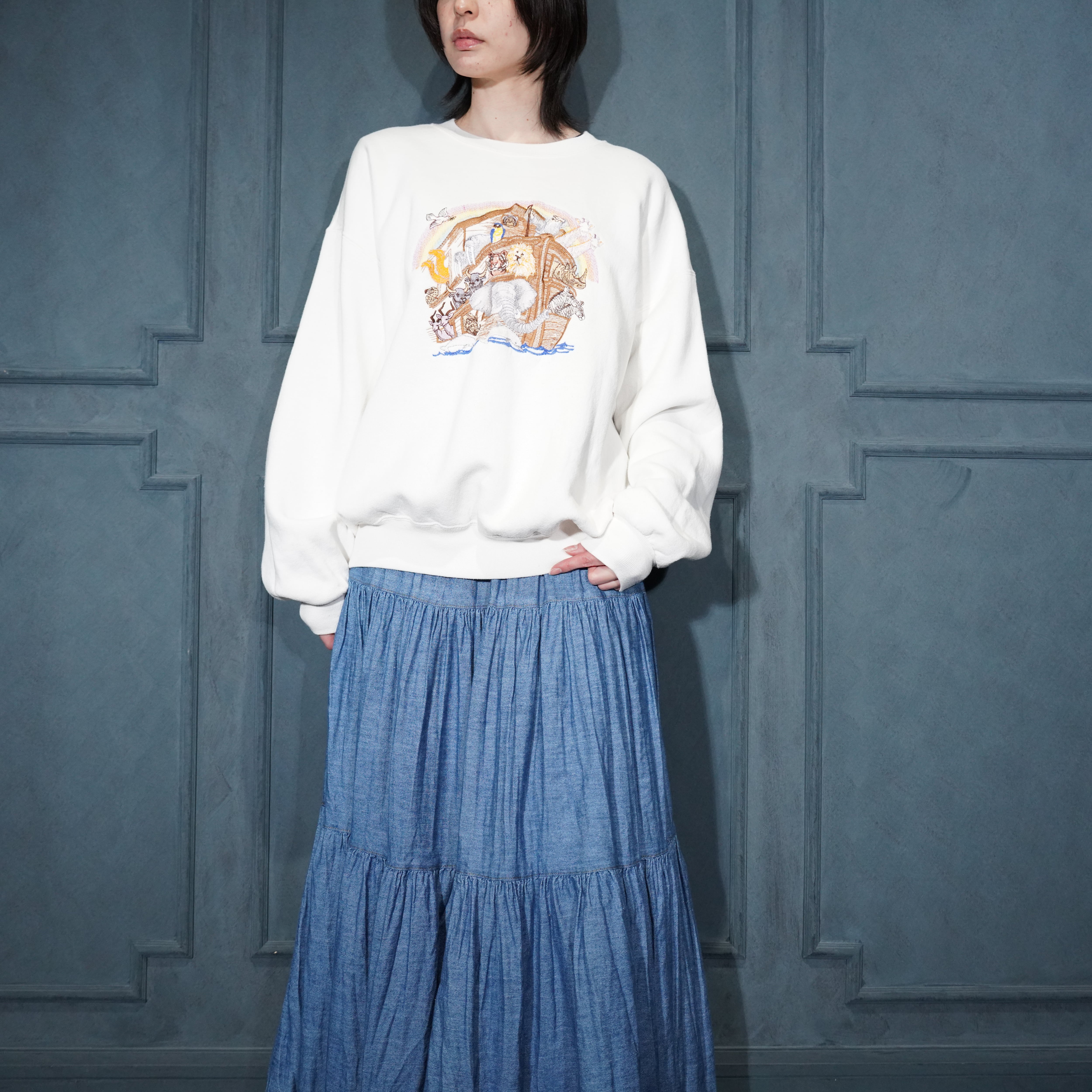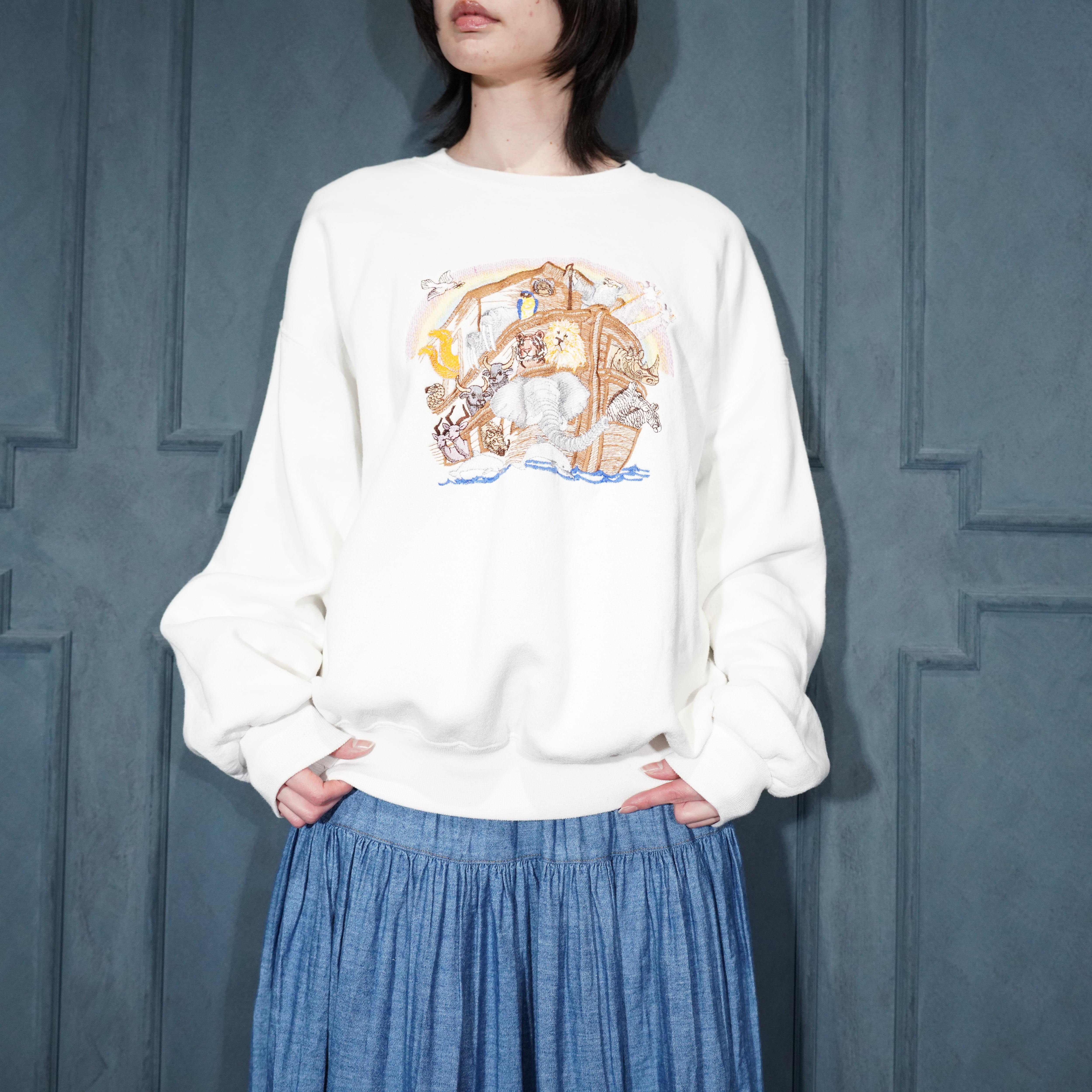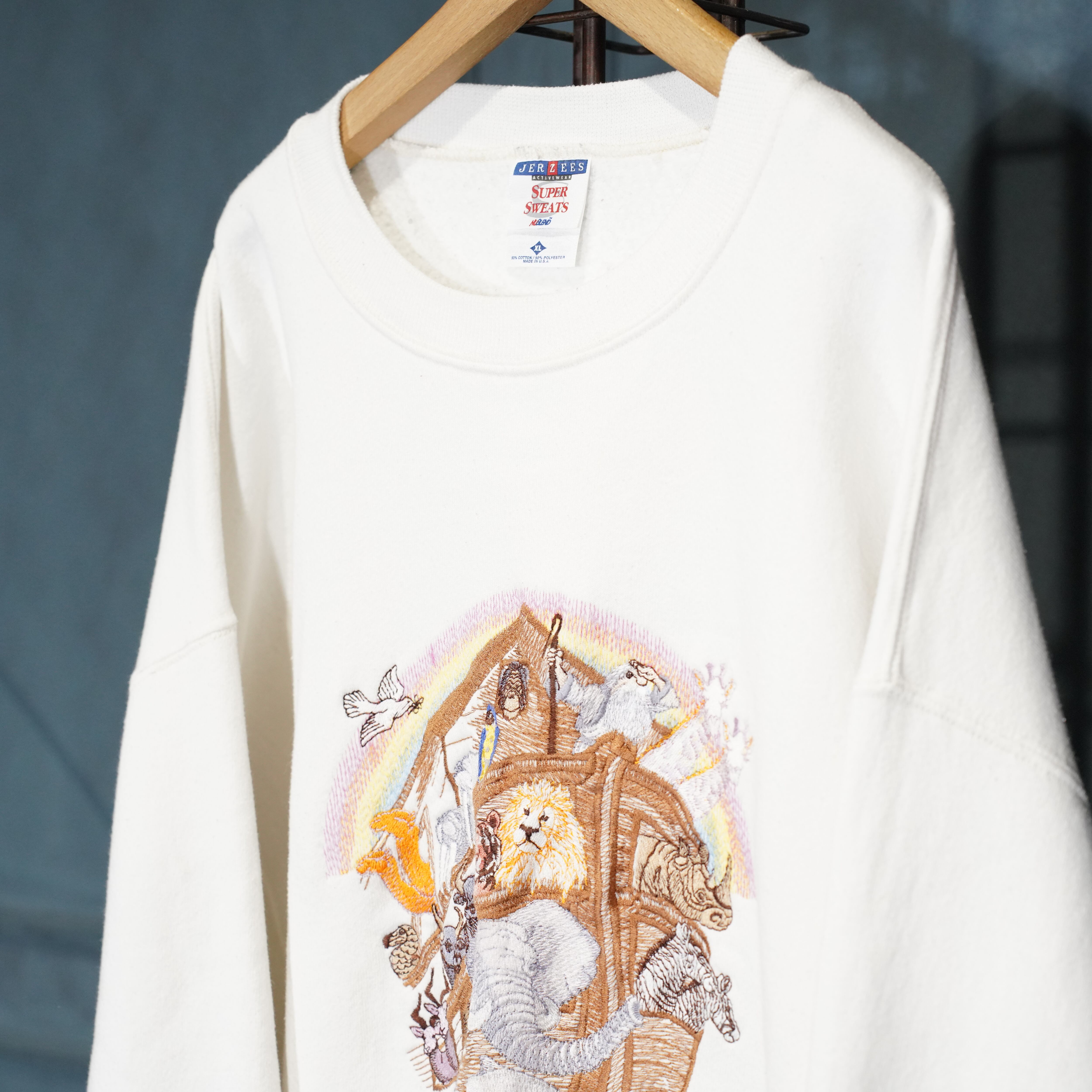 90’s USA VINTAGE JERZEES SUPER SWEATS ANIMAL EMBROIDERY DESIGN SWEAT SHIRT/90年代アメリカ古着アニマル刺繍デザインスウェット