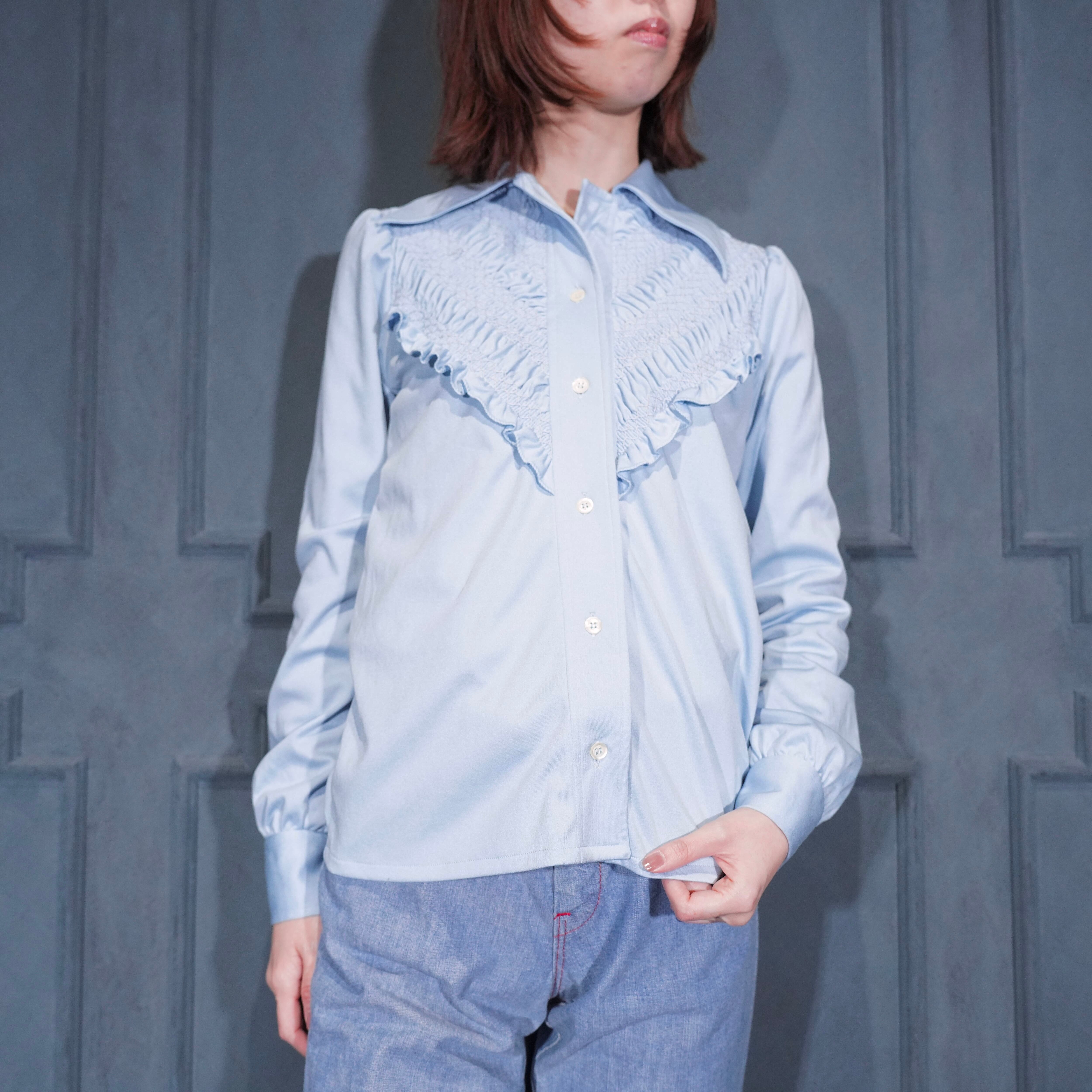70’s EU VINTAGE CREAZIONI STYLCONF SMOCKING DESIGN SHIRT MADE IN ITALY/70年代ヨーロッパ古着スモッキングデザインシャツ