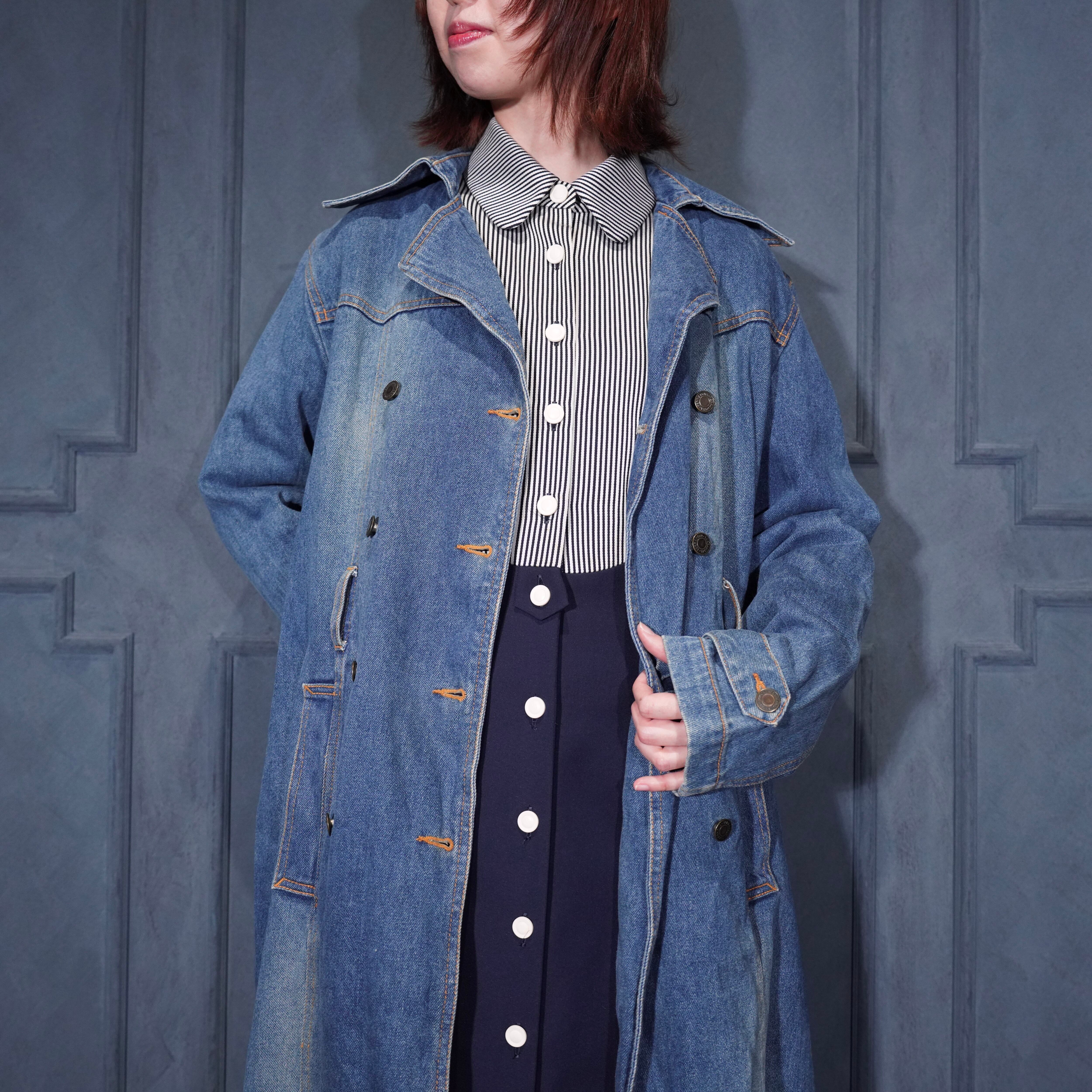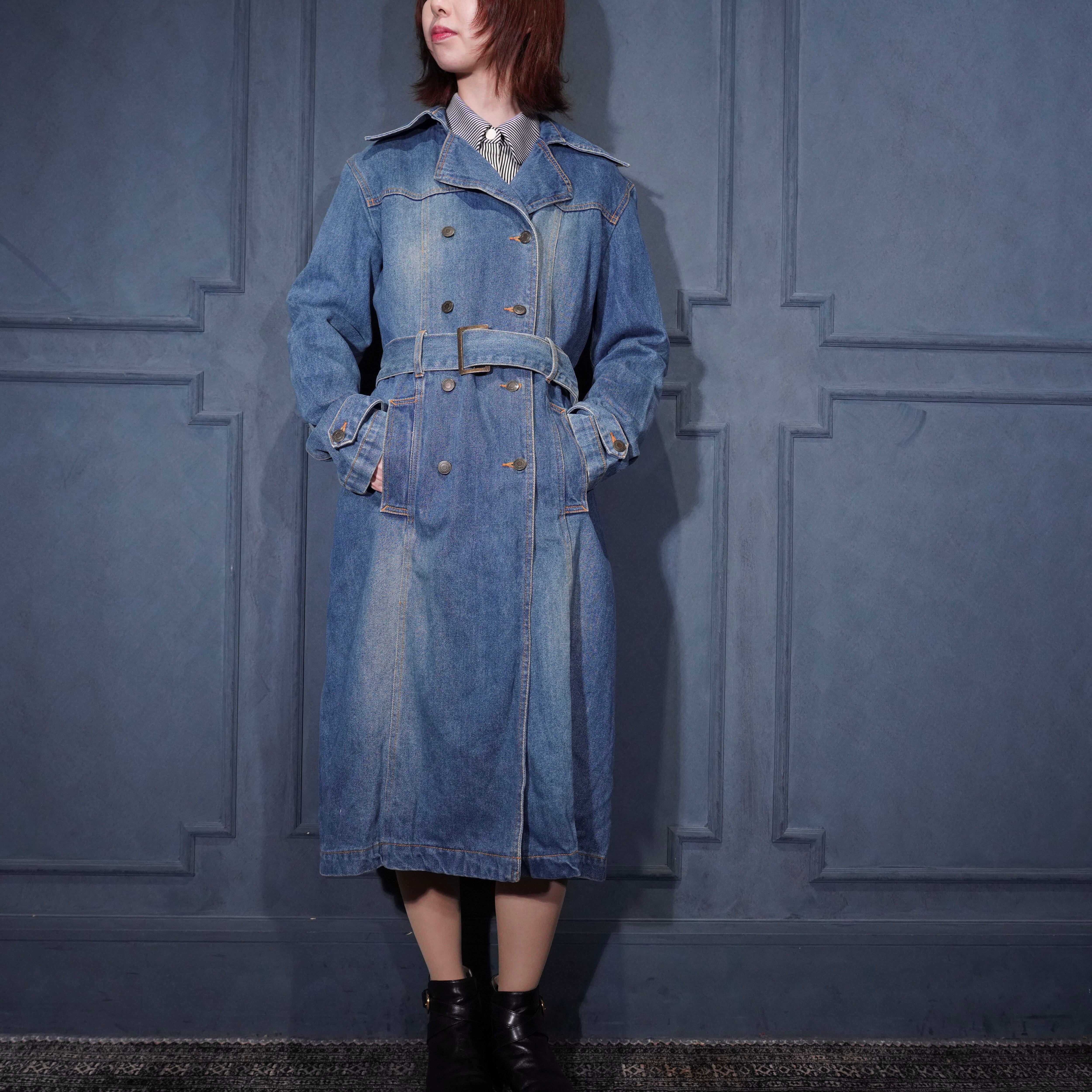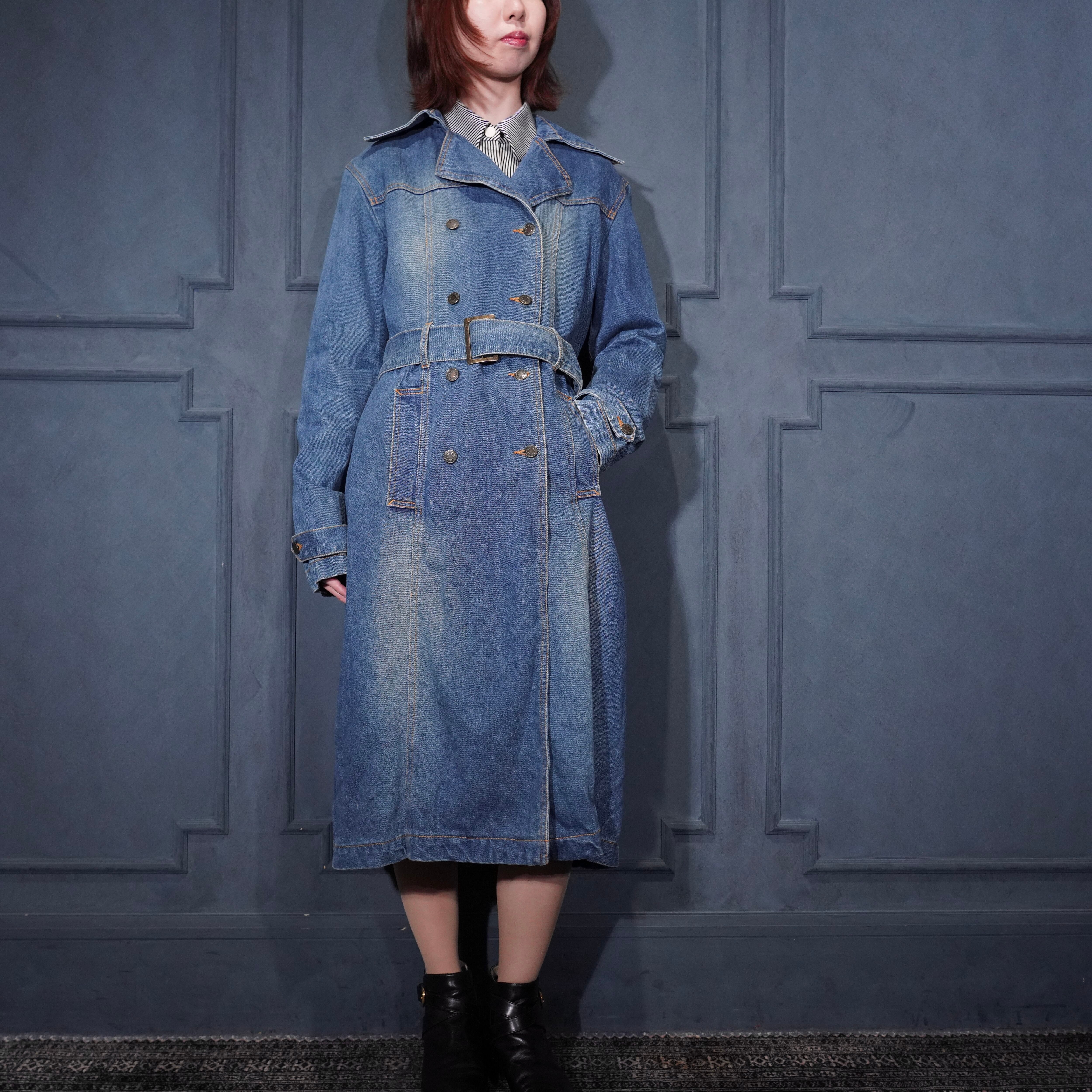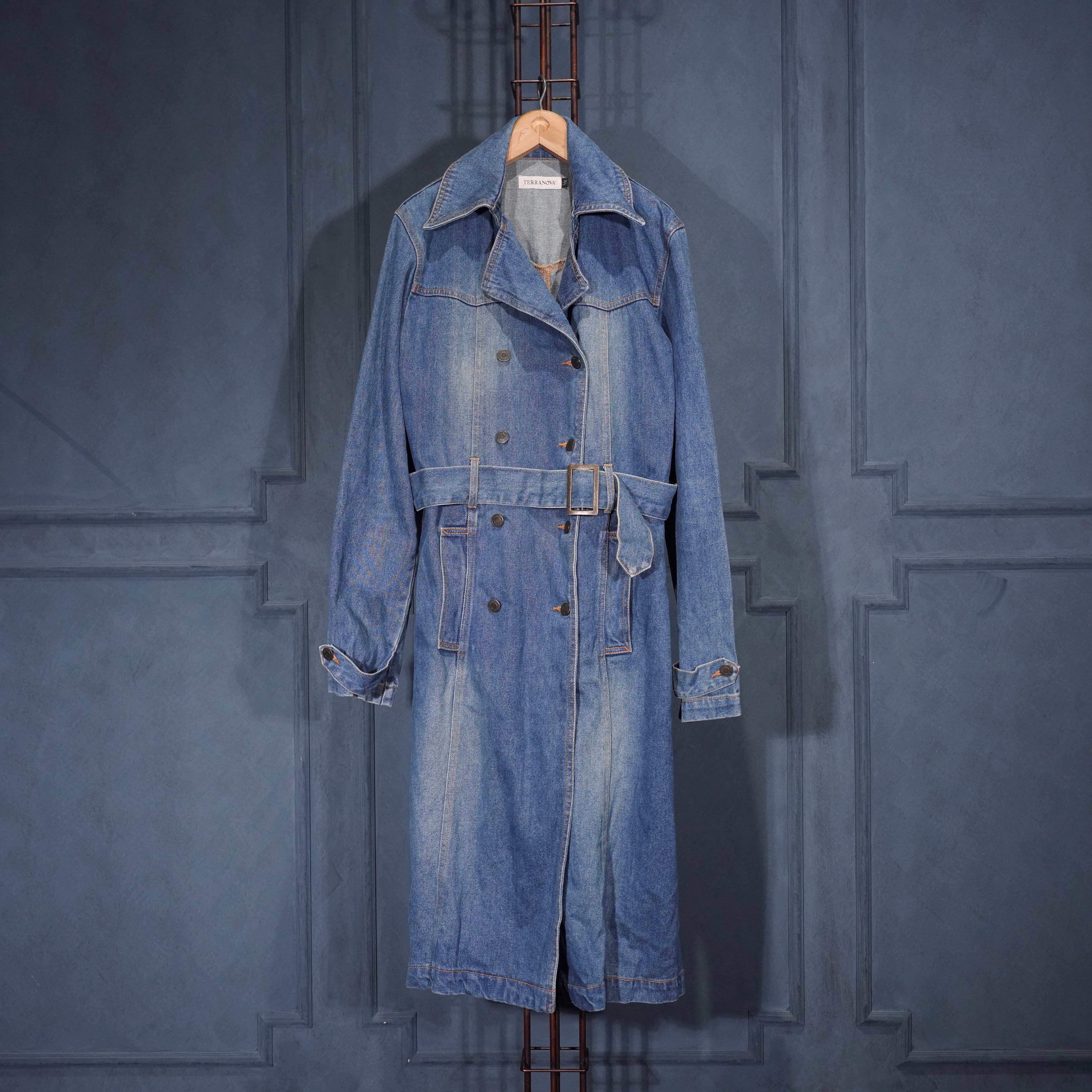 EU VINTAGE TERRANOVA BELTED DESIGN DENIM TRENCH COAT/ヨーロッパ古着ベルテッドデザインデニムトレンチコート