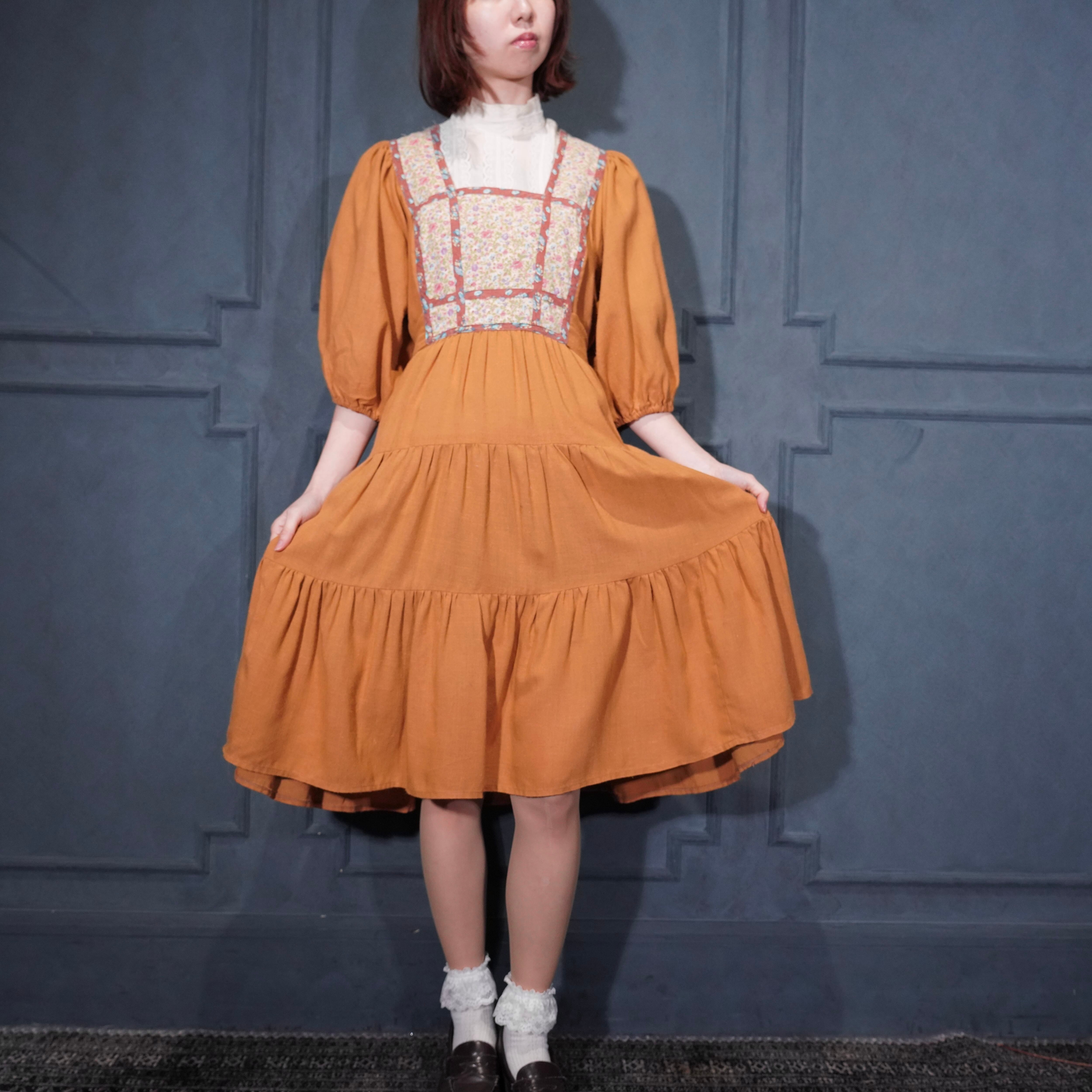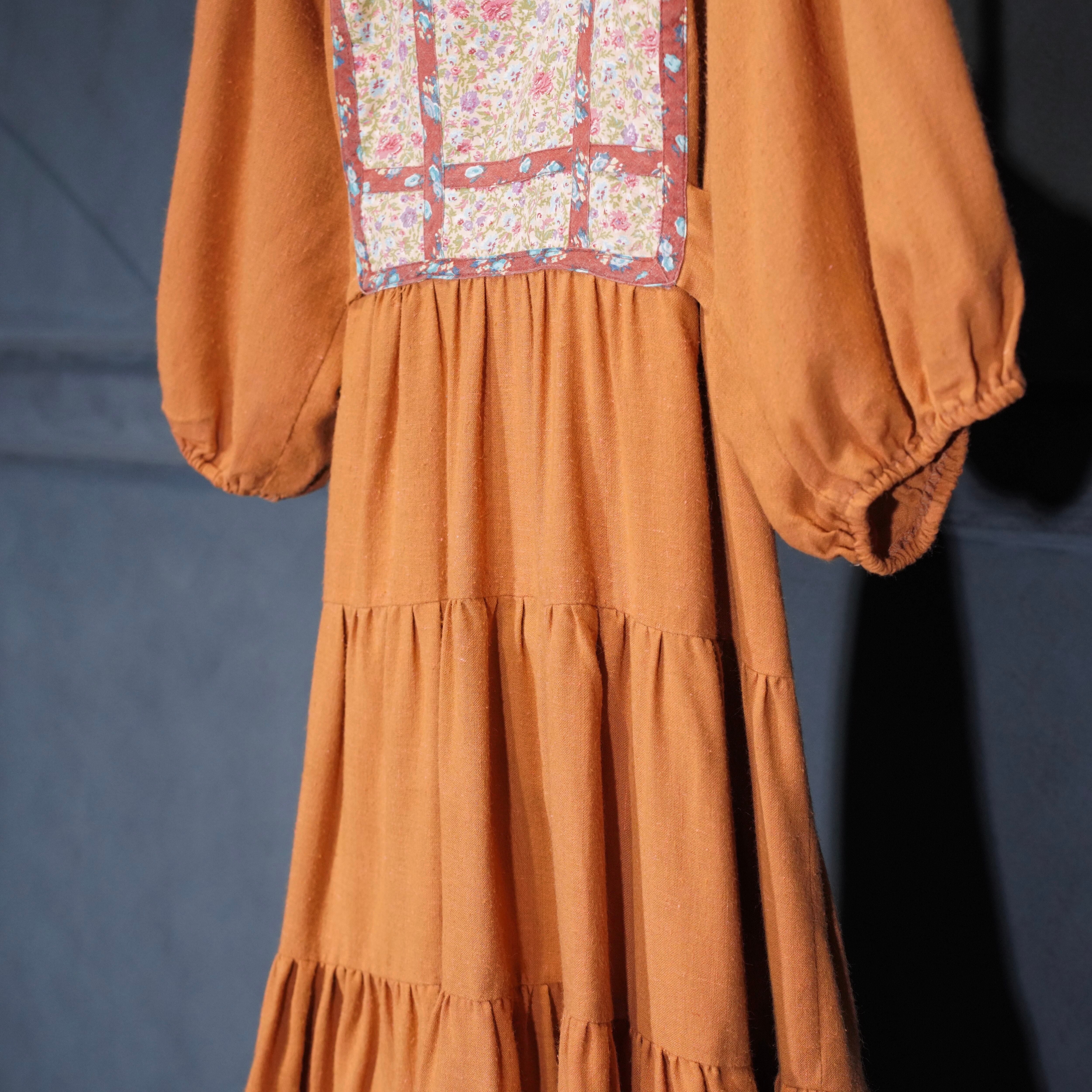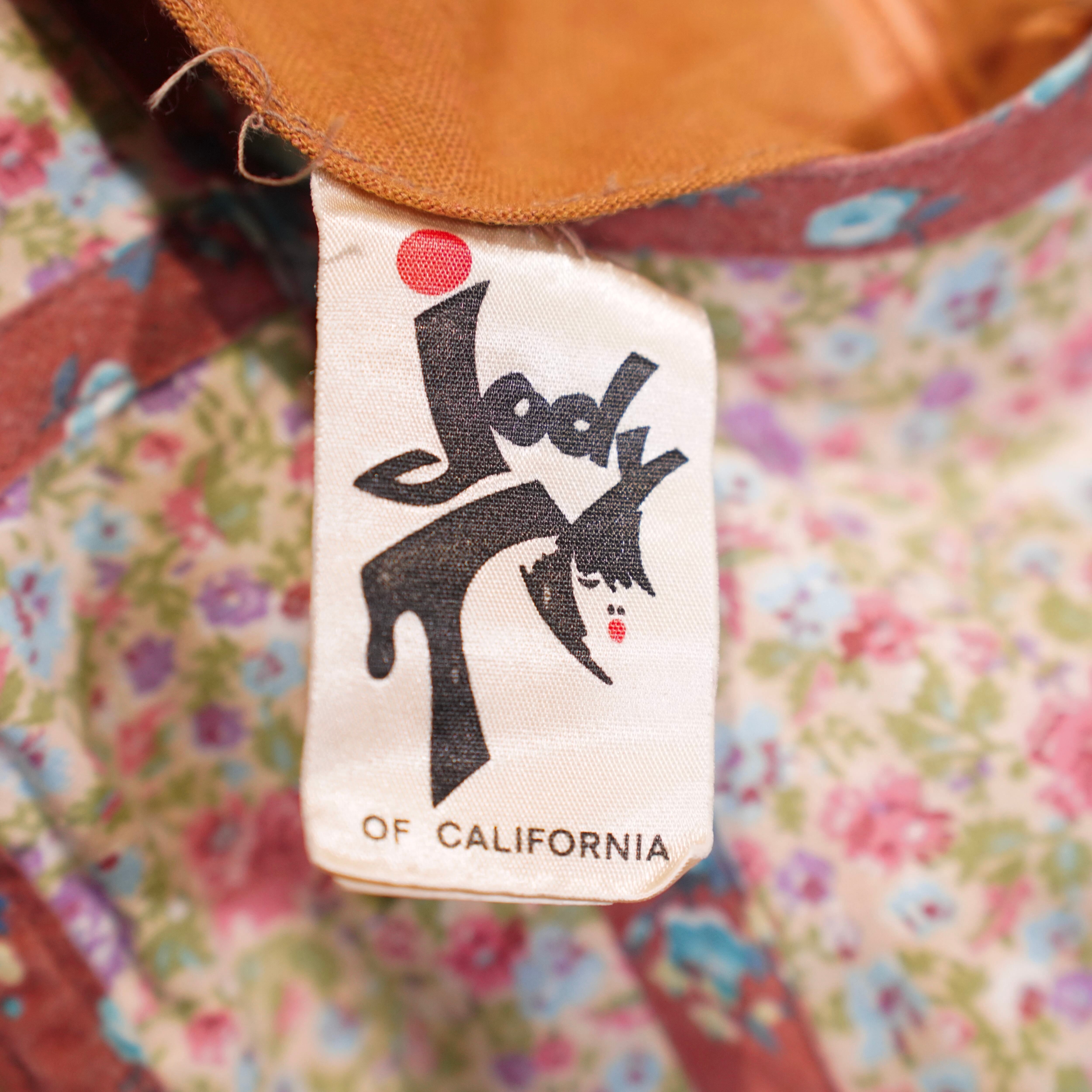 70’s USA VINTAGE Jody T of CALIFORNIA FLOWER PATTERENED BACK RIBBON DESIGN ONE PIECE/70年代アメリカ古着お花柄バックリボンデザインワンピース