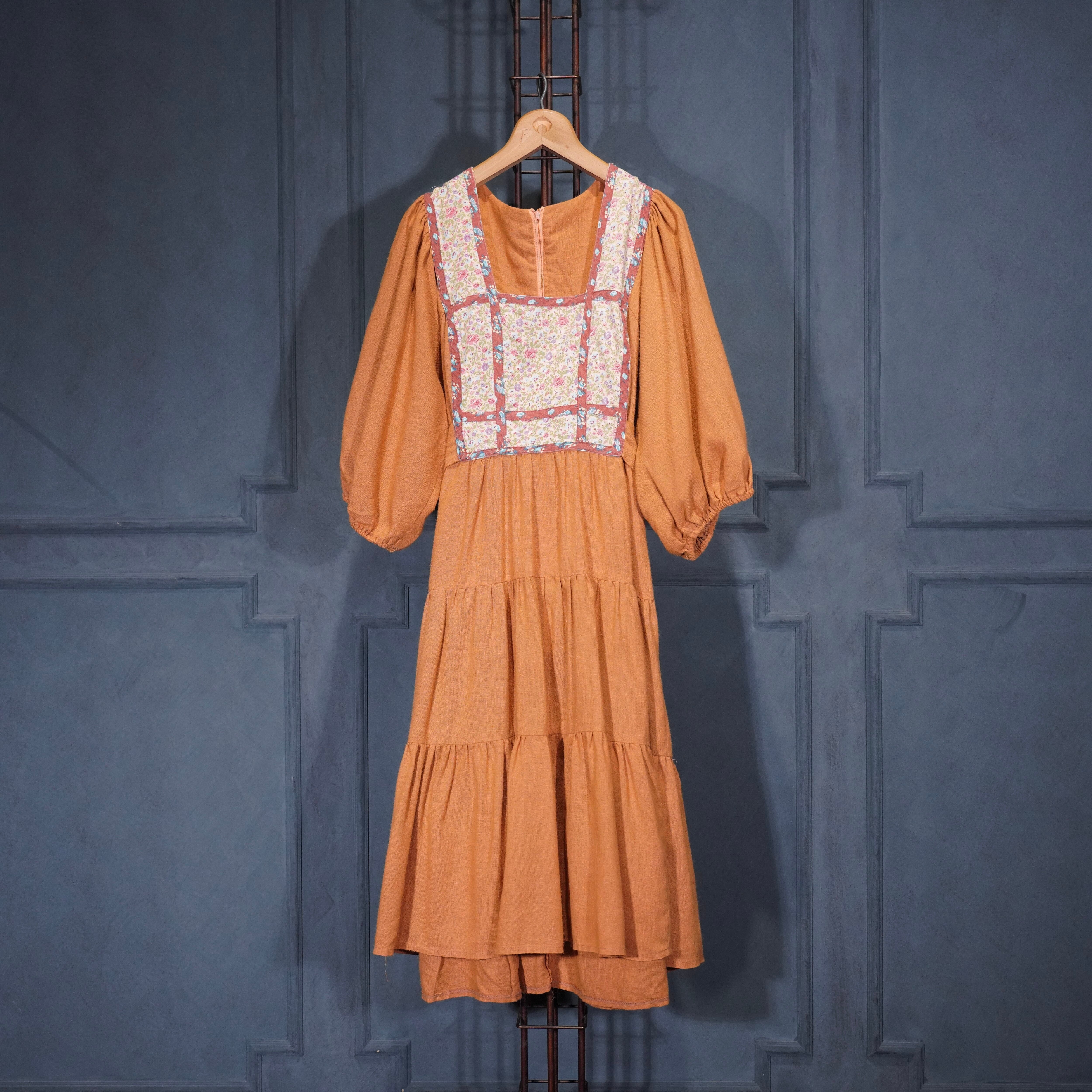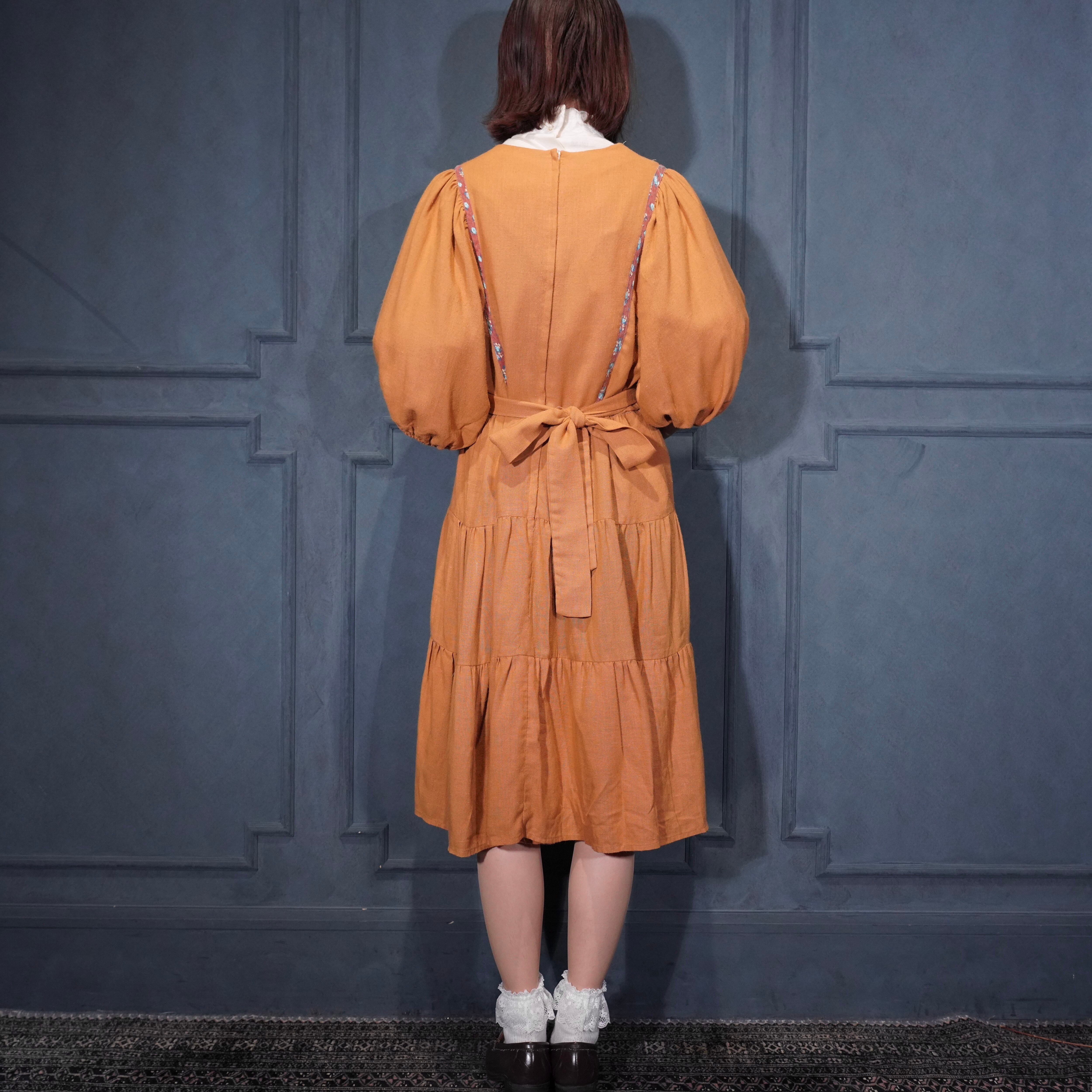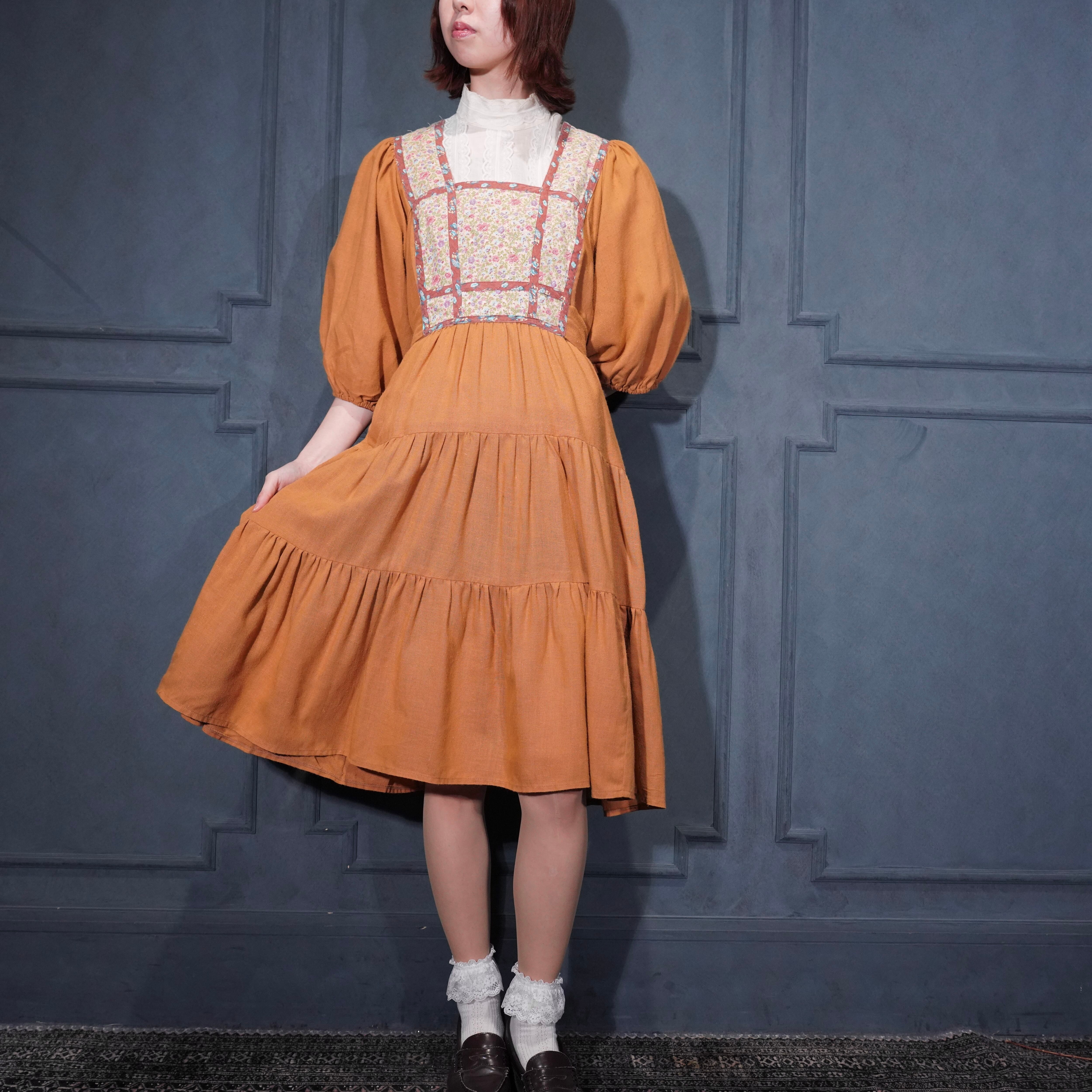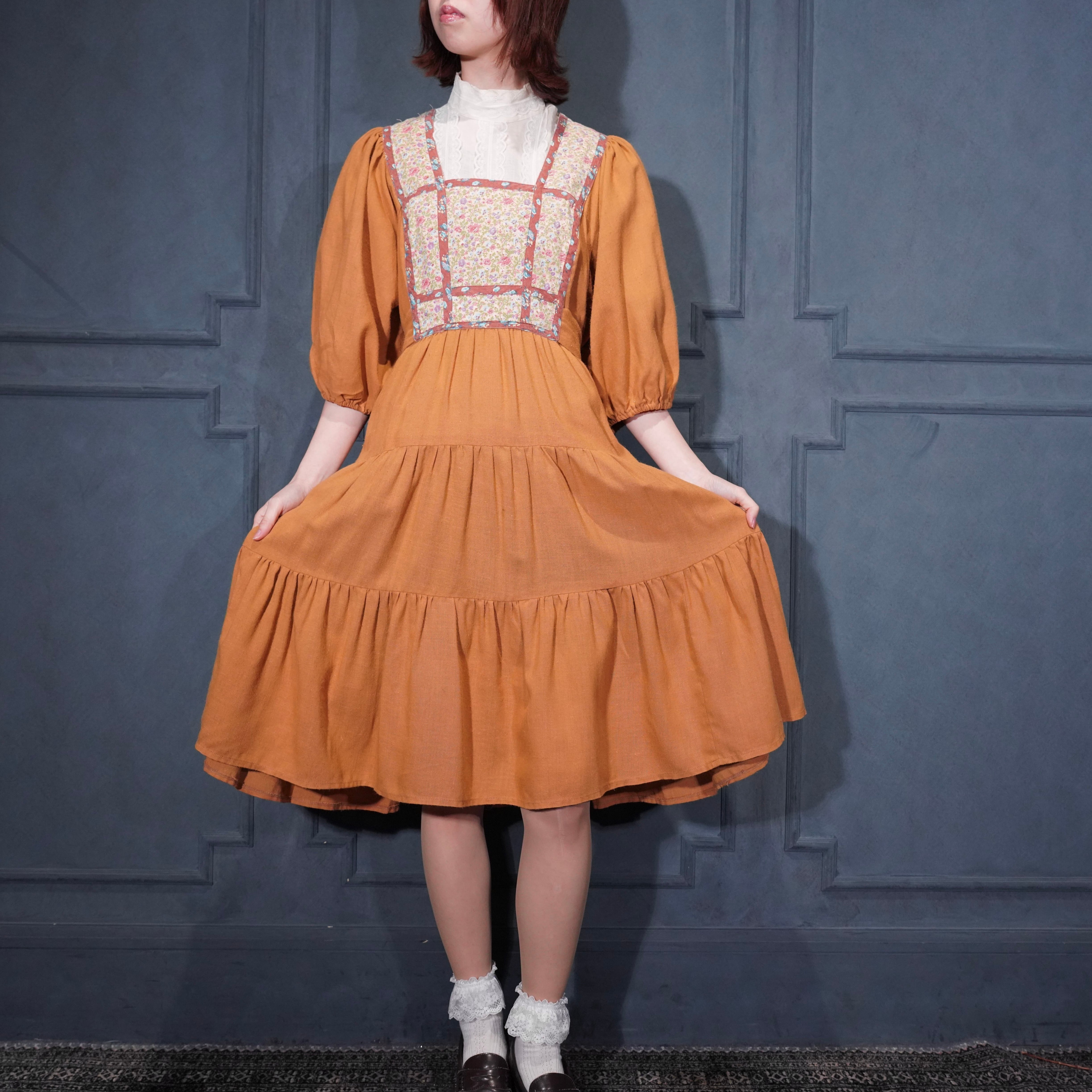 70’s USA VINTAGE Jody T of CALIFORNIA FLOWER PATTERENED BACK RIBBON DESIGN ONE PIECE/70年代アメリカ古着お花柄バックリボンデザインワンピース