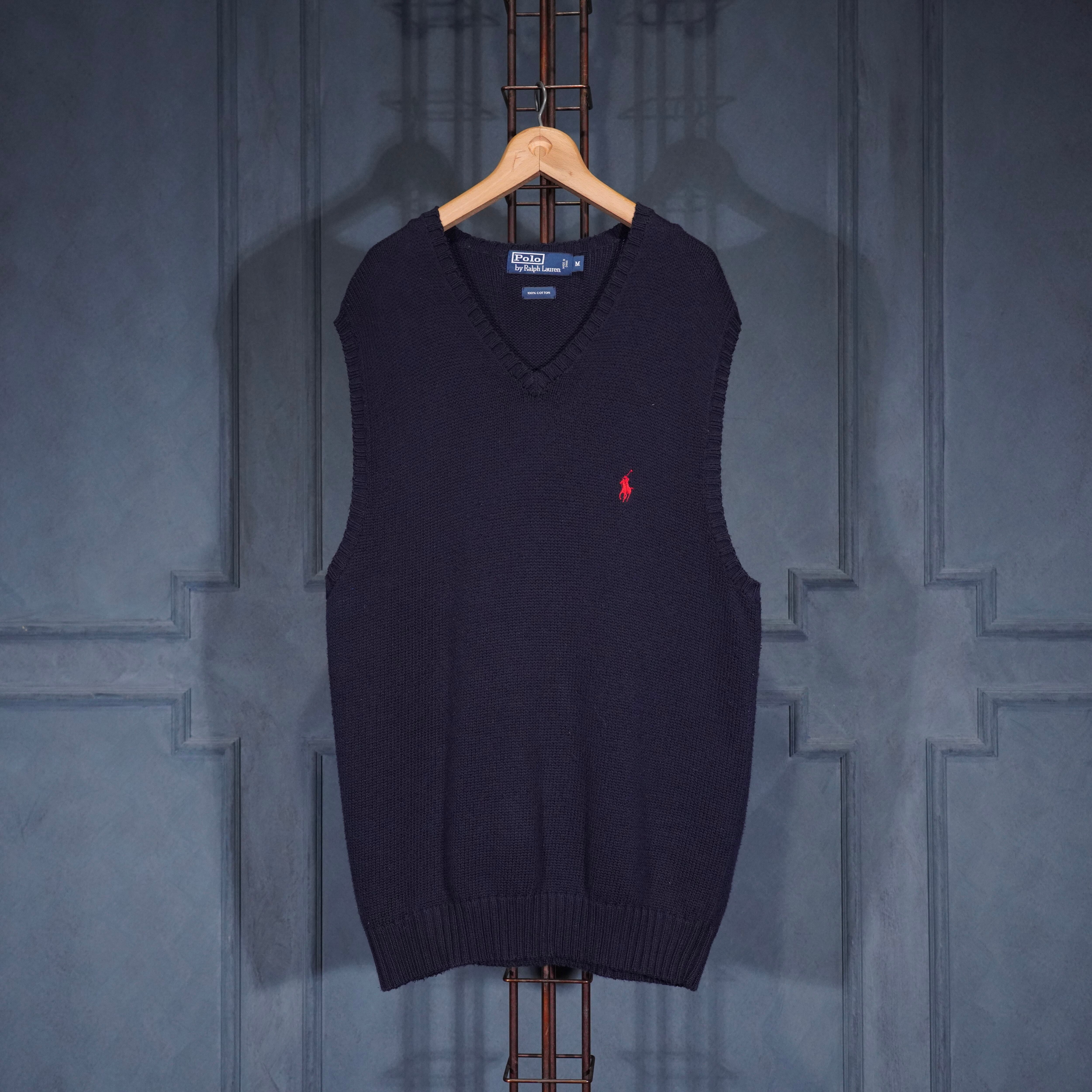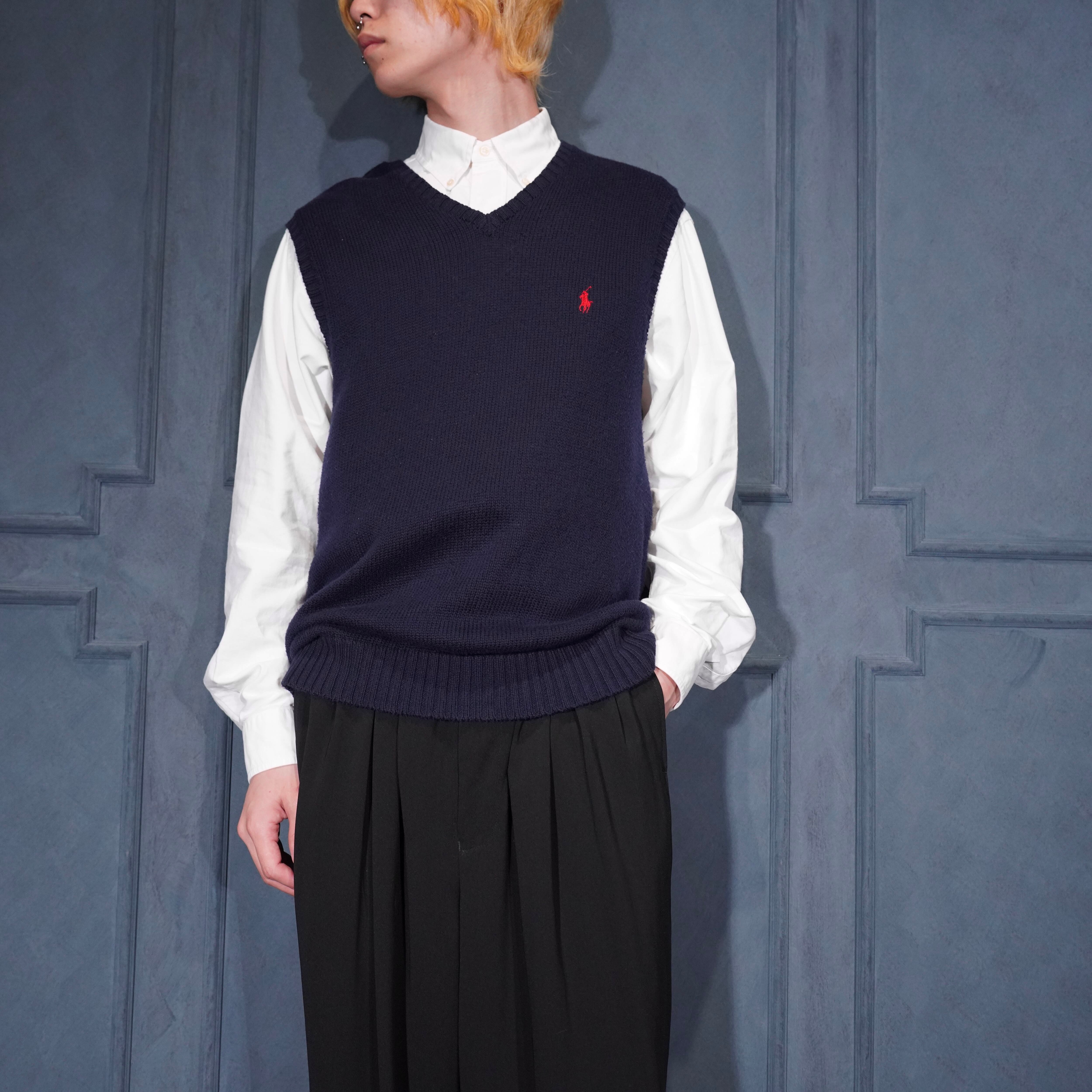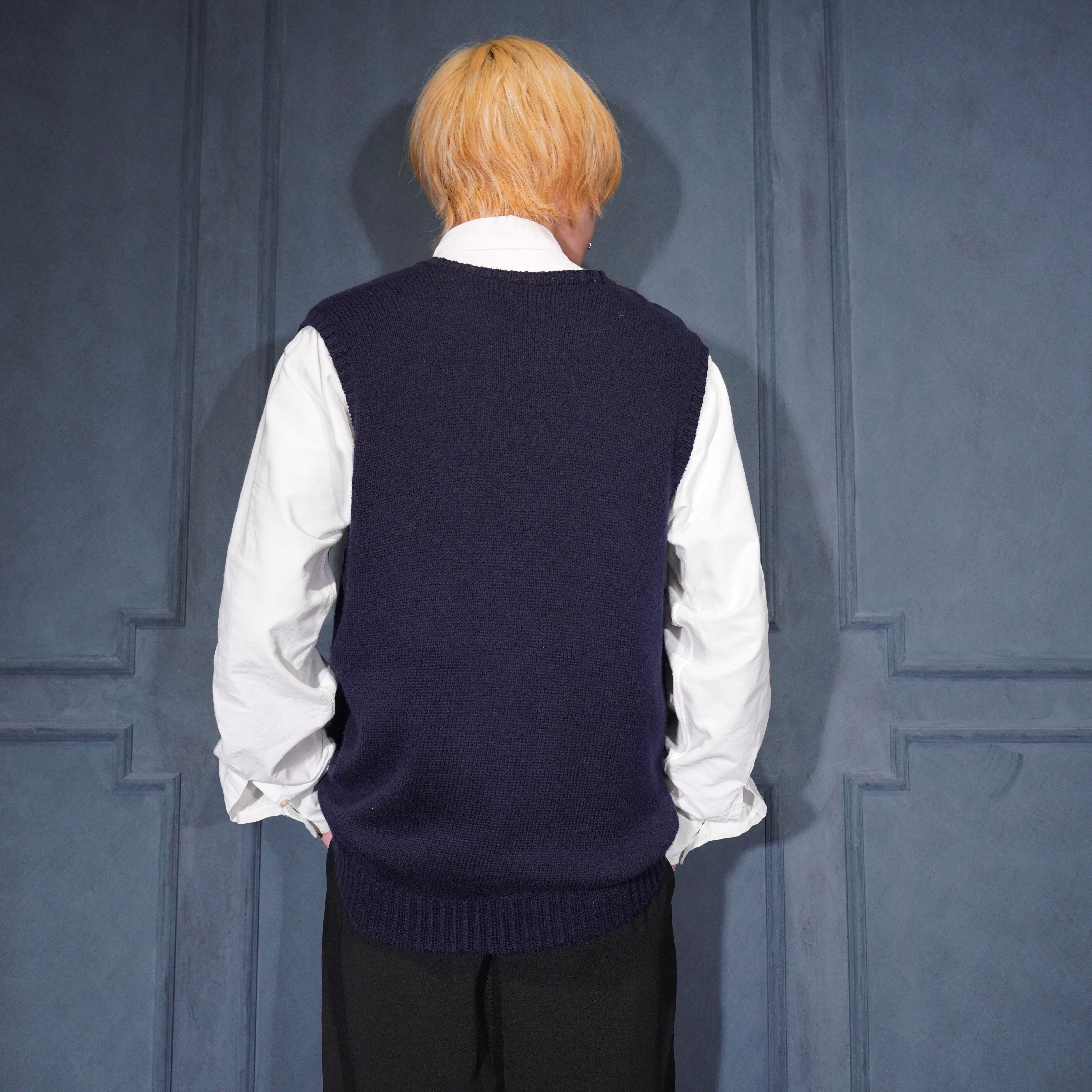 USA VINTAGE Polo by Ralph Lauren HORSE EMBRIDERY DESIGN COTTON KNIT VEST/アメリカ古着ポロバイラルフローレンホース刺繍デザインコットンニットベスト