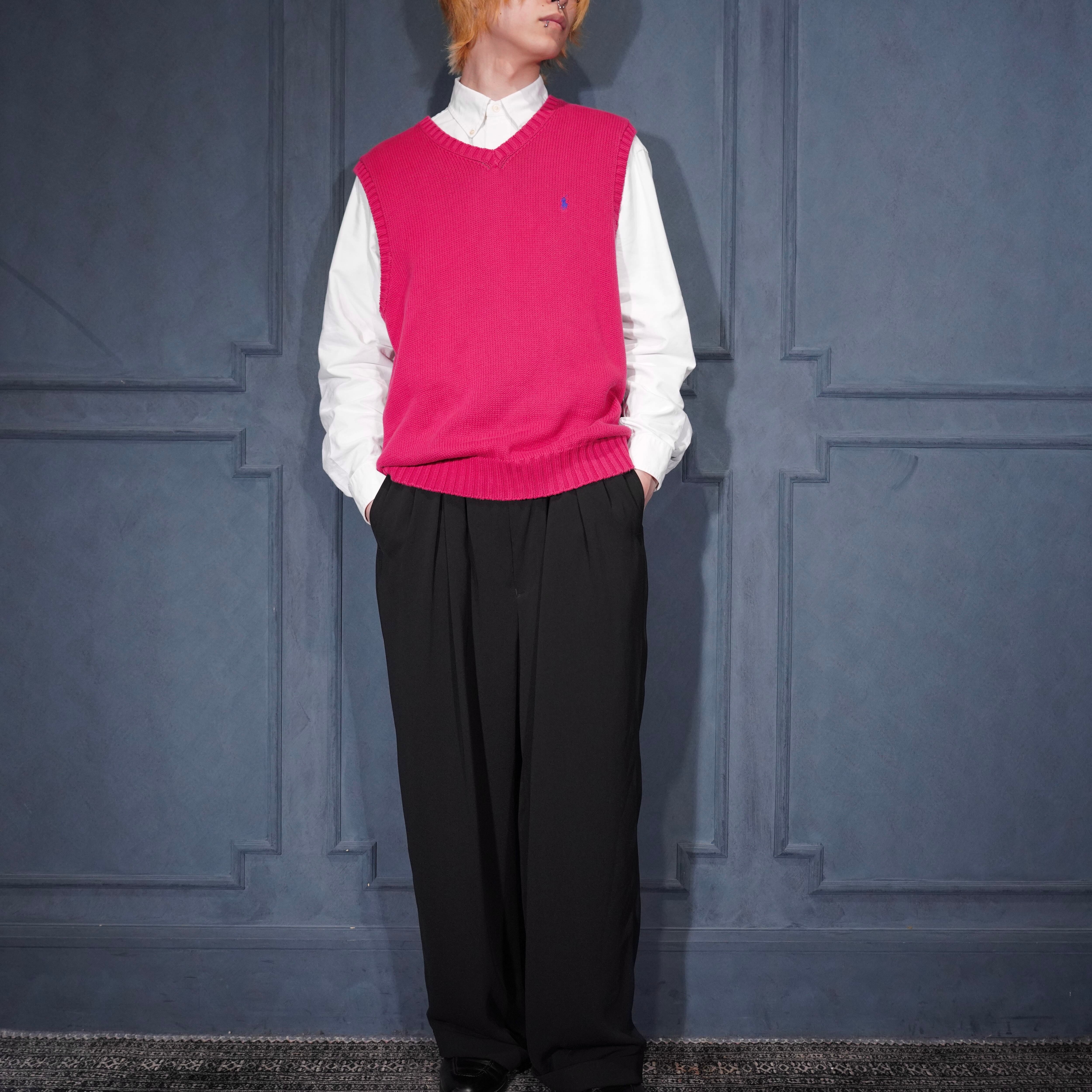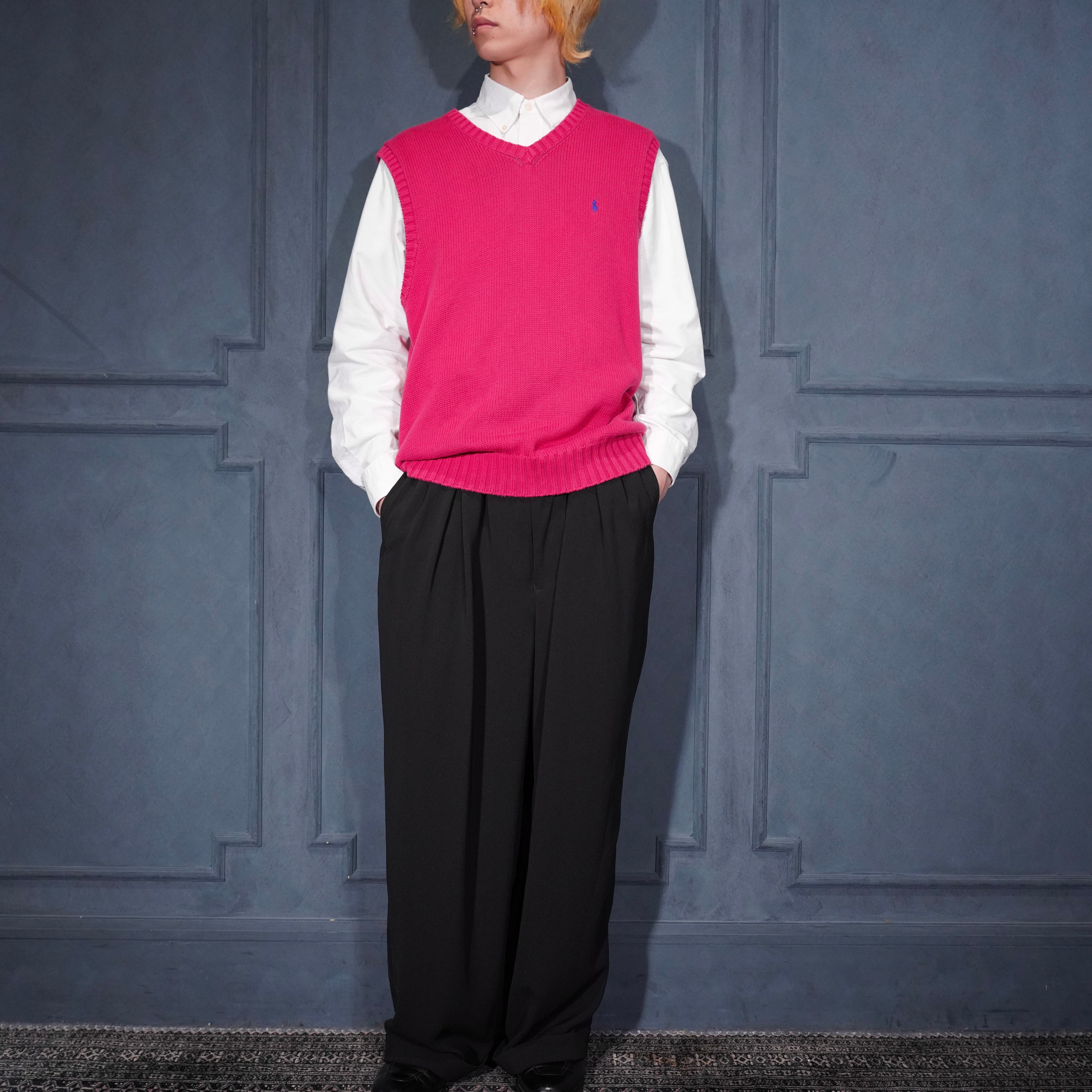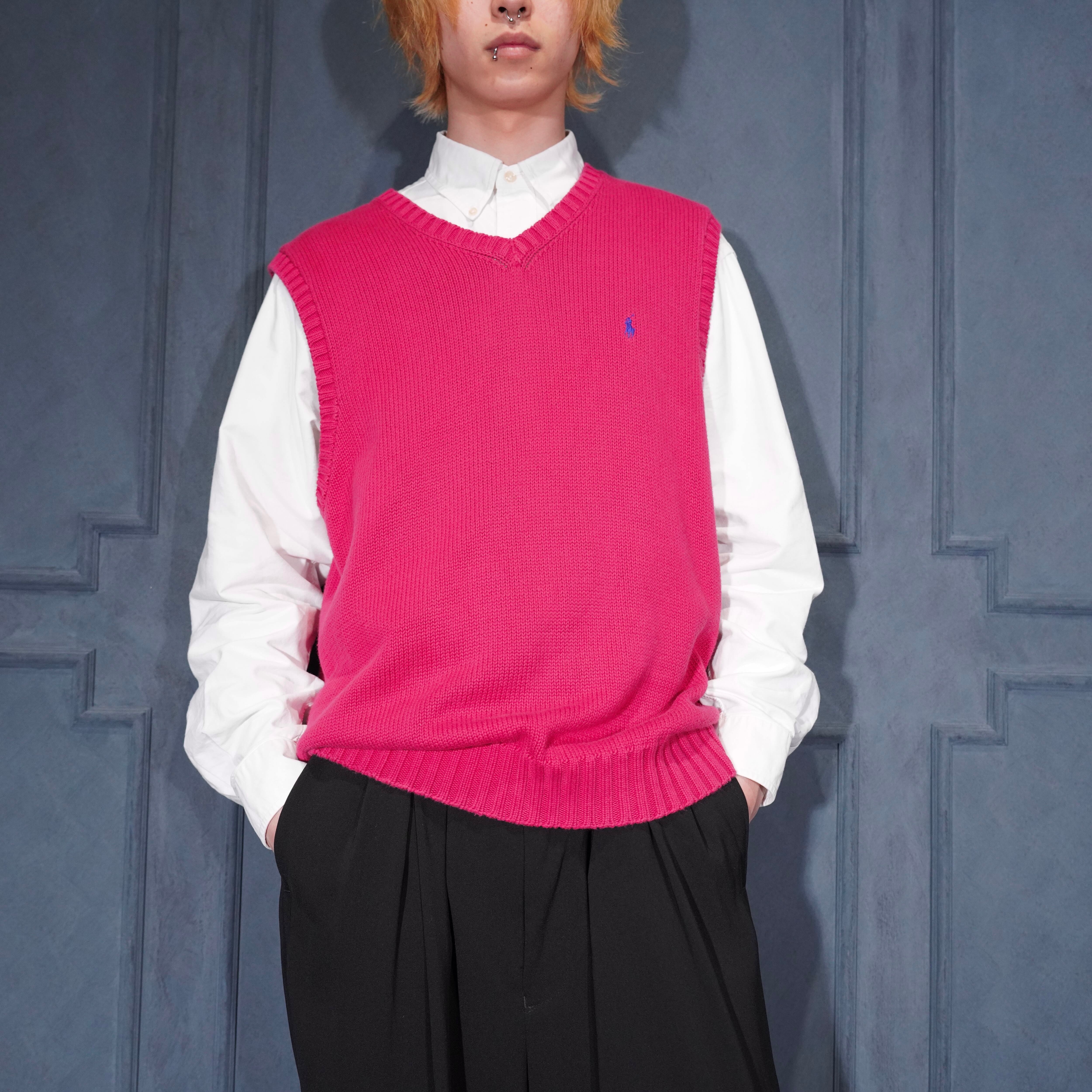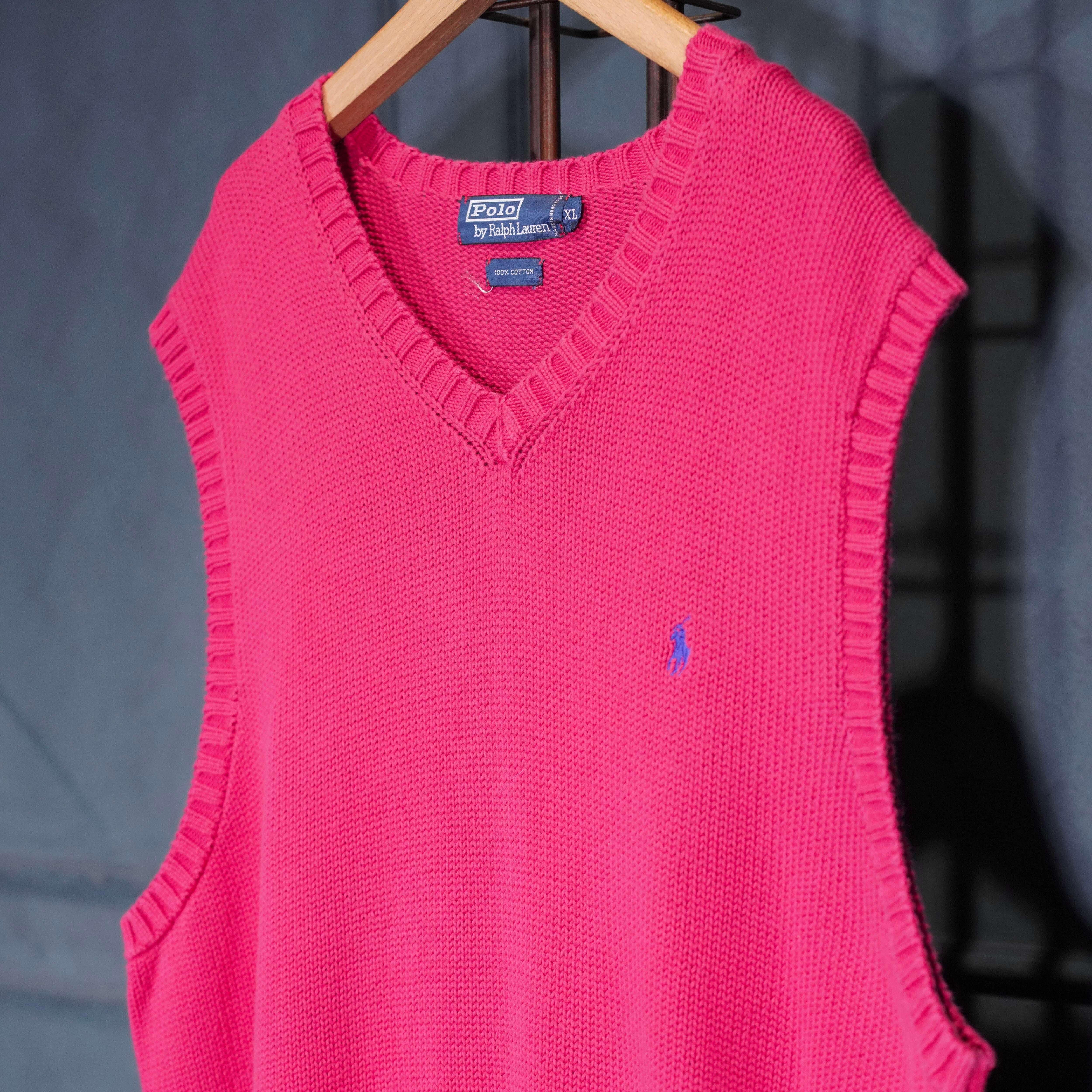 USA VINTAGE Polo by Ralph Lauren HORSE EMBRIDERY DESIGN COTTON KNIT VEST/アメリカ古着ポロバイラルフローレンホース刺繍デザインコットンニットベスト