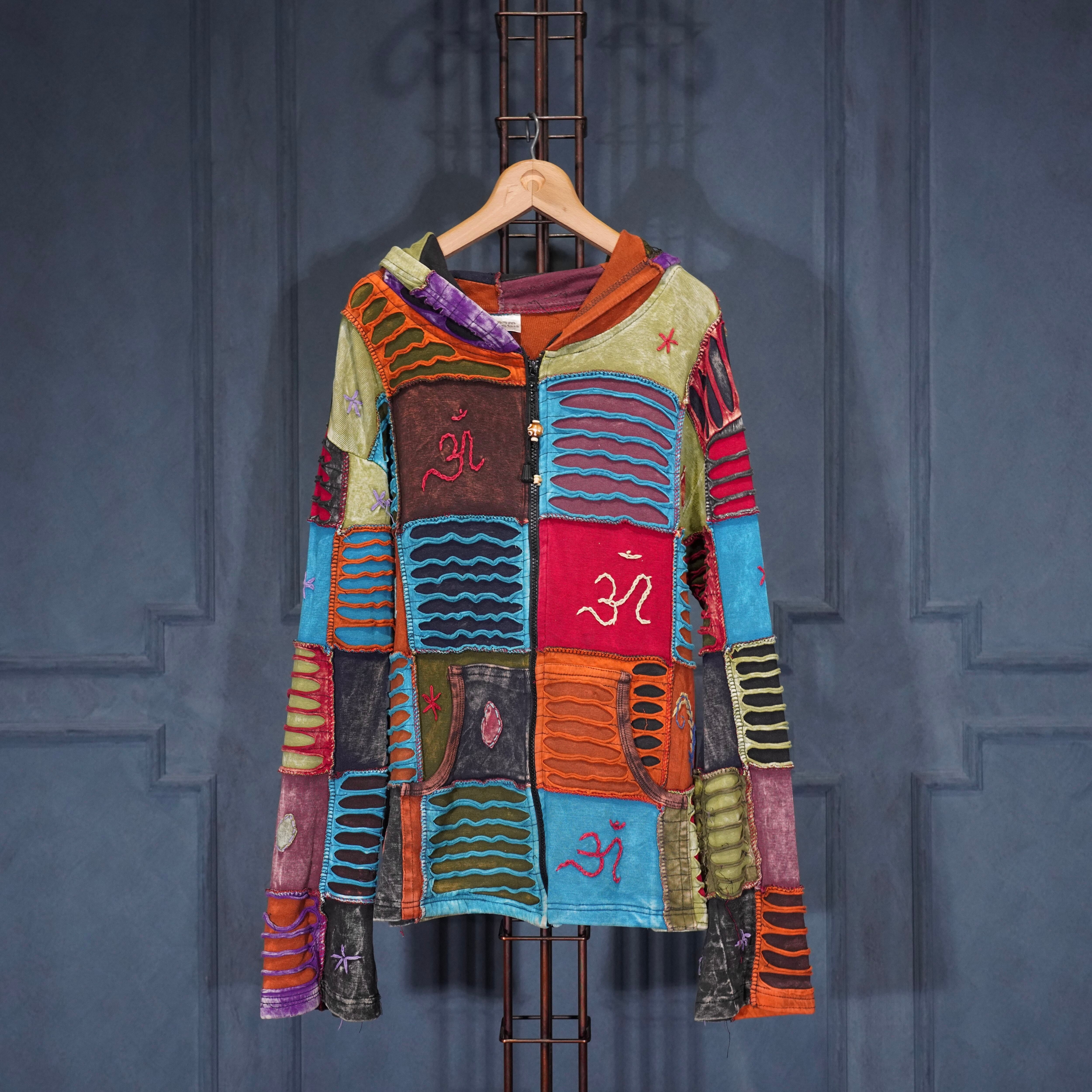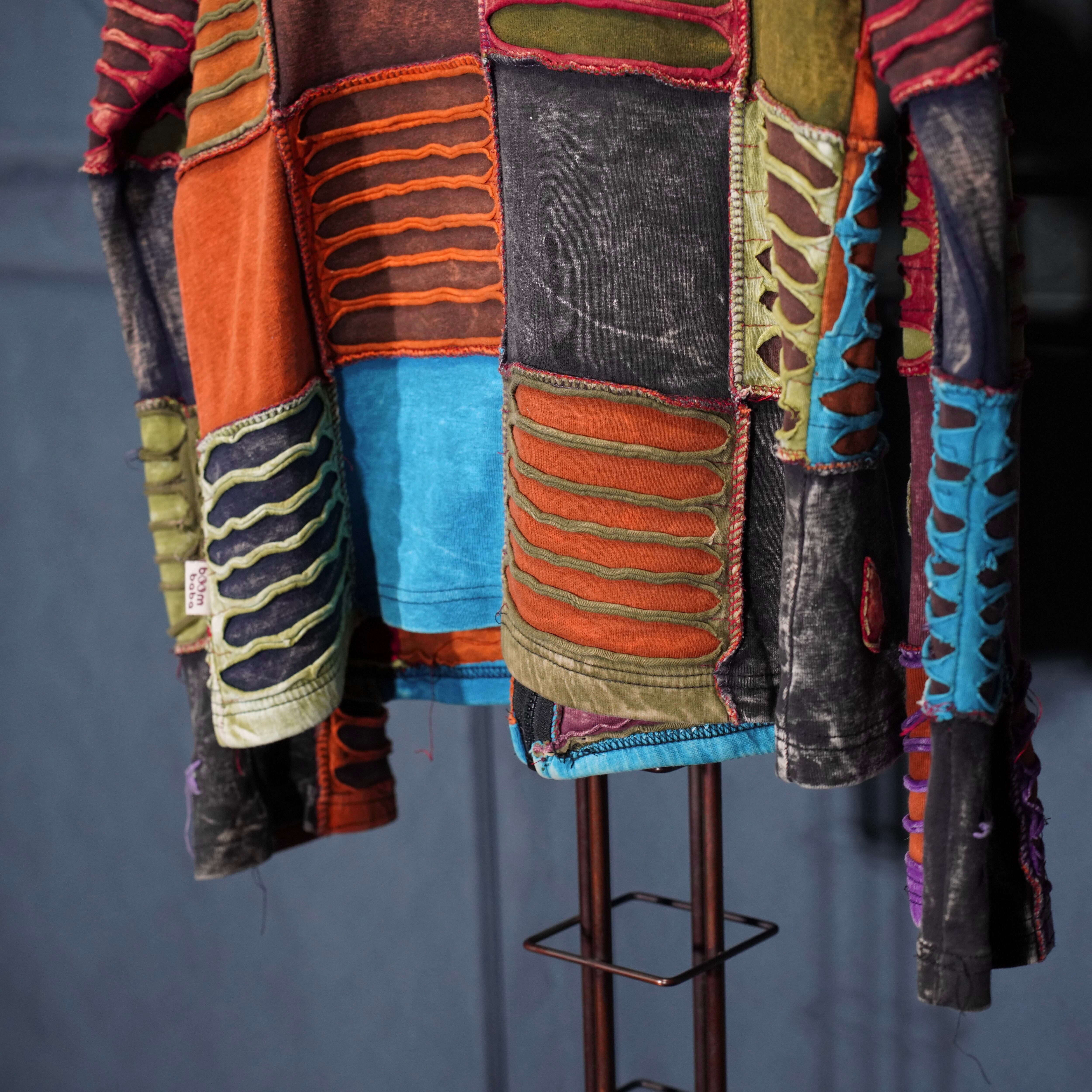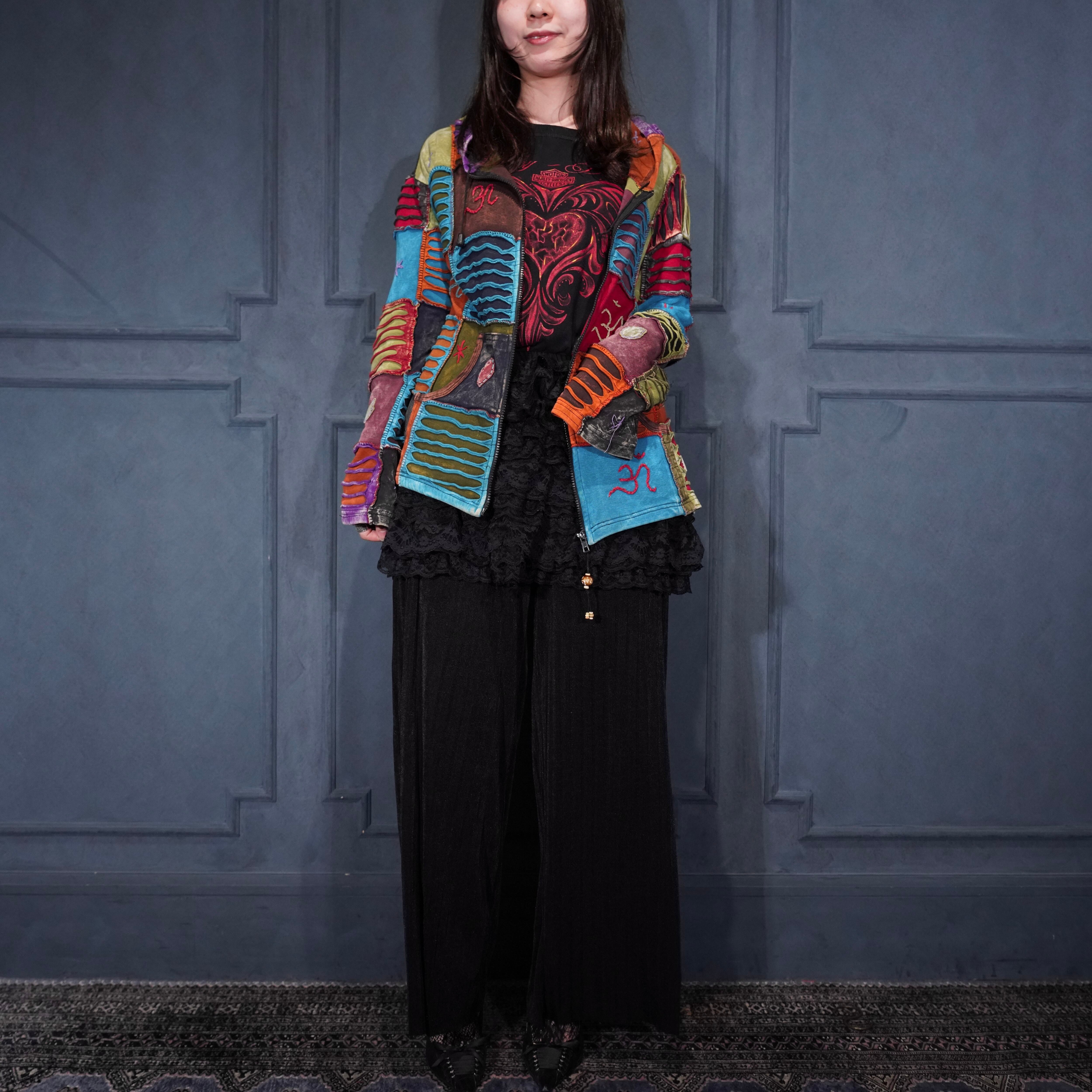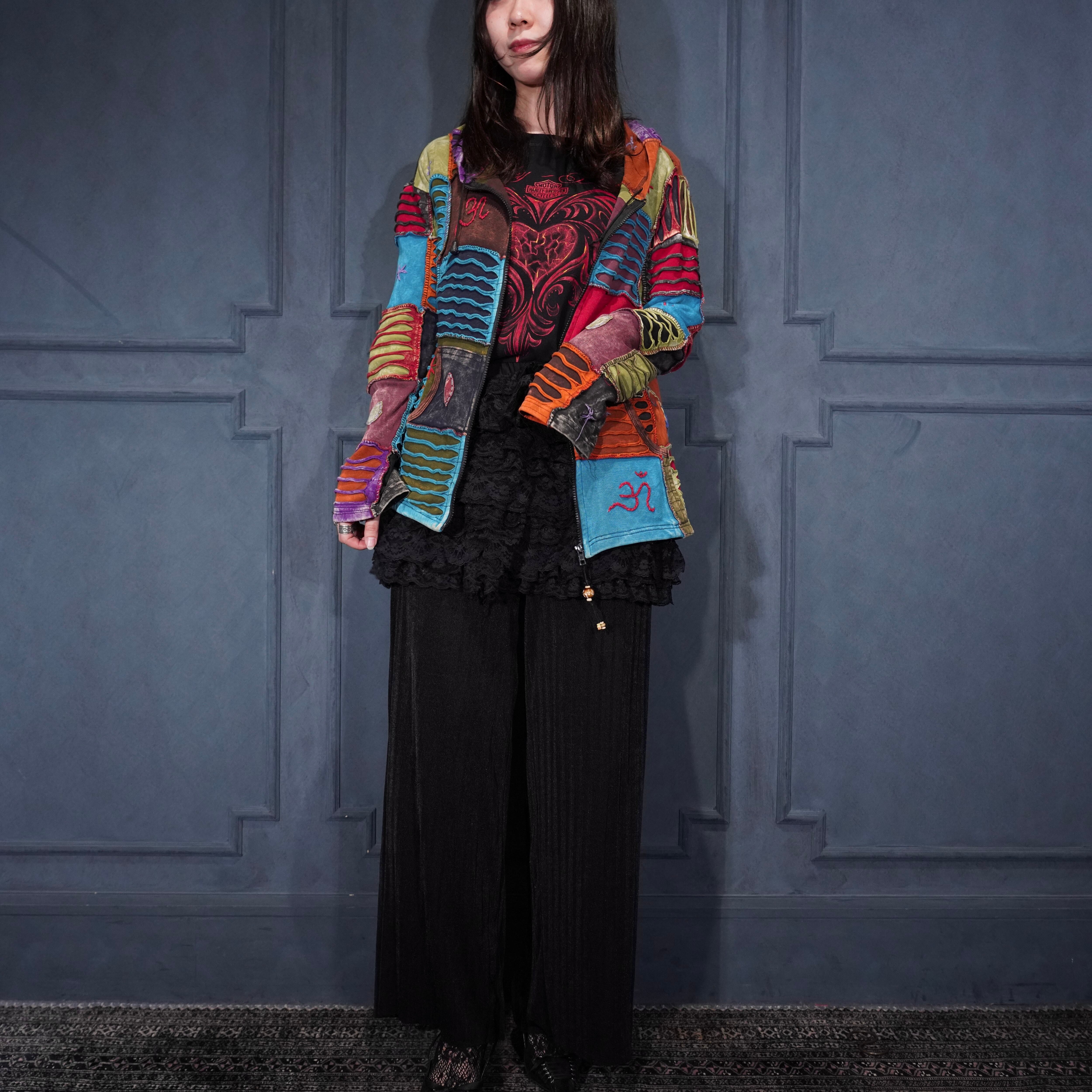 USA VINTAGE boom baba PATCHWORK DESIGN ZIP UP NEPAL HOODIE/アメリカ古着パッチワークデザインジップアップネパールフーディ(パーカー)