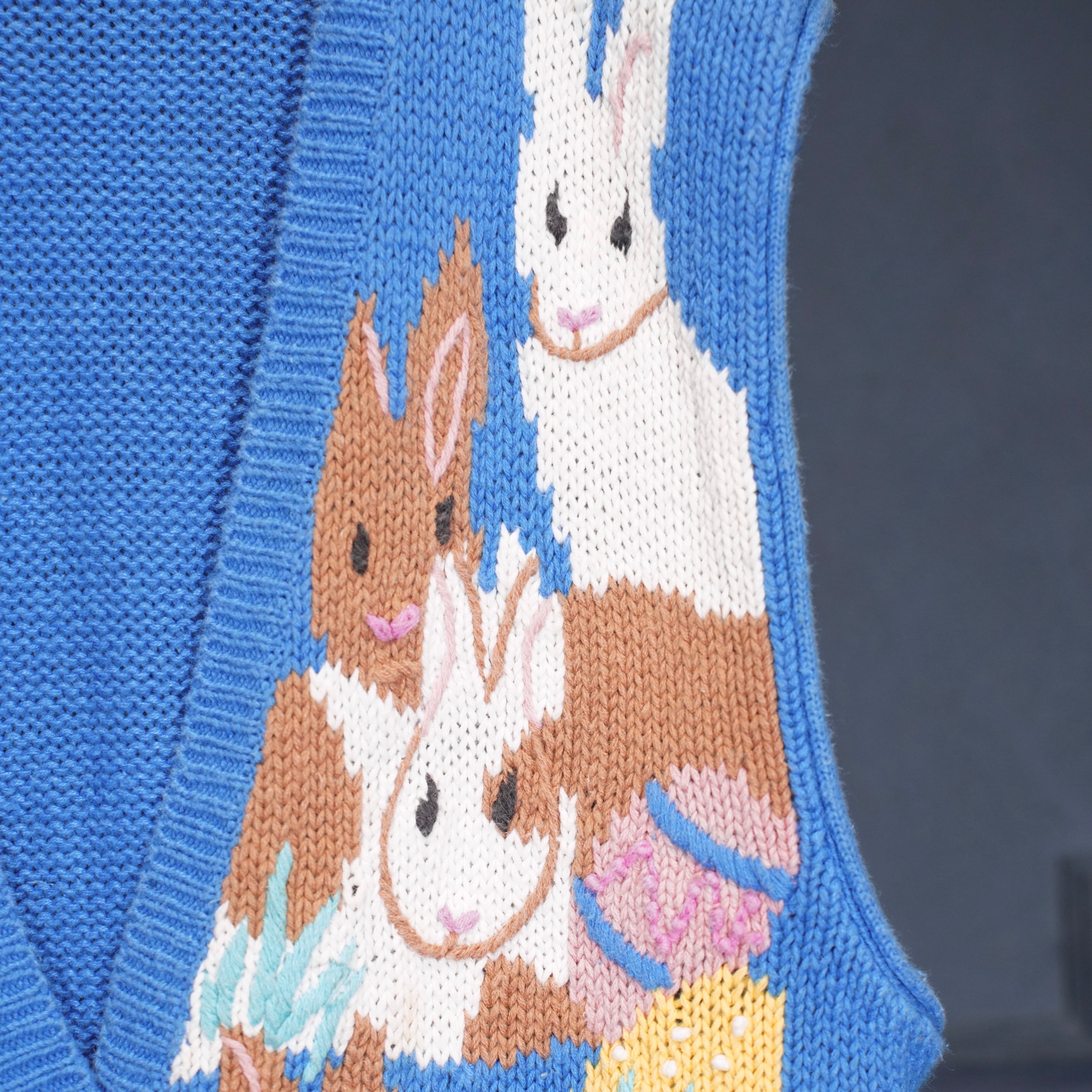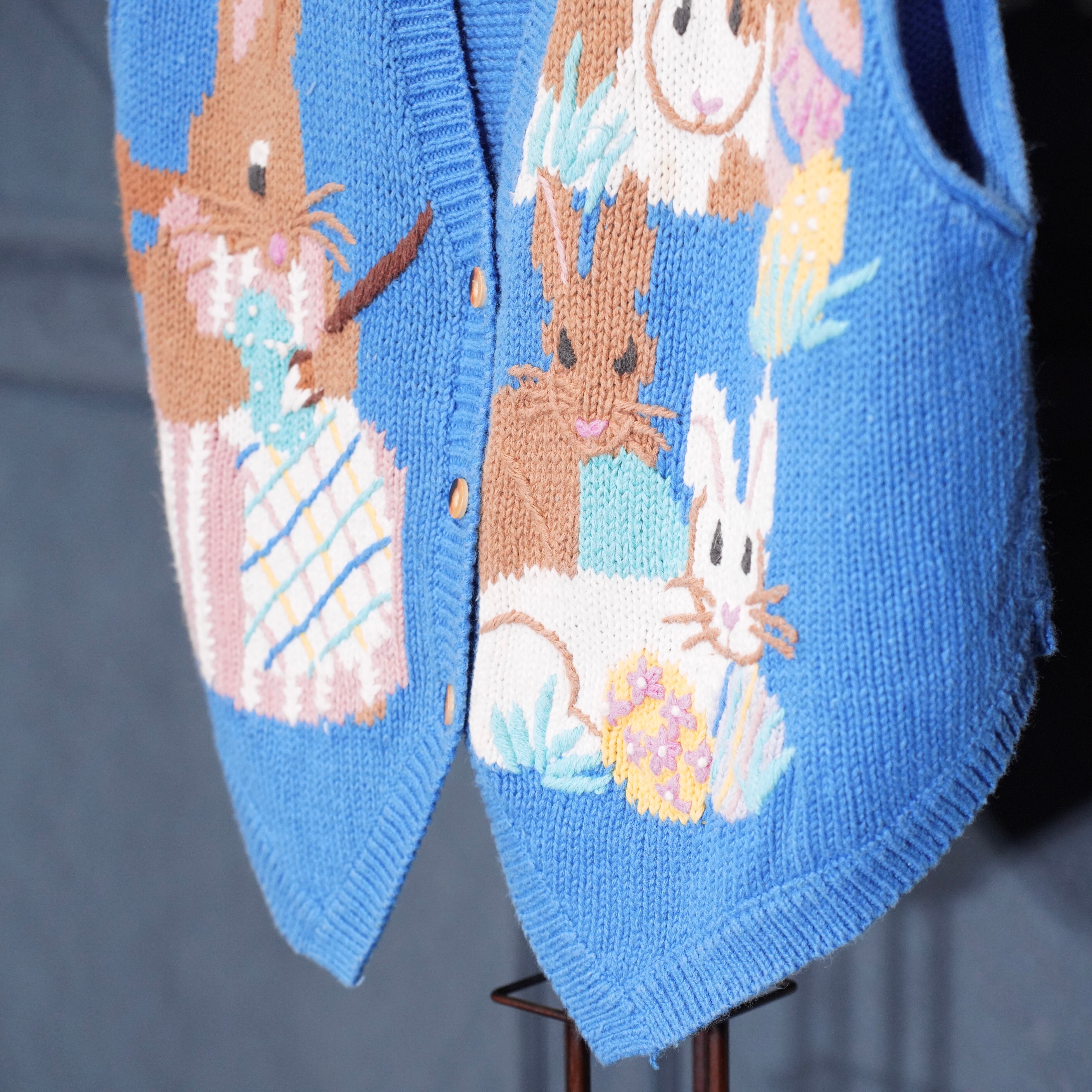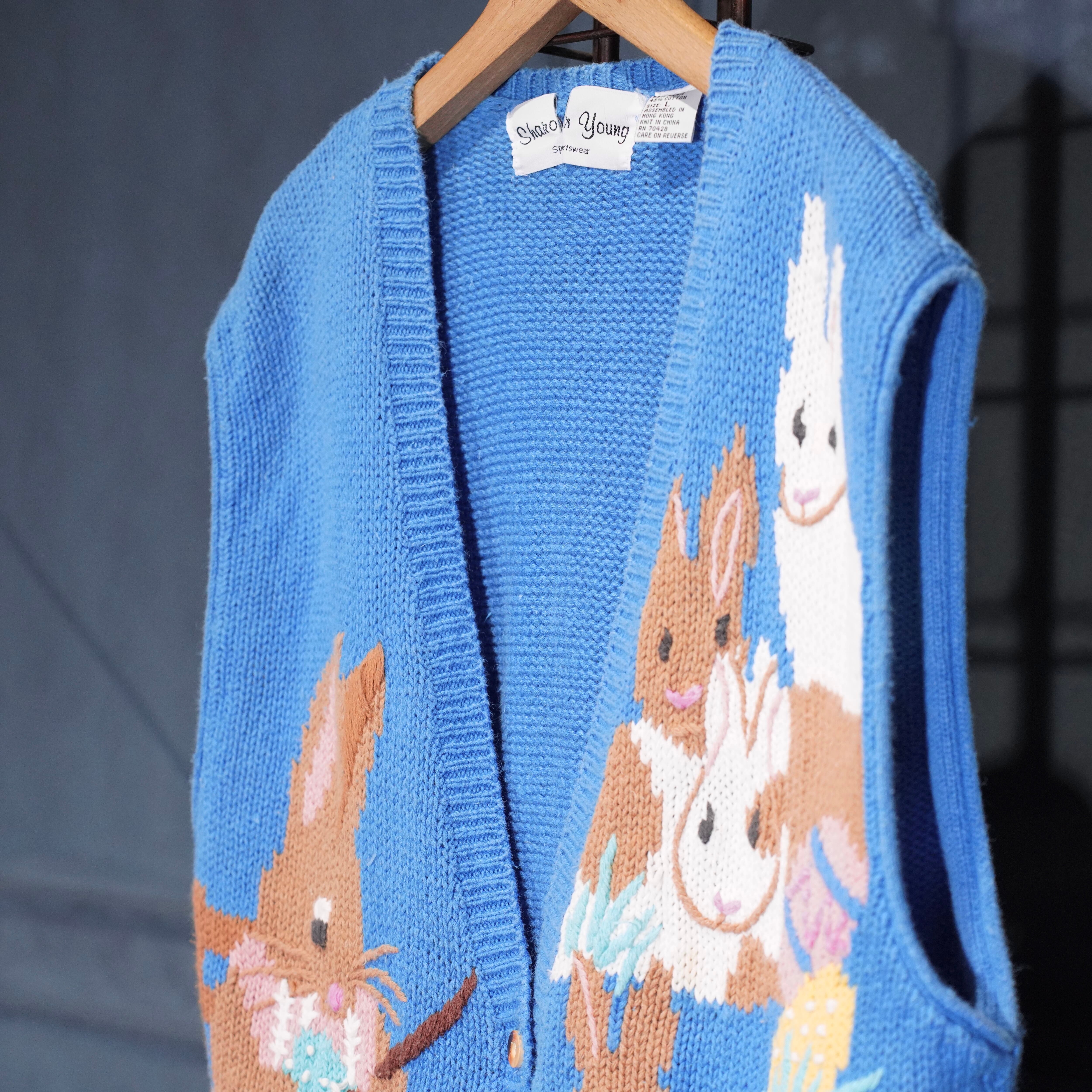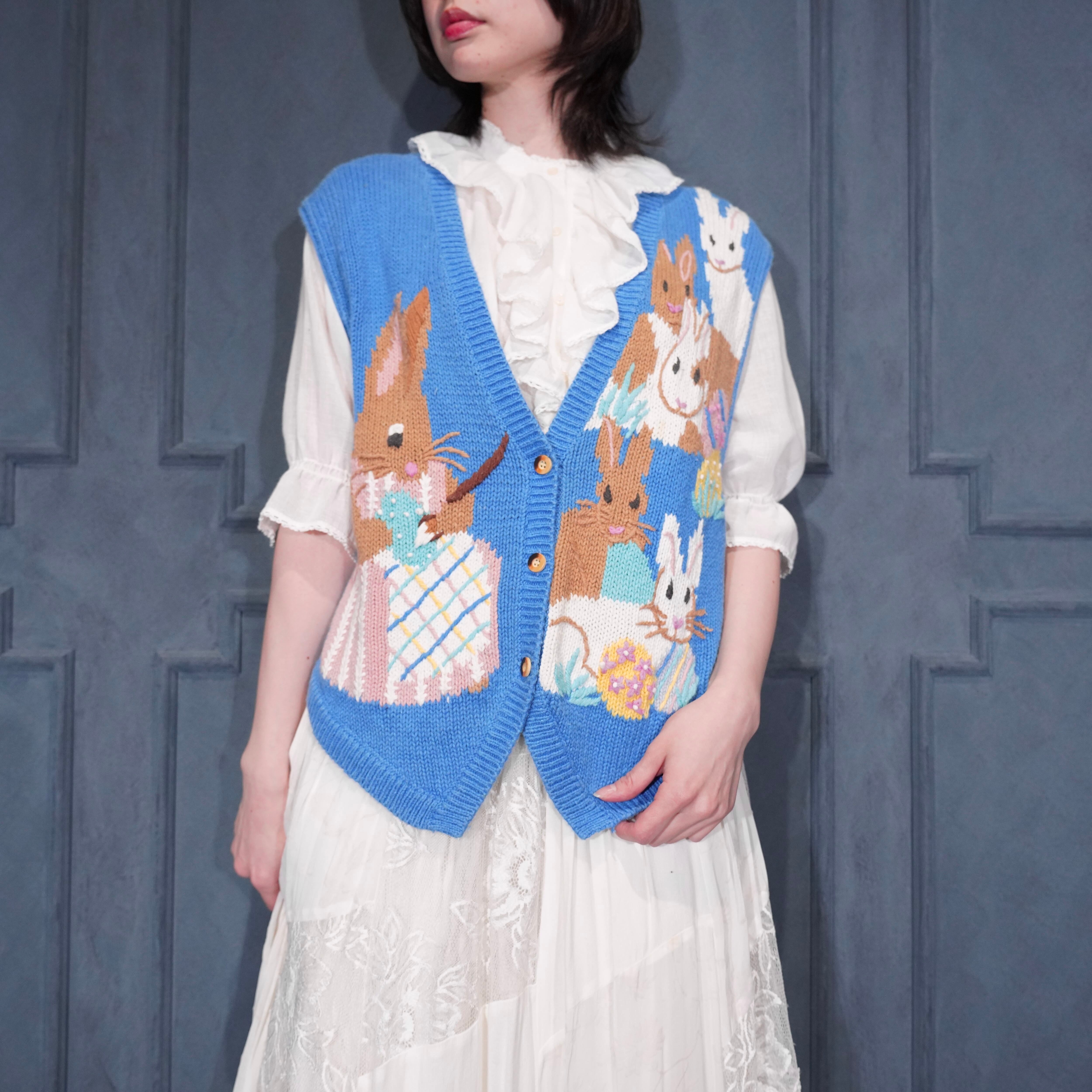USA VINTAGE Shanon young RABBIT DESIGN COTTON RAMIE KNIT VEST/アメリカ古着うさぎデザインコットンラミーニットベスト