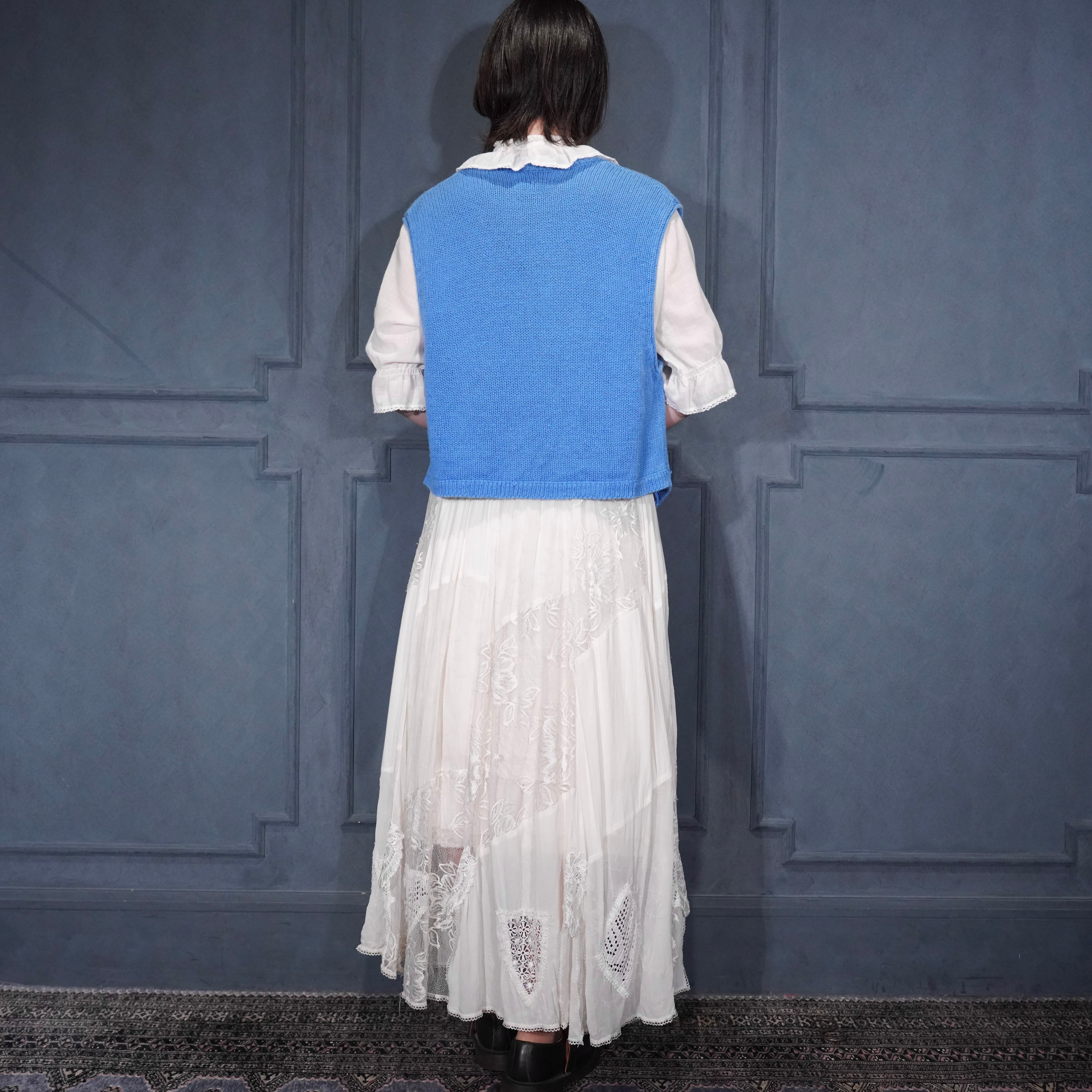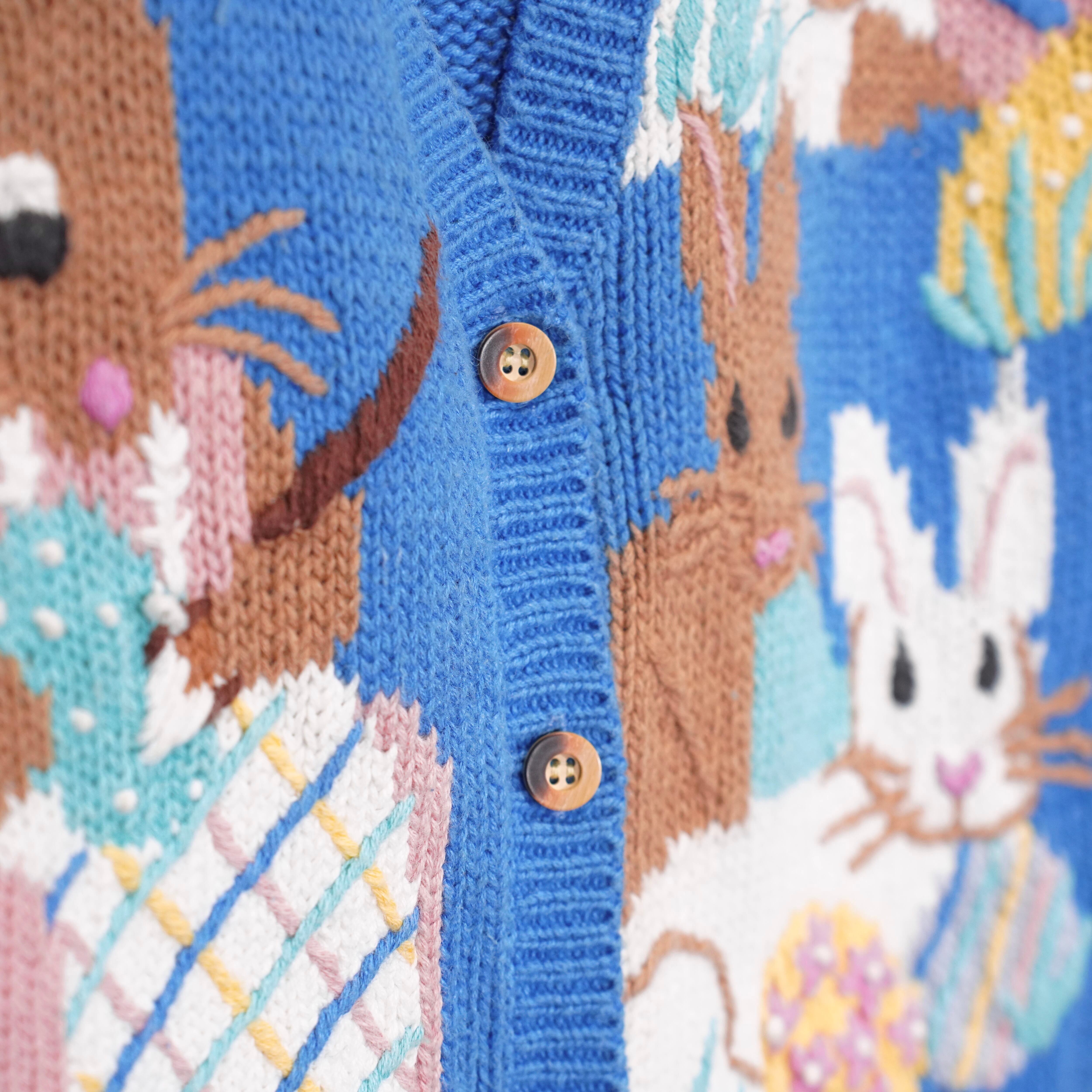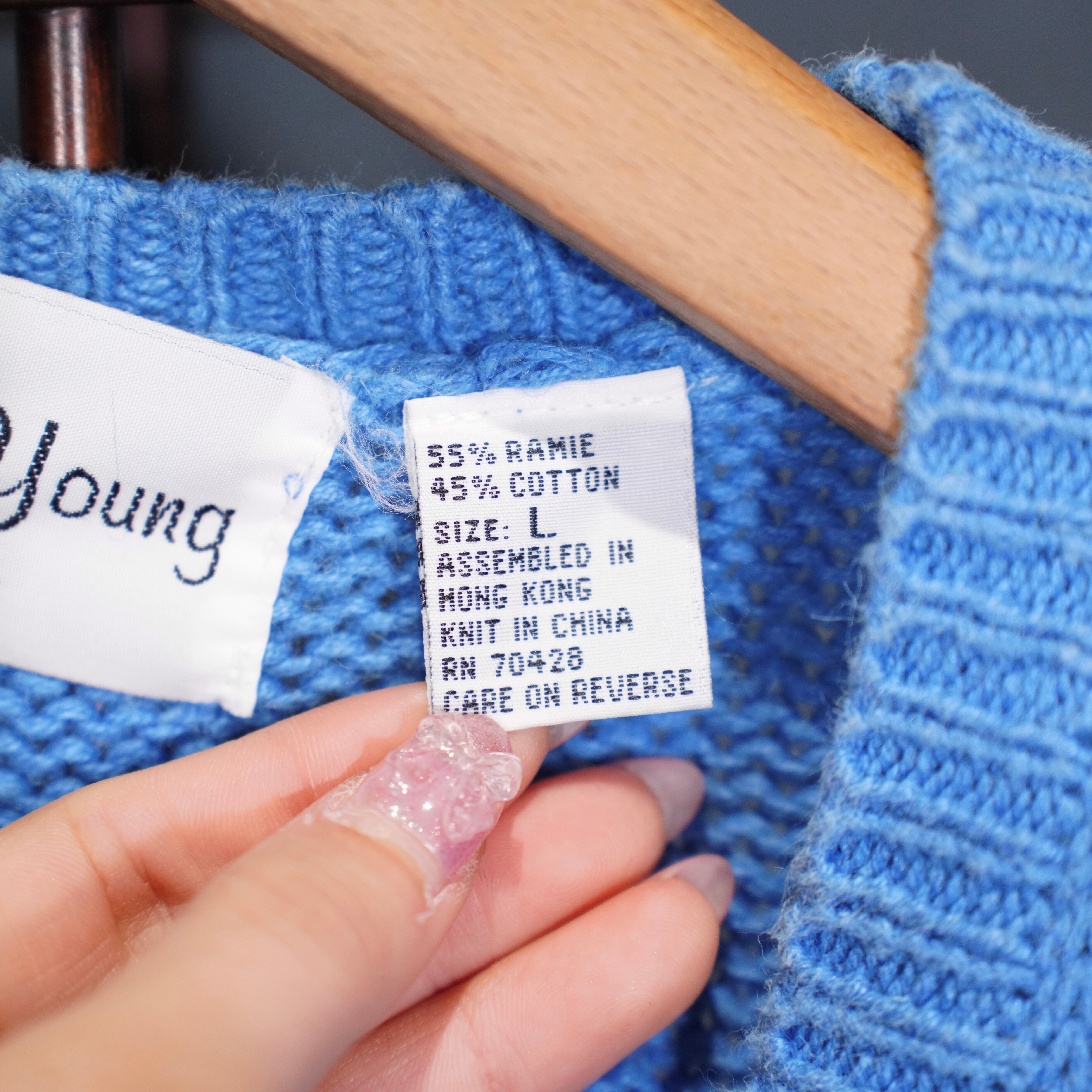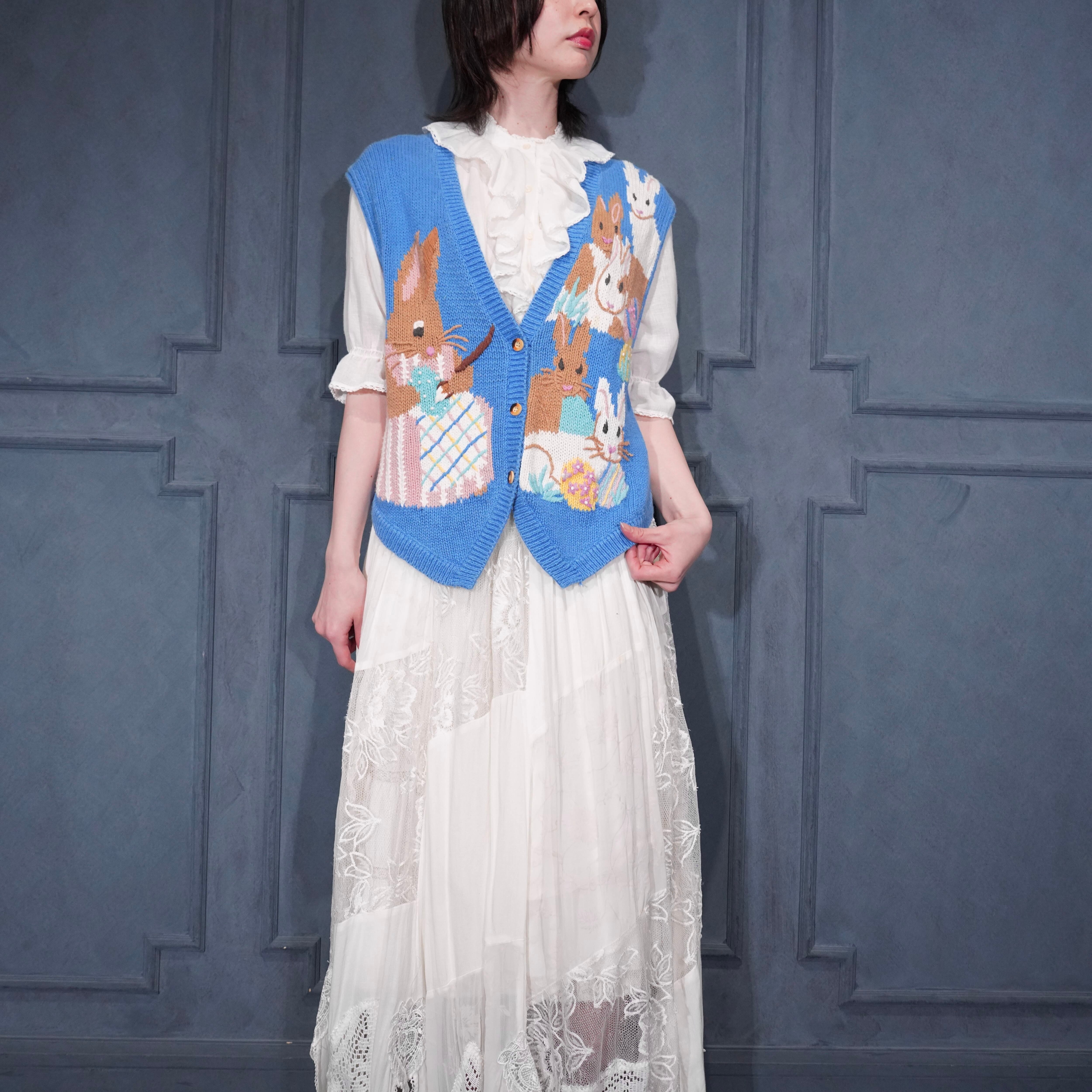 USA VINTAGE Shanon young RABBIT DESIGN COTTON RAMIE KNIT VEST/アメリカ古着うさぎデザインコットンラミーニットベスト