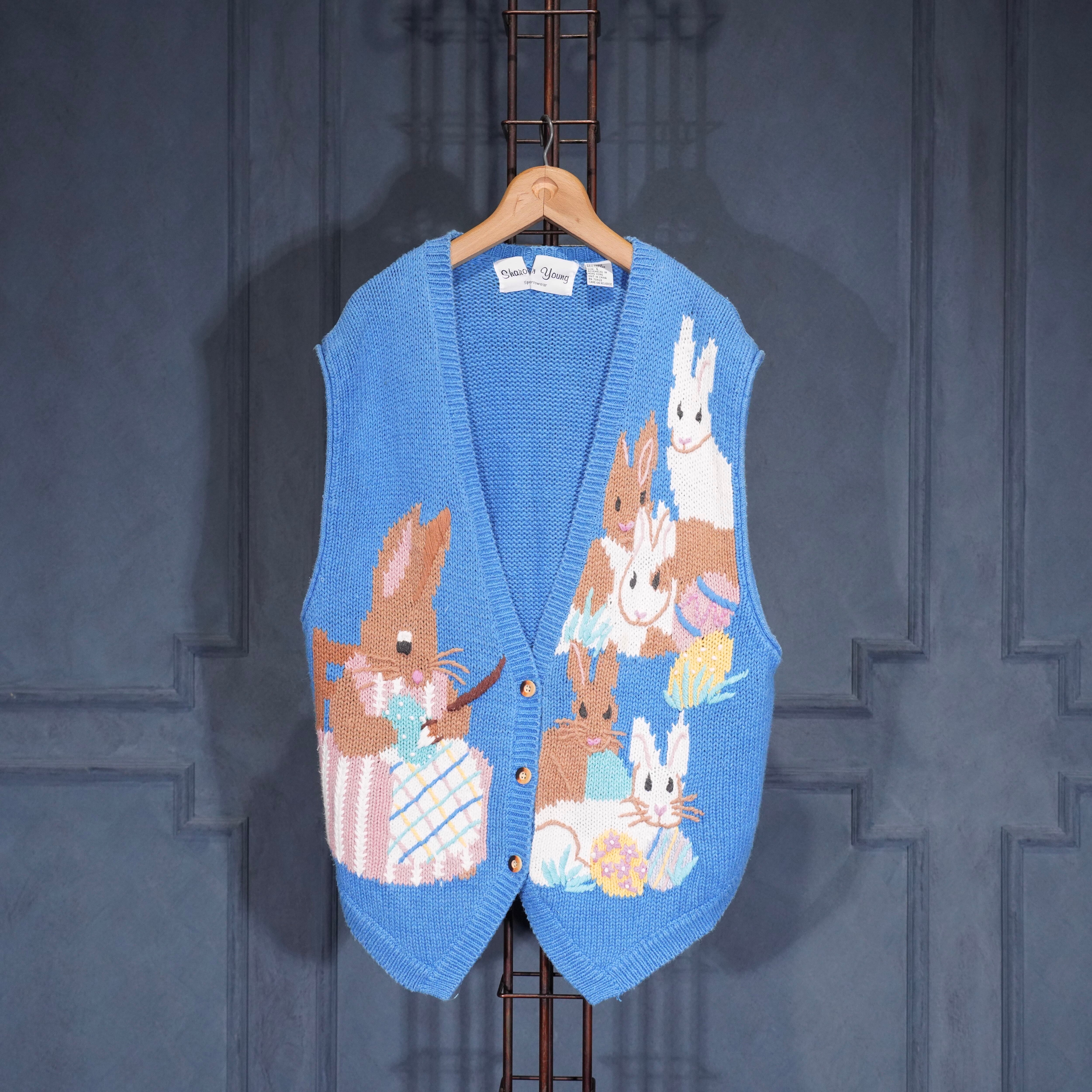 お客様専用ぺージ USA VINTAGE Shanon young RABBIT DESIGN COTTON RAMIE KNIT VEST/アメリカ古着うさぎデザインコットンラミーニットベスト
