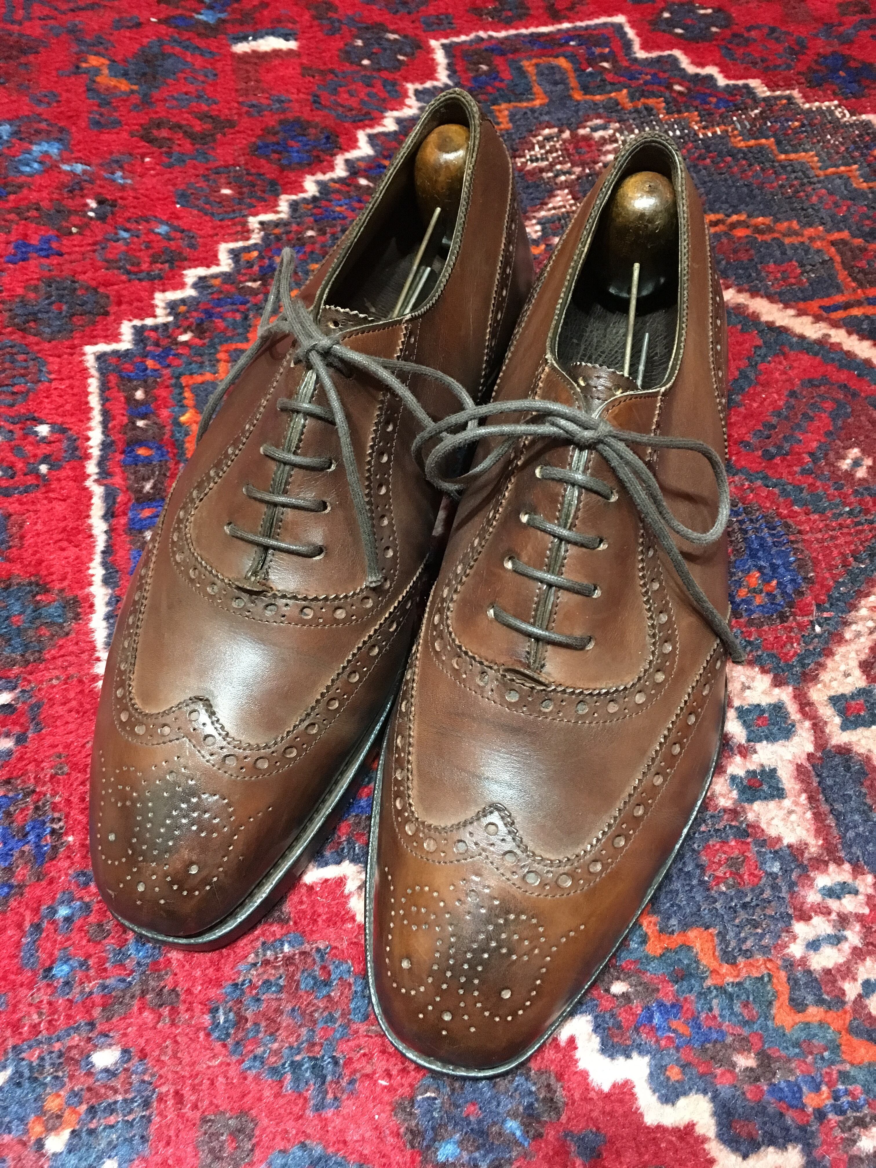 人気のイギリスのブランドEDWARD GREEN。トラッド感の溢れるメダリオンが素敵なペア。またこちらはボックスロゴのオールドモデル。オールドでもこれからのメンテナンス次第で長く活躍します。