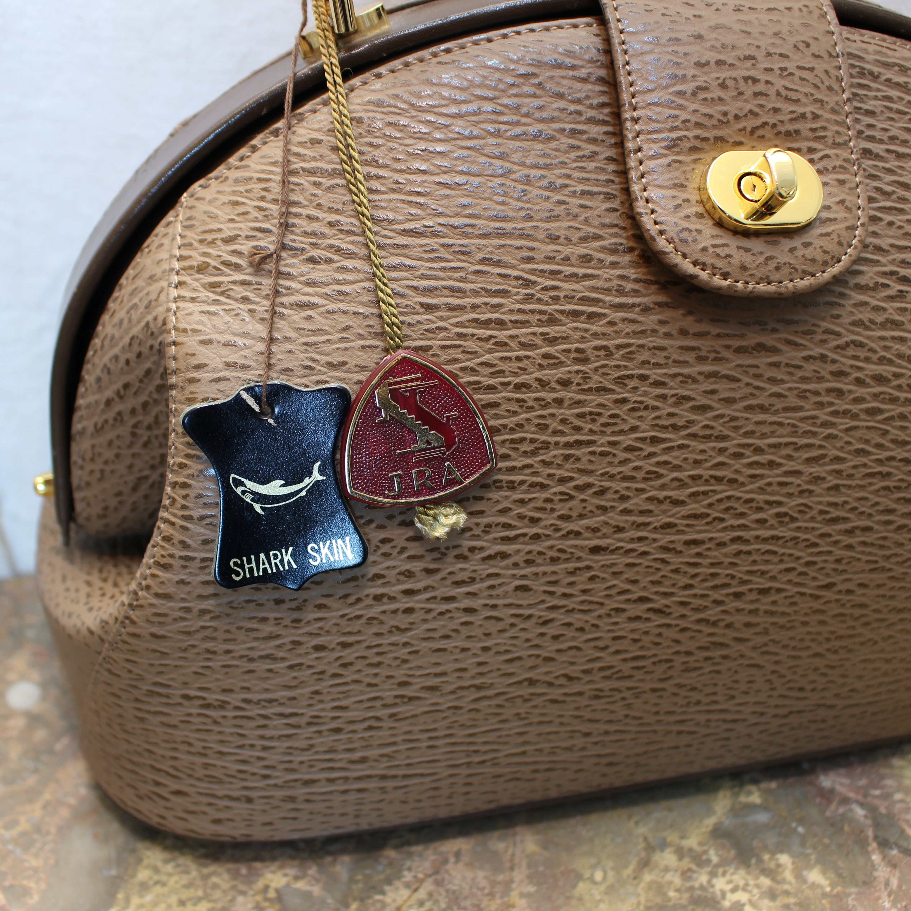 安心のJRAマークがついたエキゾチックレザー、サメ革のバッグ。
