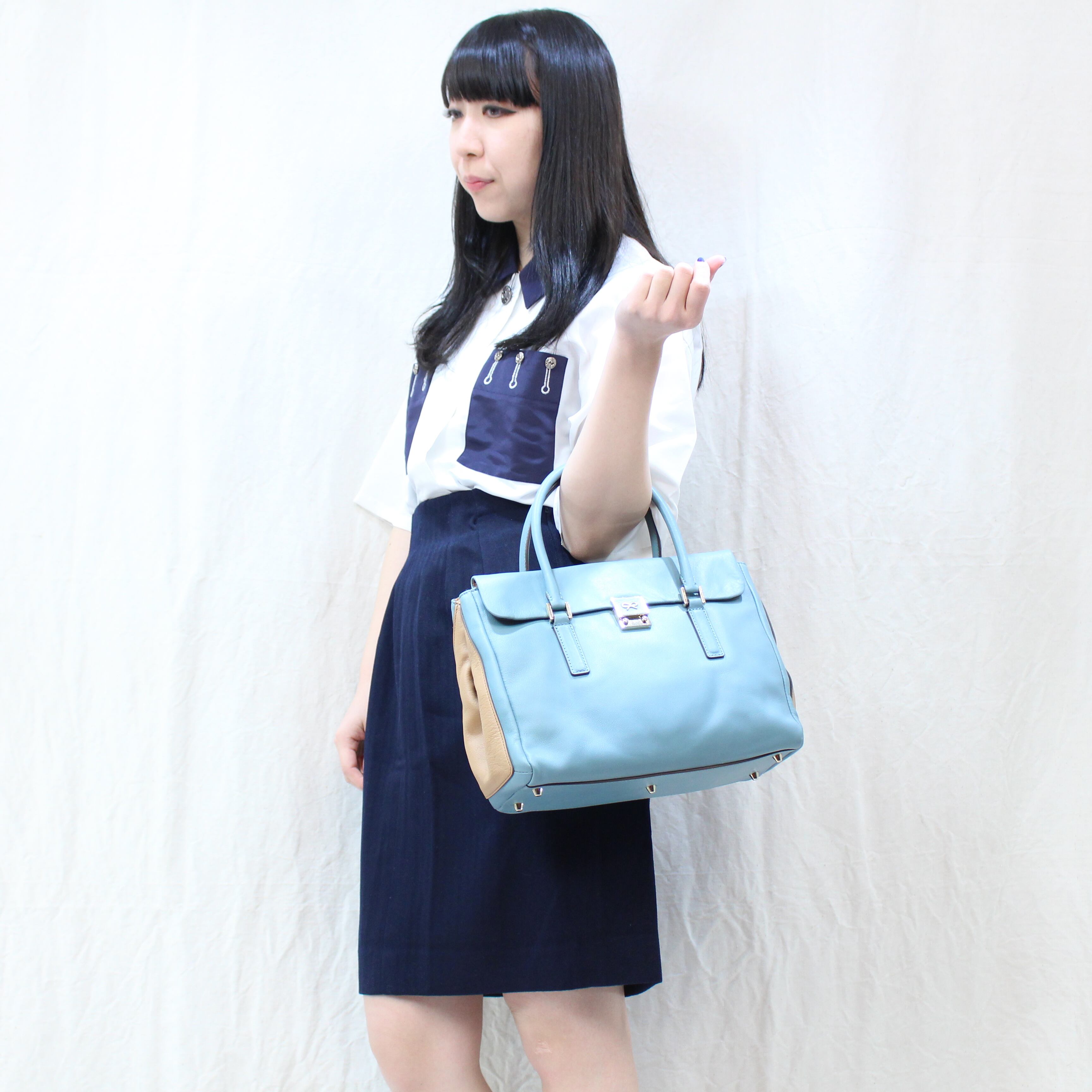 .2000000004099 ANYA HINDMARCH BICOLOR LEATHER HAND BAG/アニヤハインドマーチバイカラーレザーハンドバッグ