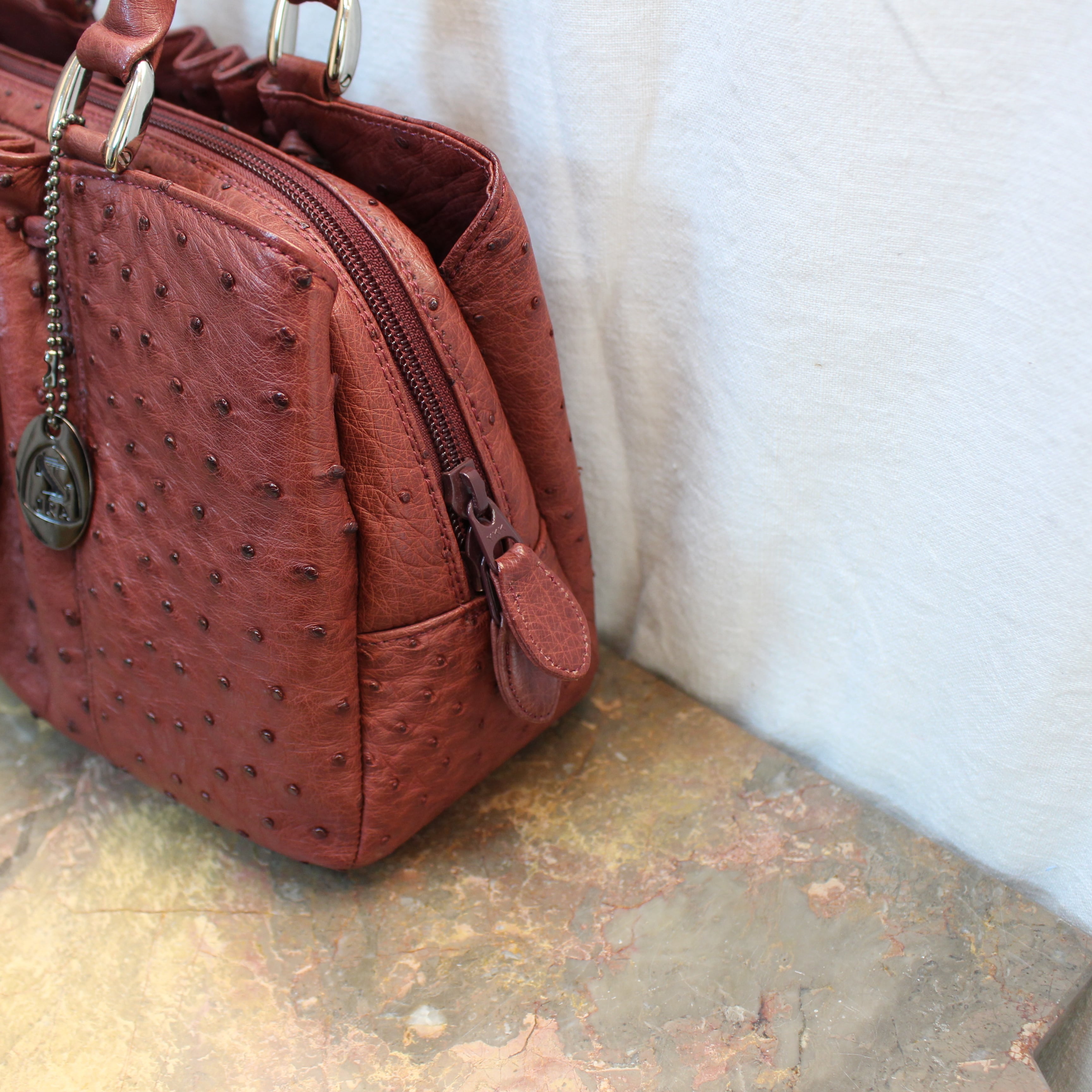JRA MARC OSTRICH LEATHER HAND BAG MADE IN JAPAN/JRAマーク付オーストリッチレザーハンドバッグ