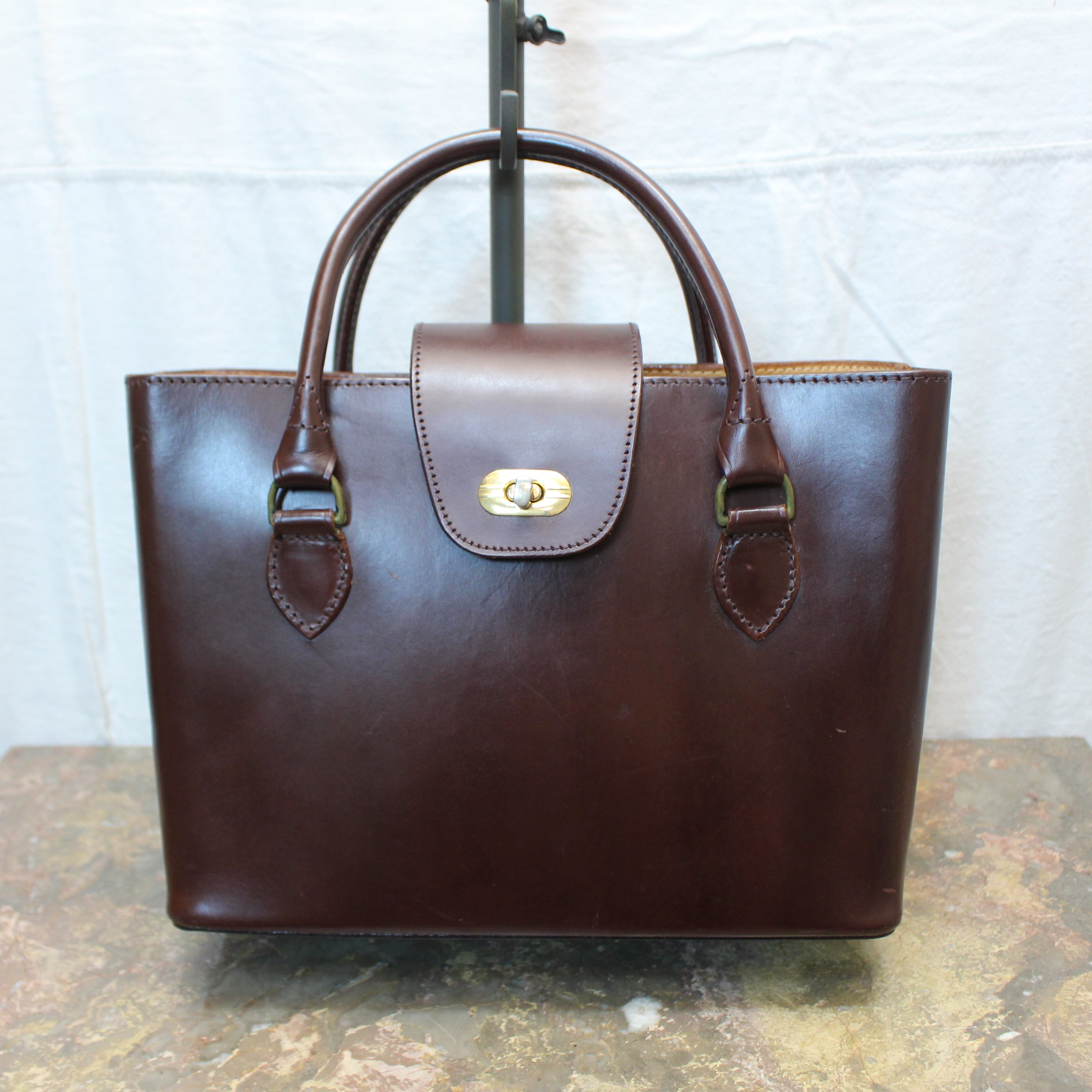 J&M DAVIDSON TURN LOCK BRIDLE LEATHER HAND BAG MADE IN ENGLAND/ジェイアンドエムダヴィッドソンターンロックブライドルレザーハンドバッグ