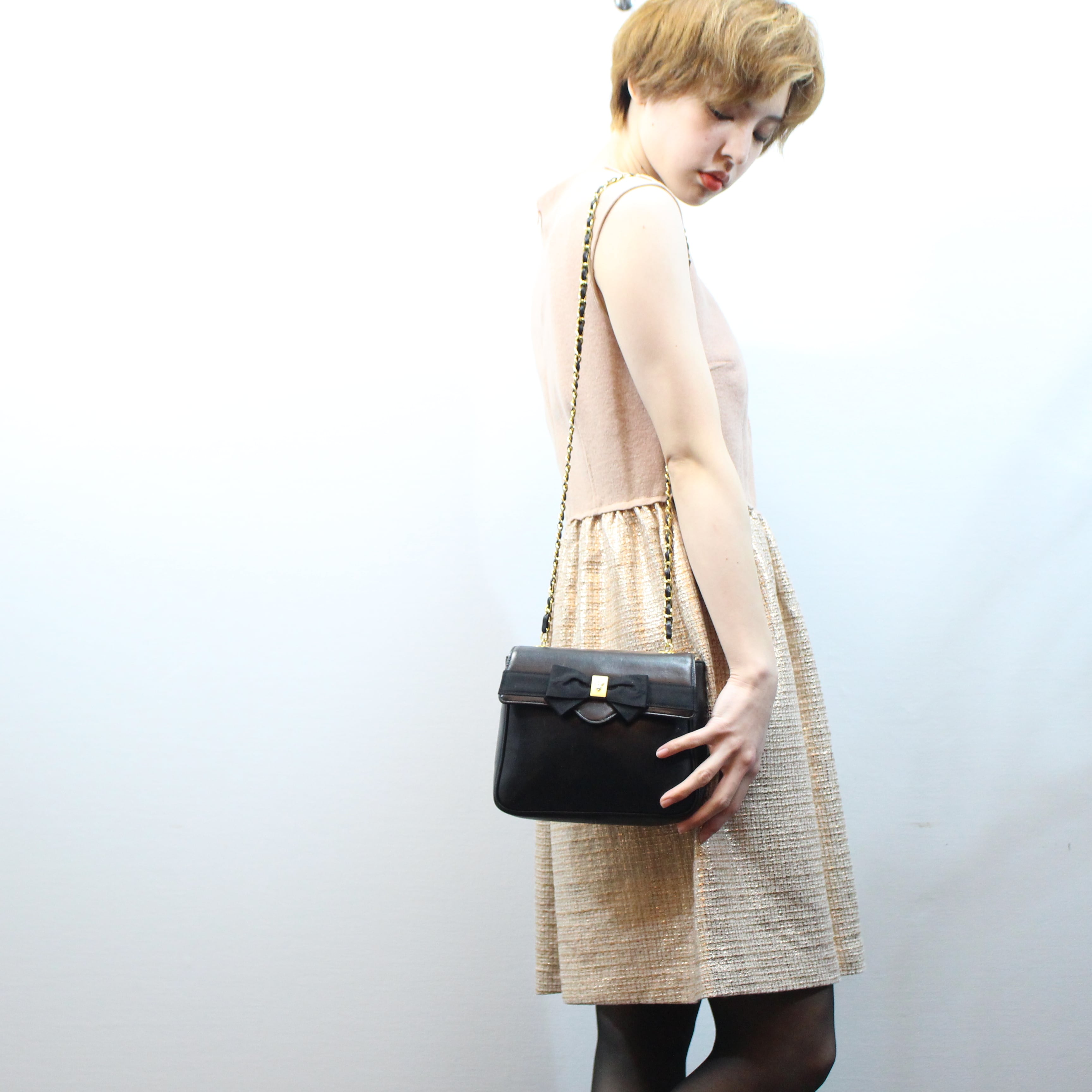 人気ブランドKIMIJIMA。フロントのリボンとロゴがポイント。フォルムの可愛いバッグです。