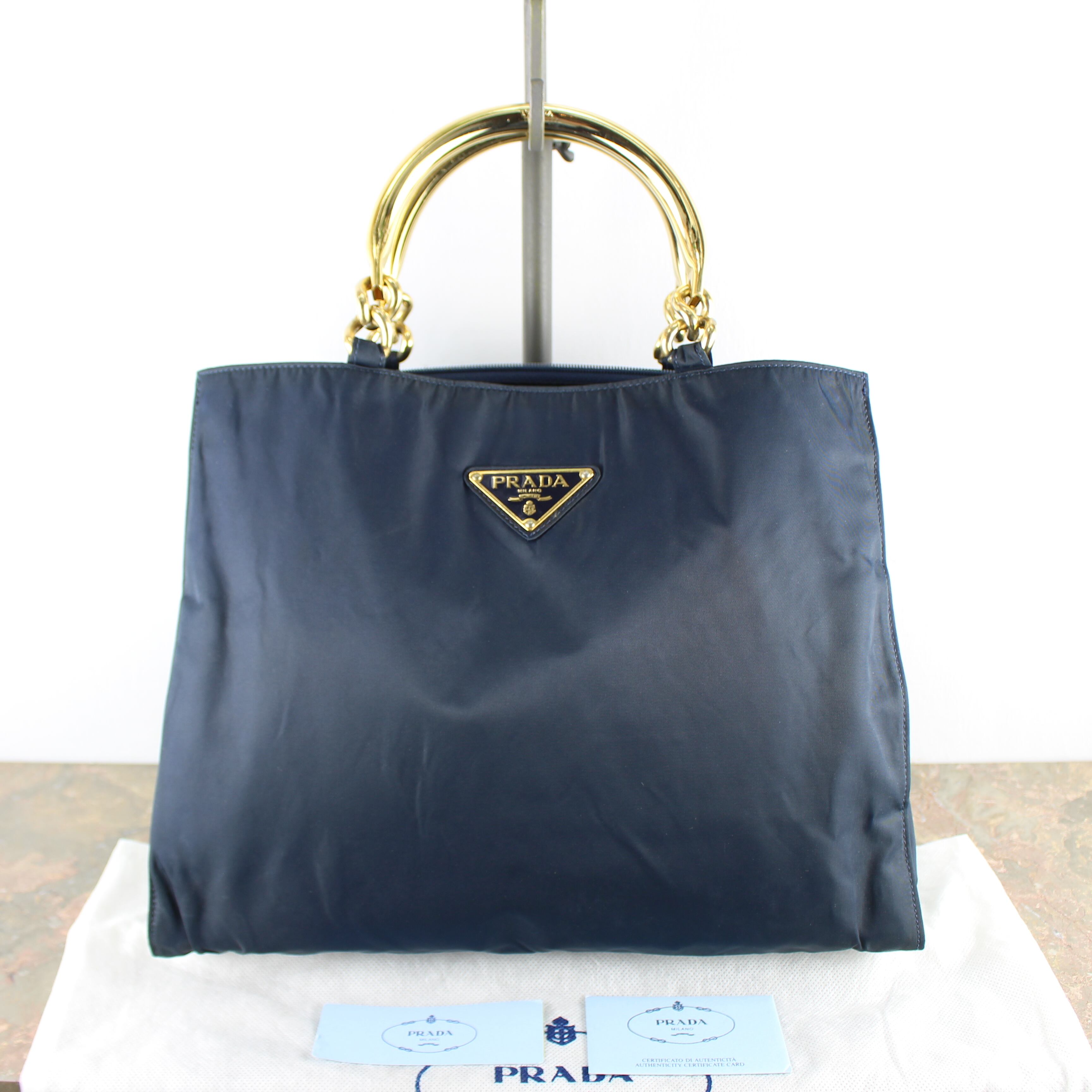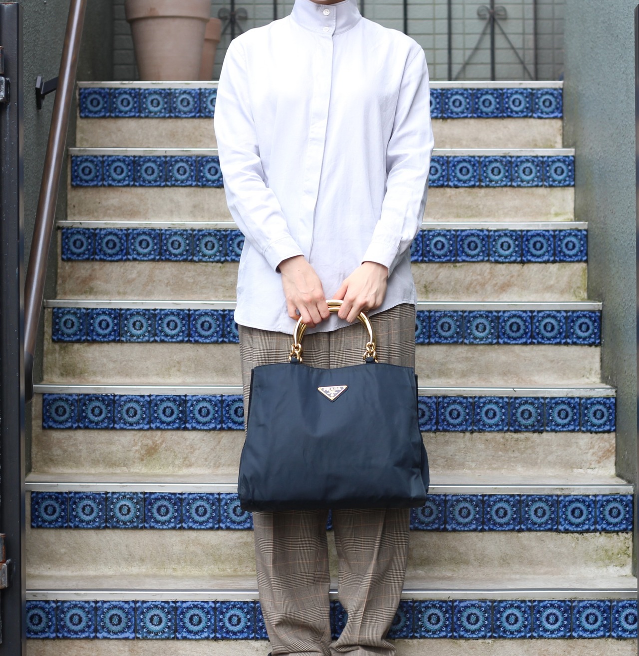 PRADA METAL HANDLE LOGO NYLON HAND BAG MADE IN ITALY/プラダメタルハンドルロゴナイロンハンドバッグ