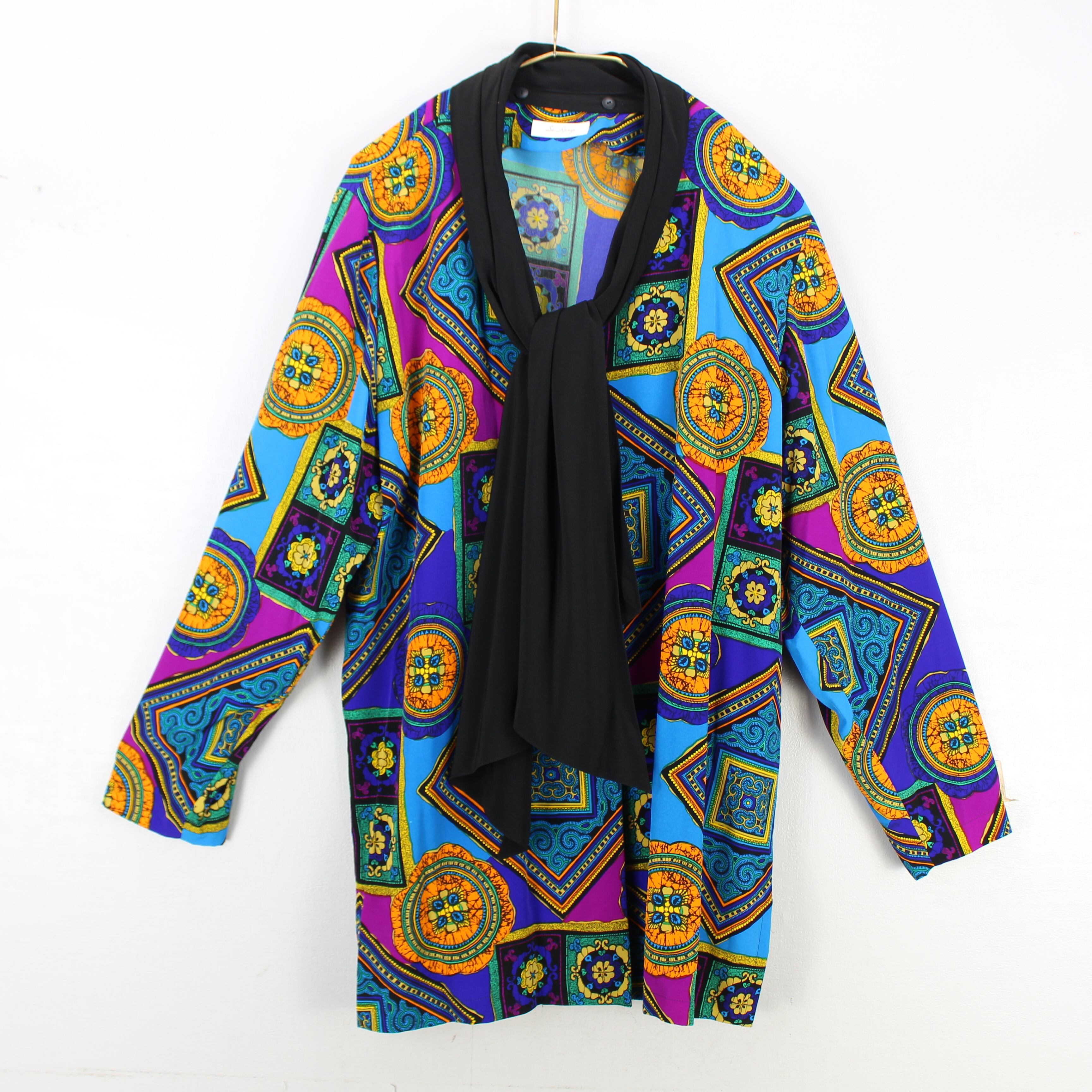 *SALE* RETRO VINTAGE BIJOU BUTTON RIBBON TIE BLOUSE/レトロ古着ビジューボタンリボンタイブラウス
