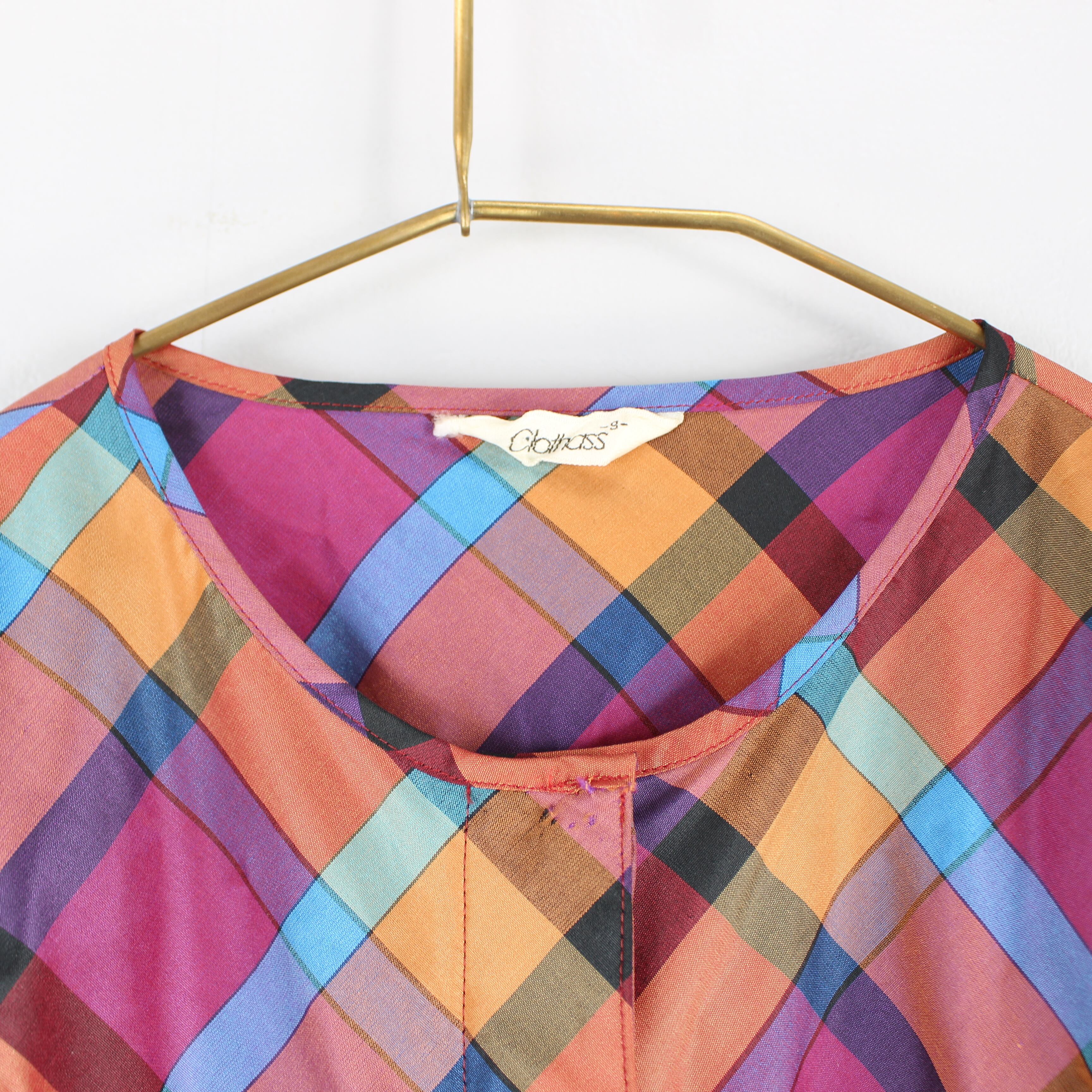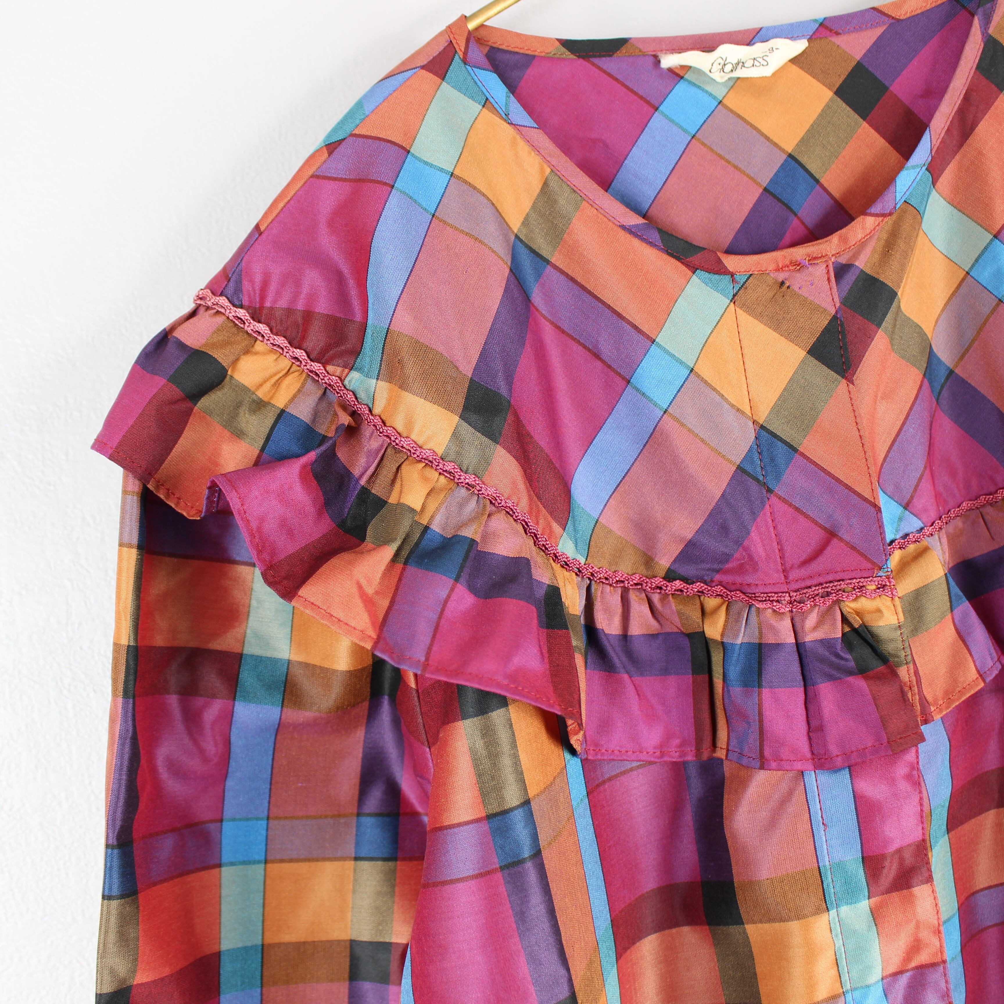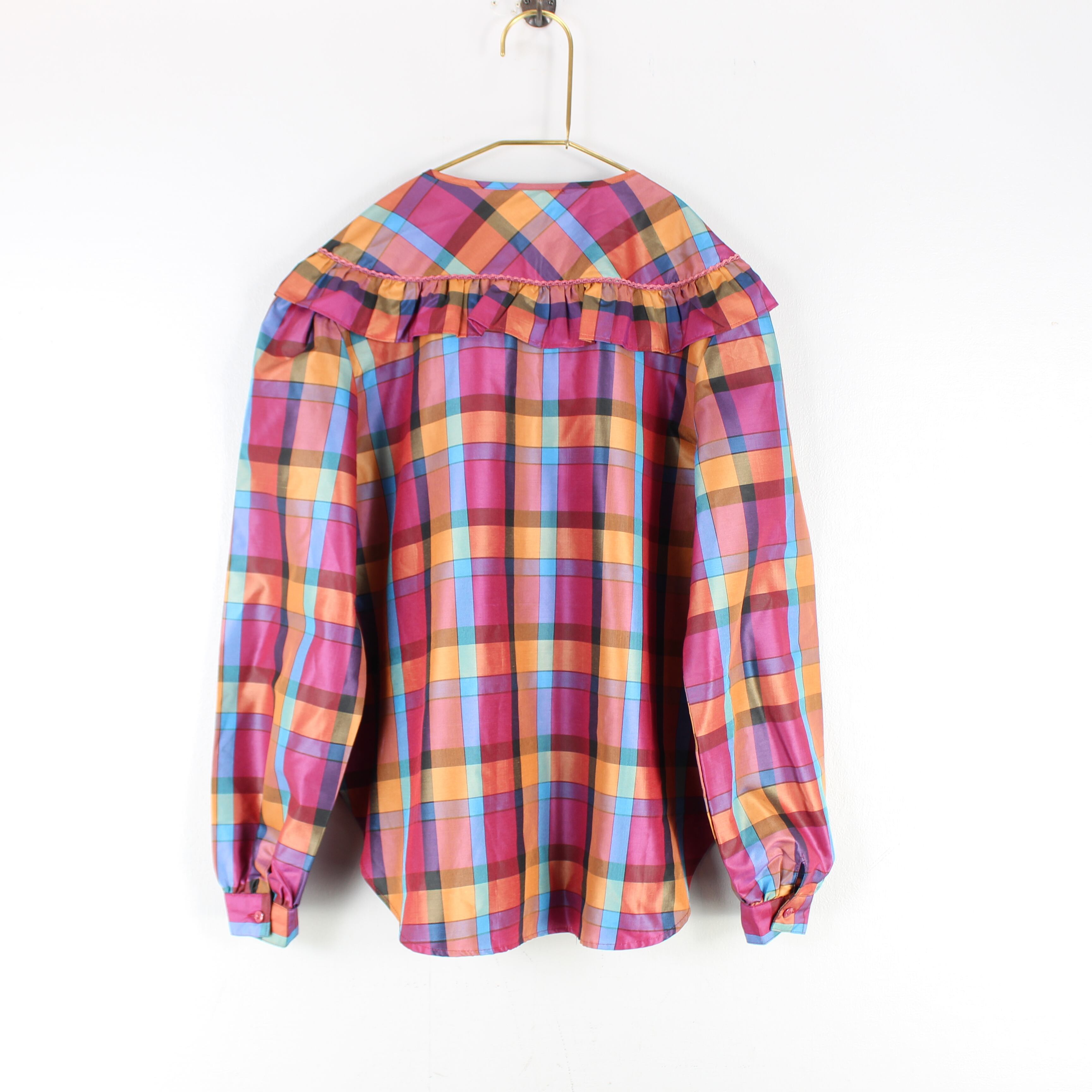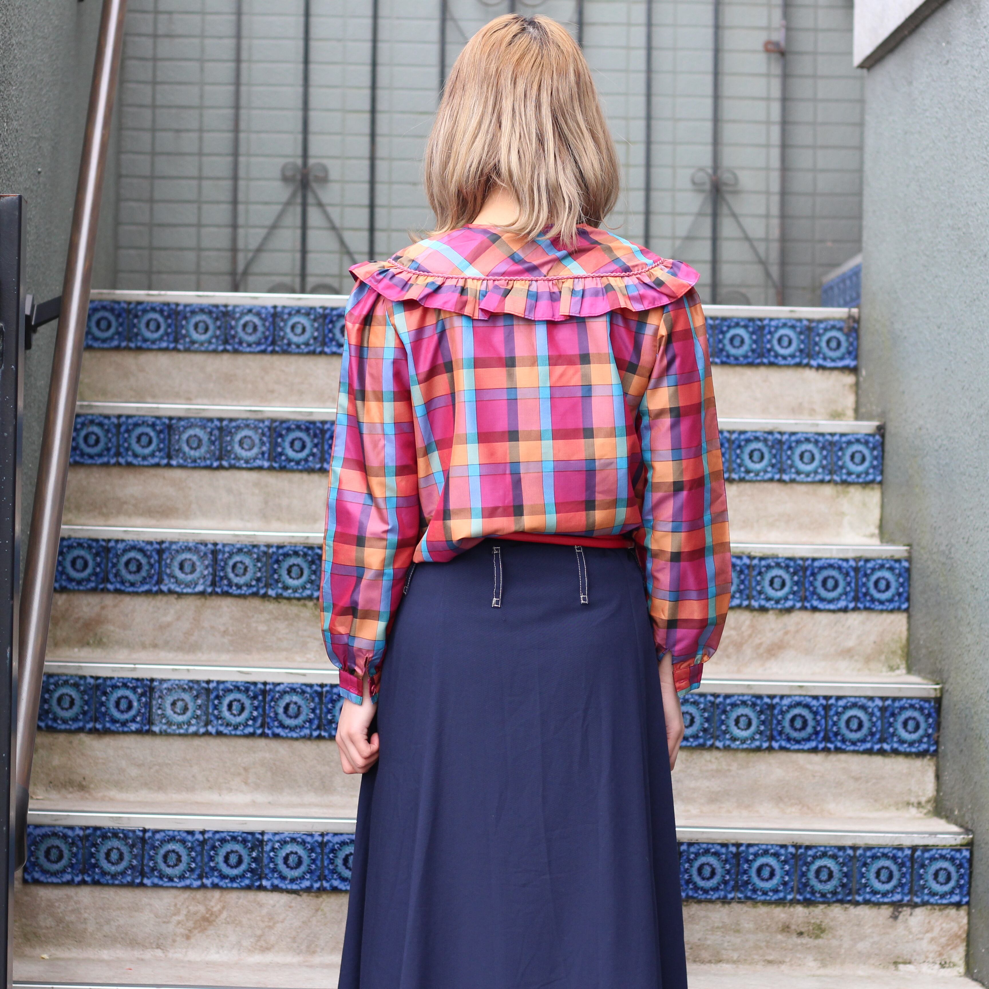 *SALE* RETRO VINTAGE CHECK PATTERNED FRILL DESIGN LONG SLEEVE BLOUSE/レトロ古着チェック柄フリルデザイン長袖ブラウス