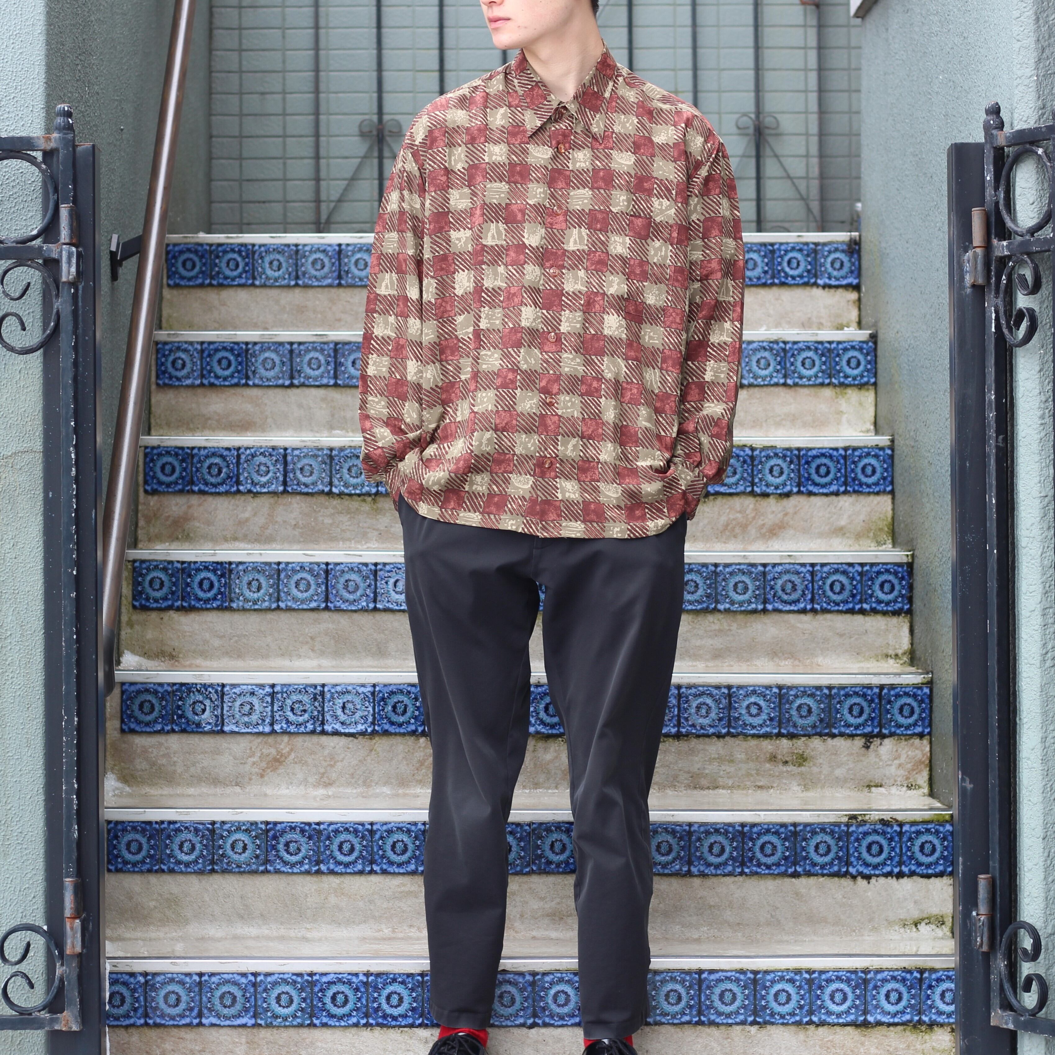 RETRO VINTAGE CHECK PATTERNED LONG SLEEVE SHIRT/レトロ古着チェック柄長袖シャツ