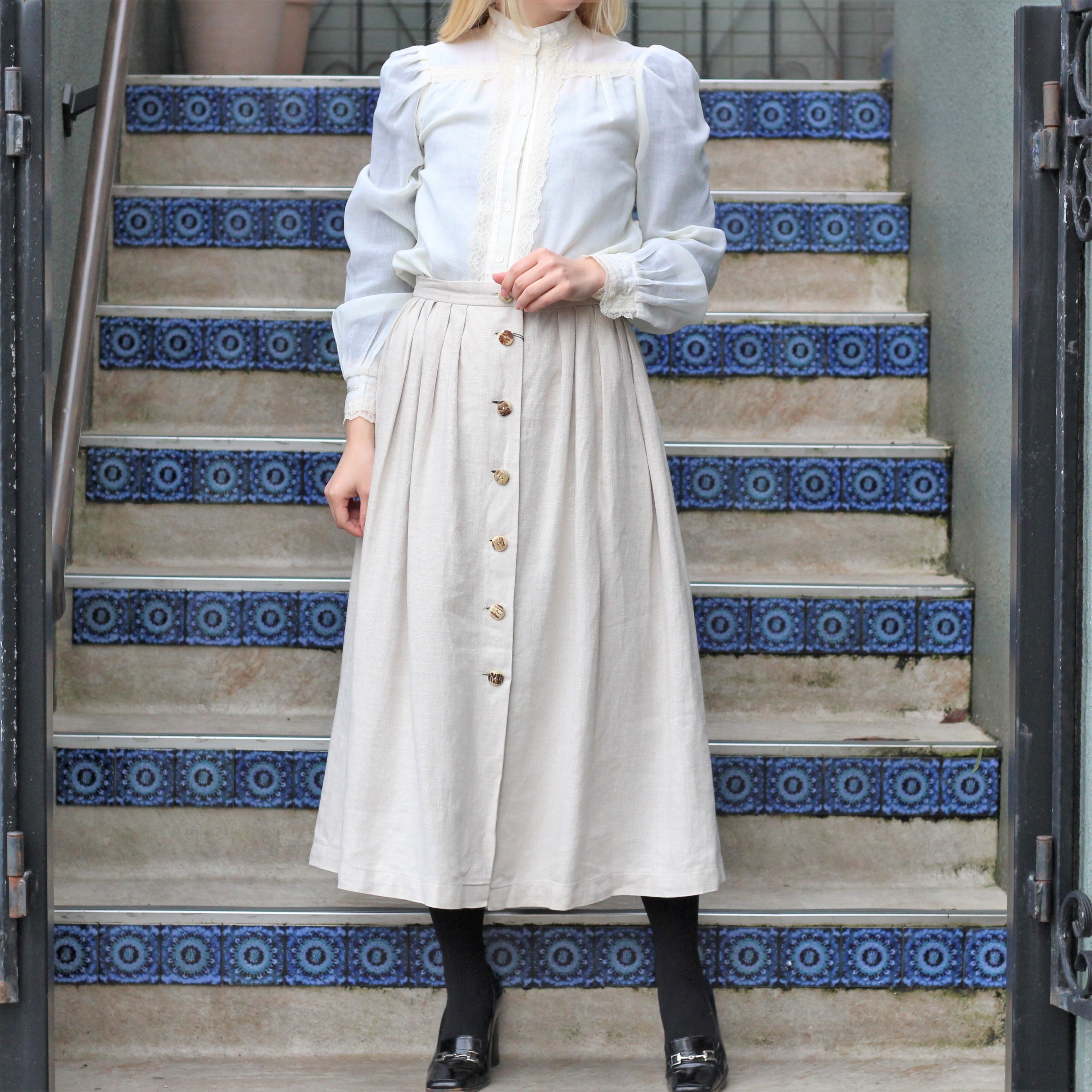 *SALE* *SPECIAL ITEM* EU VINTAGE FRONT BUTTON DESIGN LINEN TYROLEAN SKIRT/ヨーロッパ古着フリルデザインリネンチロリアンスカート