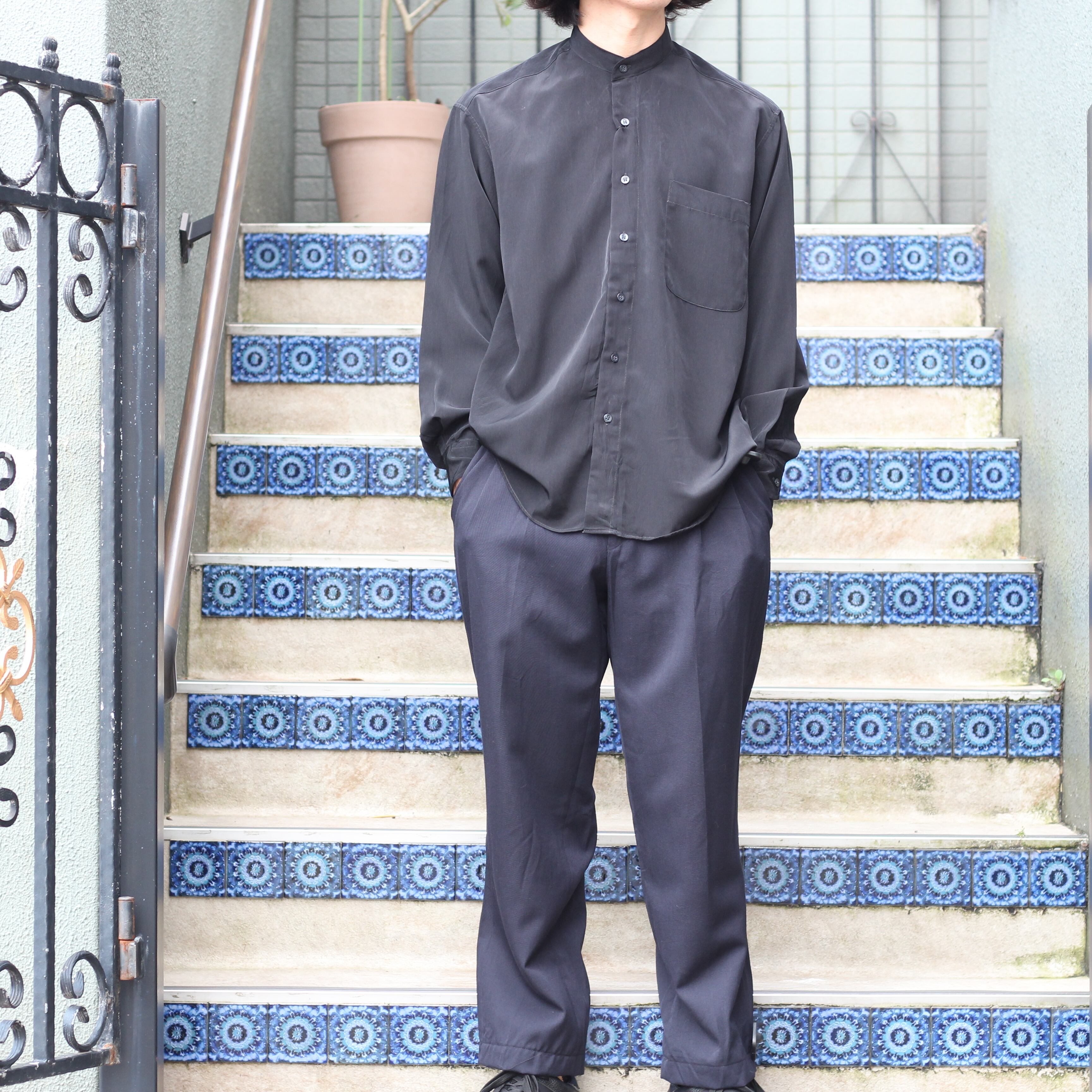 RETRO VINTAGE BAND COLLAR DESIGN SHIRT/レトロ古着バンドカラーデザインシャツ