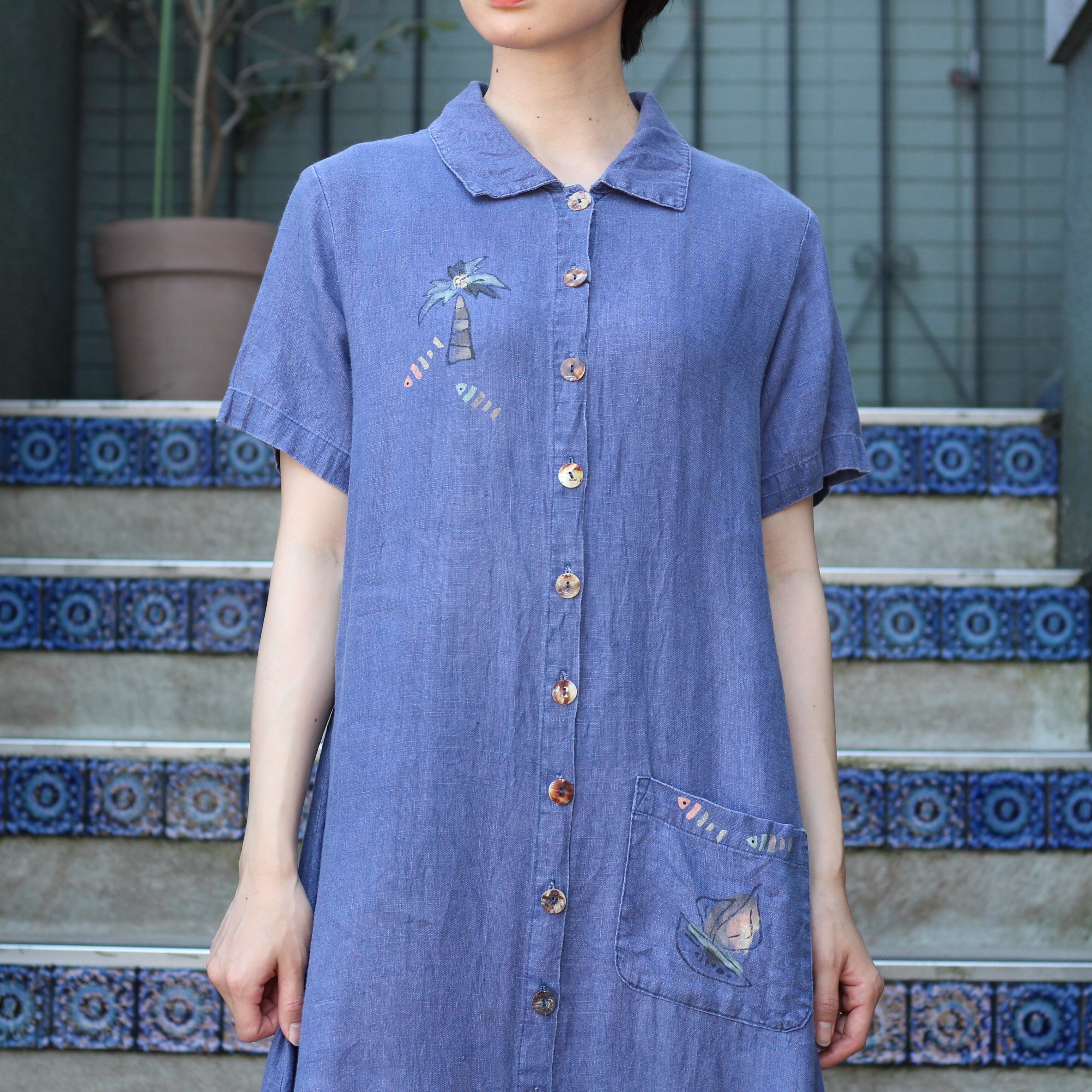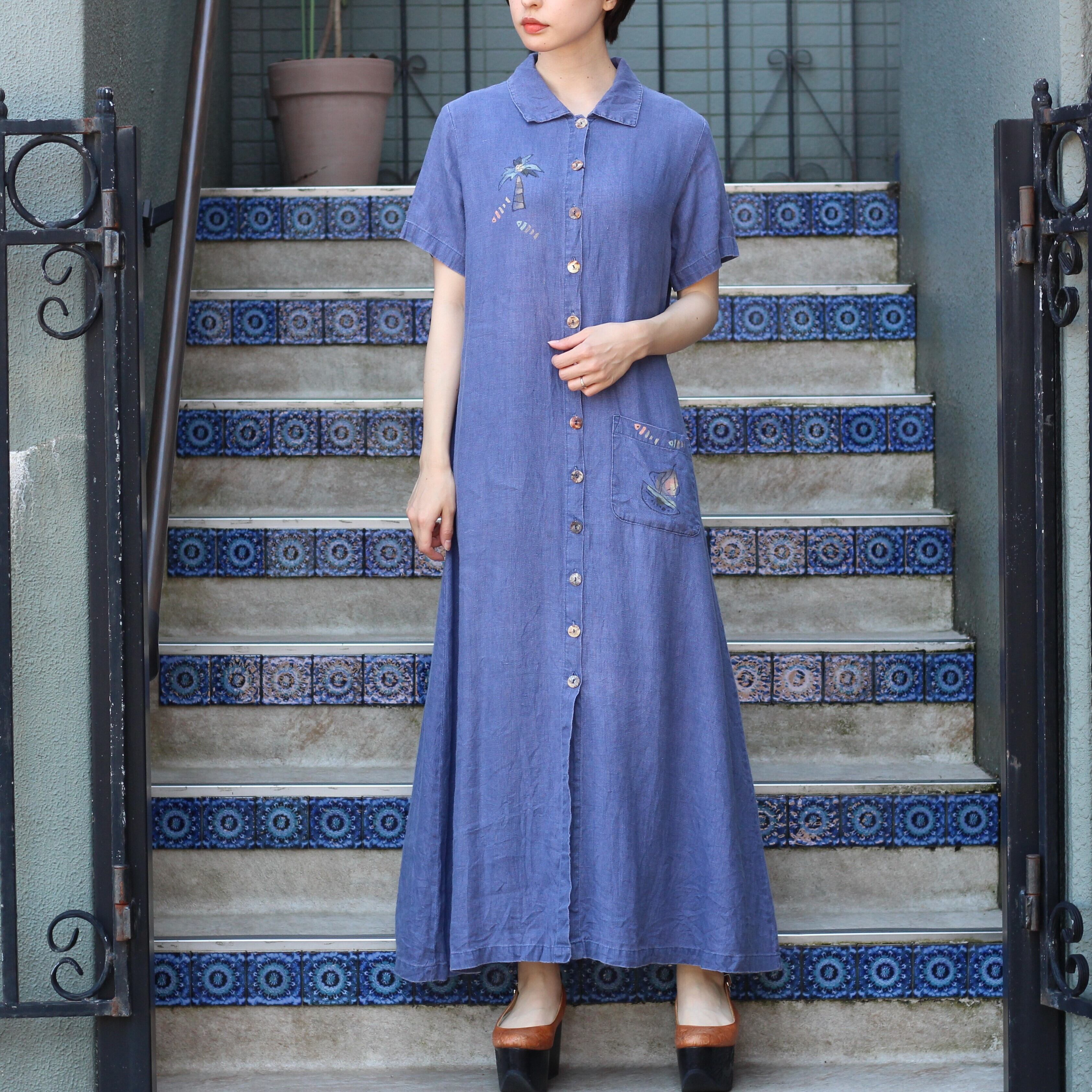 USA VINTAGE EMBROIDERY DESIGN LINEN LONG ONE PIECE/アメリカ古着刺繍デザインリネンロングワンピース