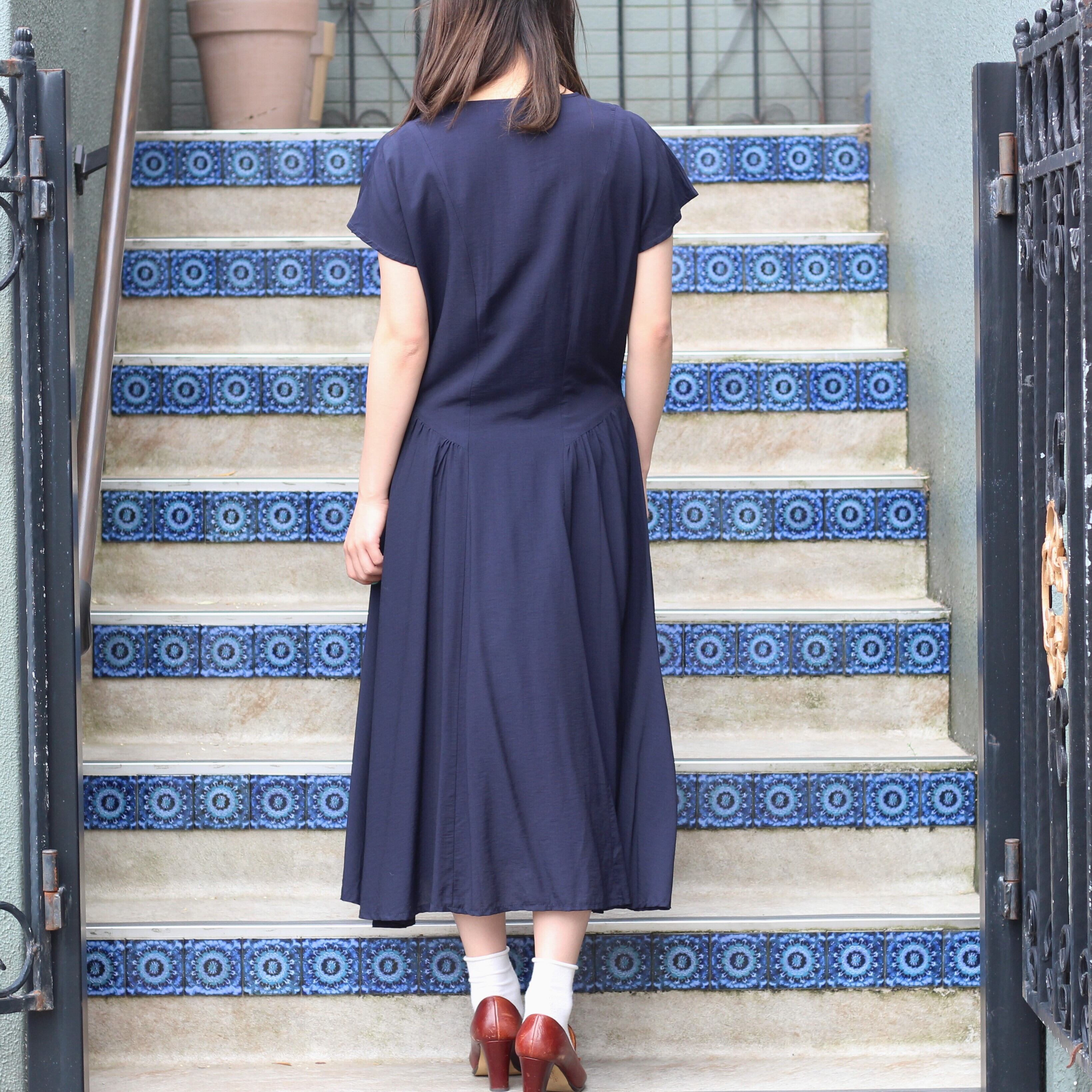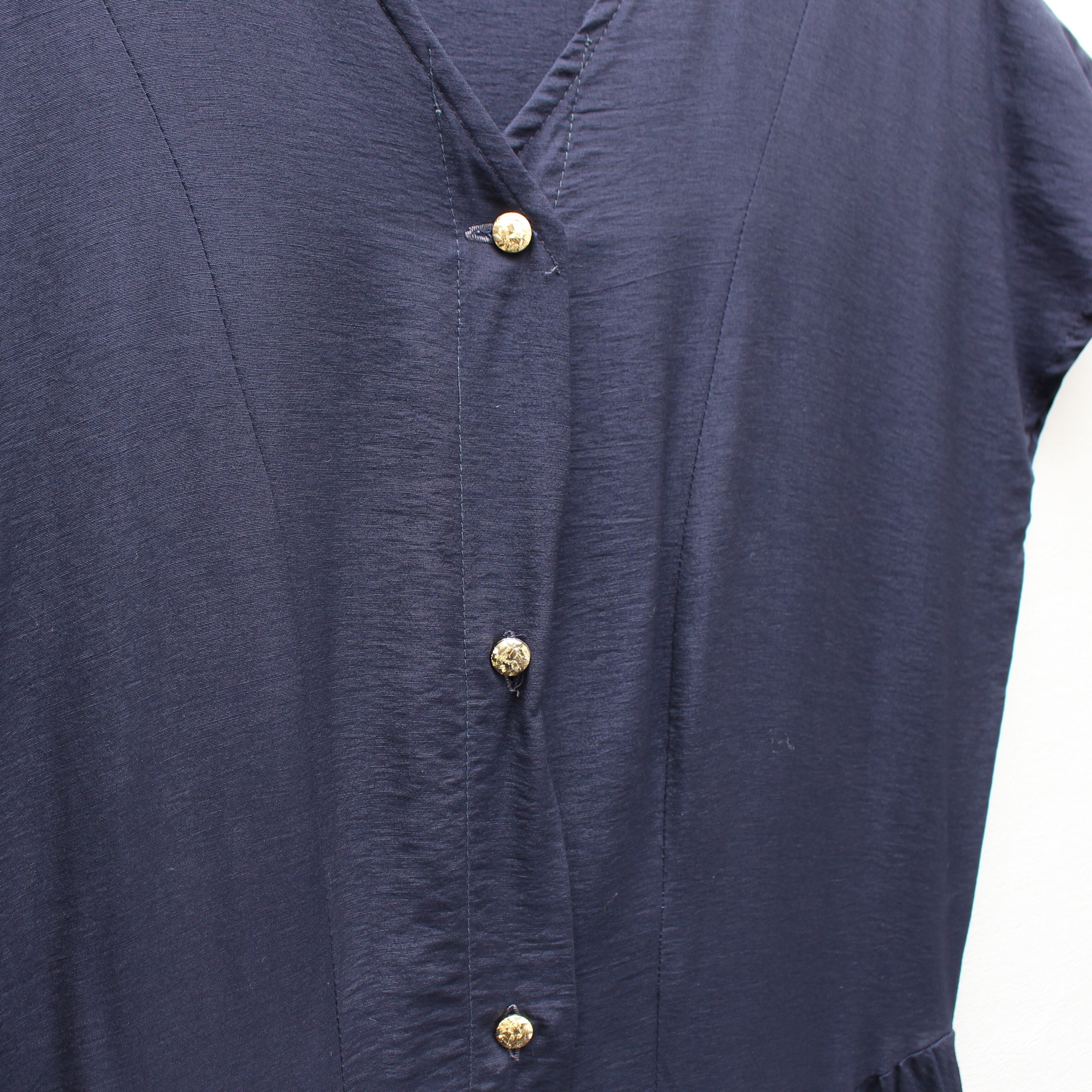 RETRO VINTAGE HALF SLEEVE GOLD BUTTON DESIGN ONE PIECE/レトロ古着半袖金ボタンデザインワンピース