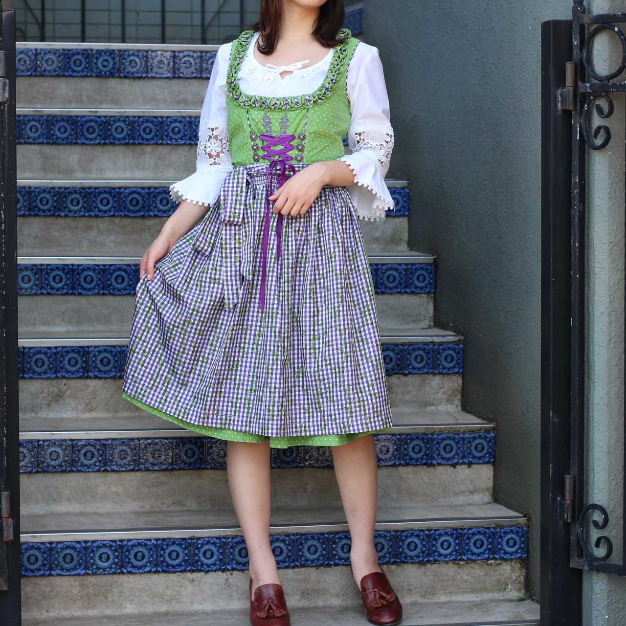 *SPECIAL ITEM* EU VINTAGE LACE UP DIRNDL DESIGN TYROLEAN ONE PIECE/ヨーロッパ古着レースアップディアンドルデザインチロリアンワンピース