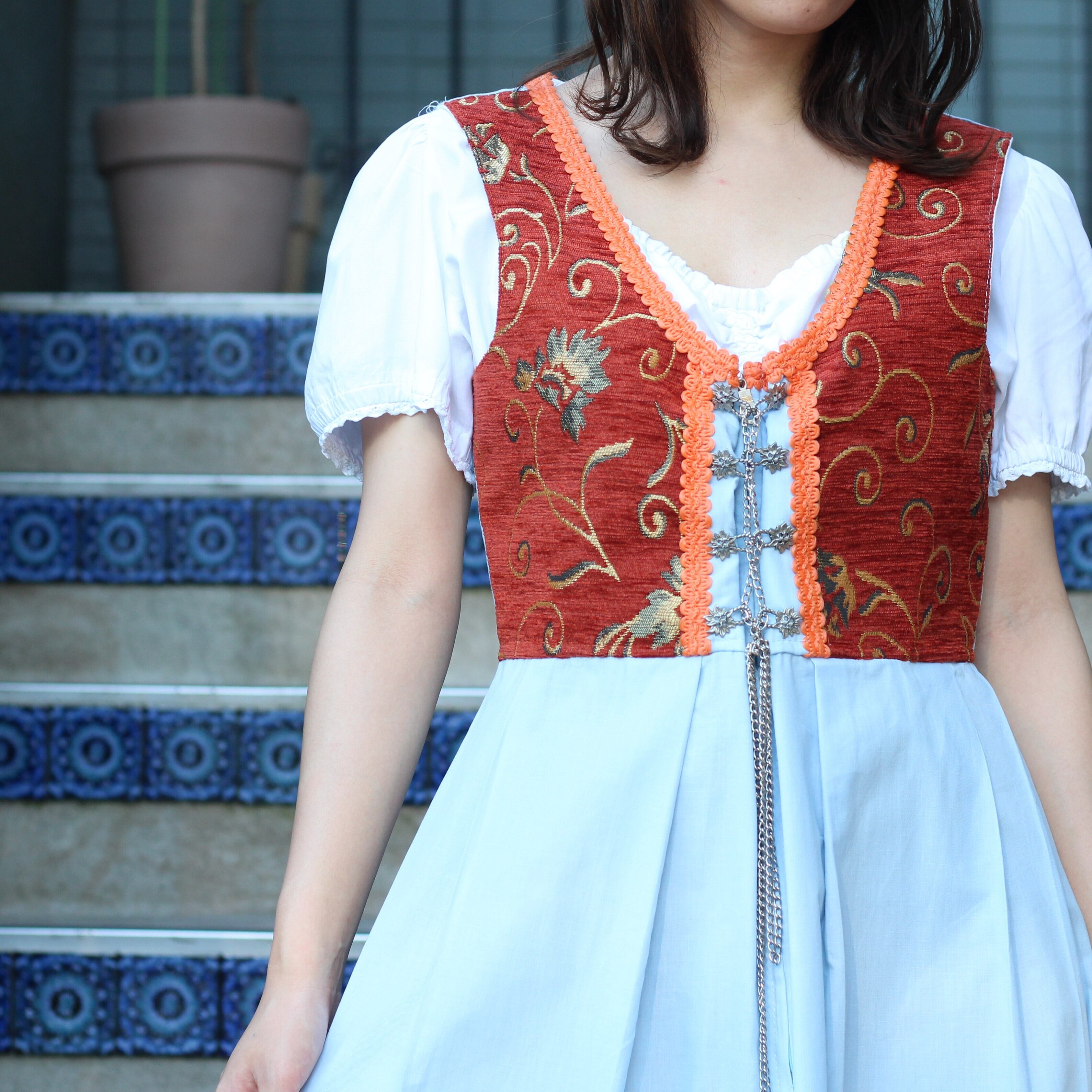 *SALE* *SPECIAL ITEM* EU VINTAGE LACE UP DIRNDL DESIGN TYROLEAN ONE PIECE/ヨーロッパ古着レースアップディアンドルデザインチロリアンワンピース
