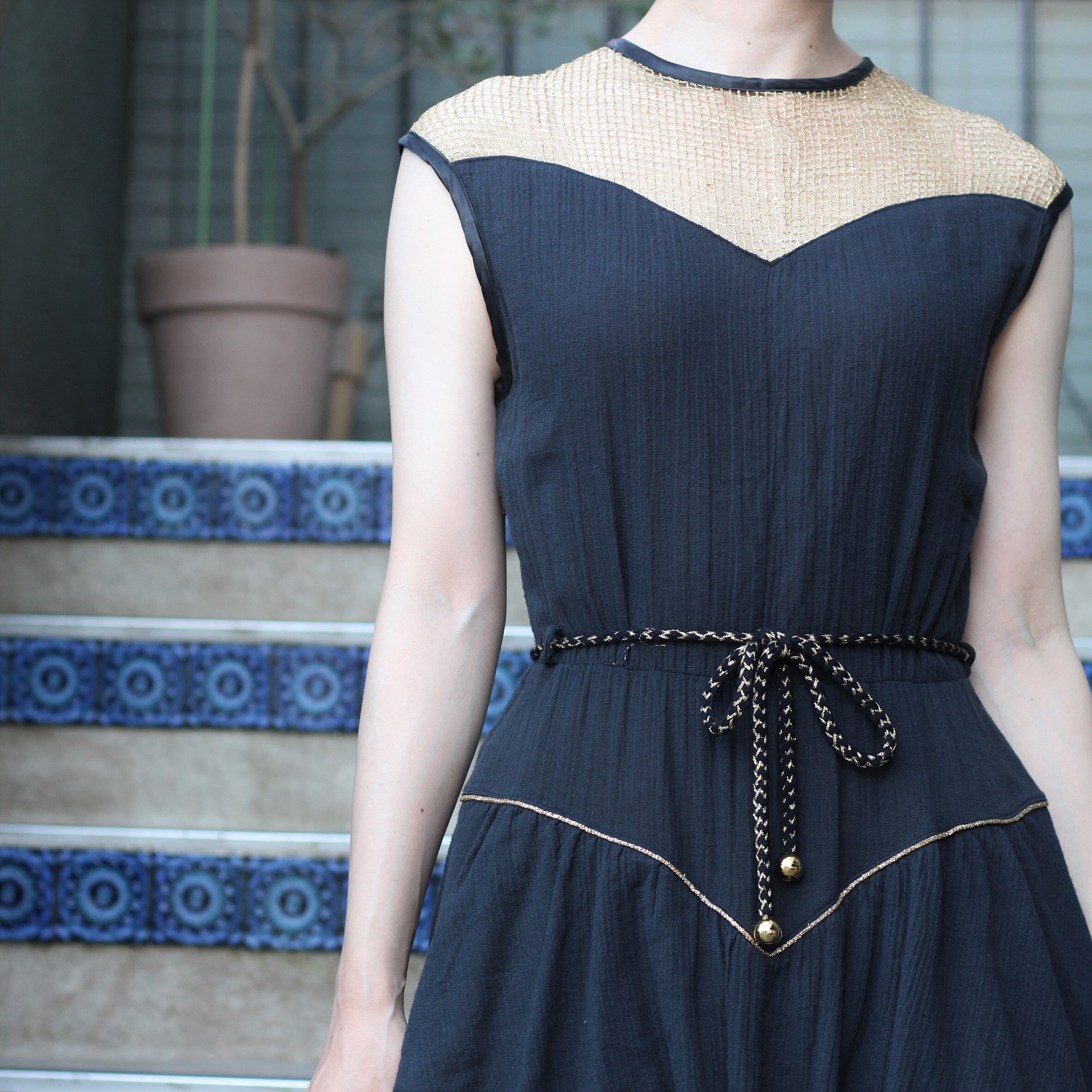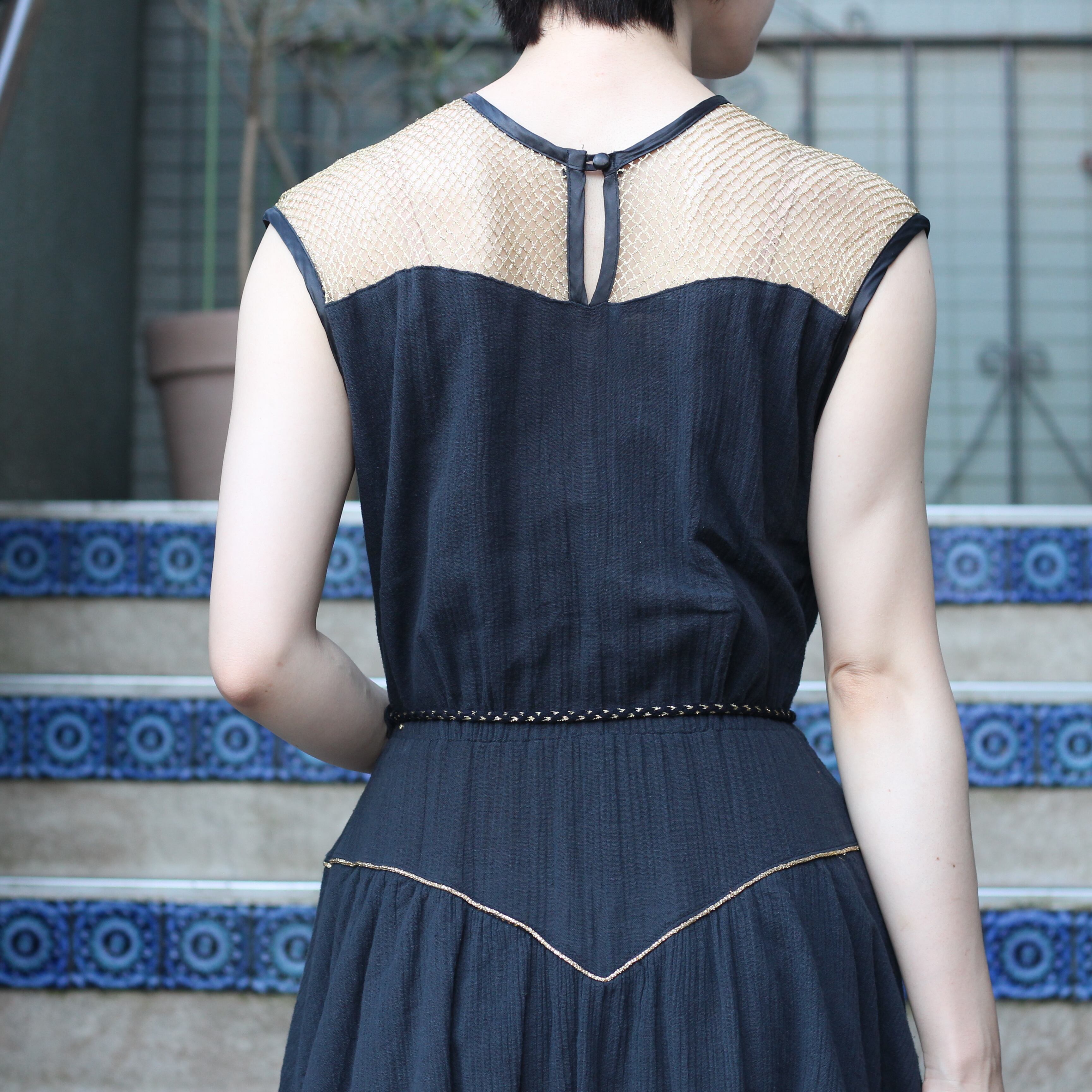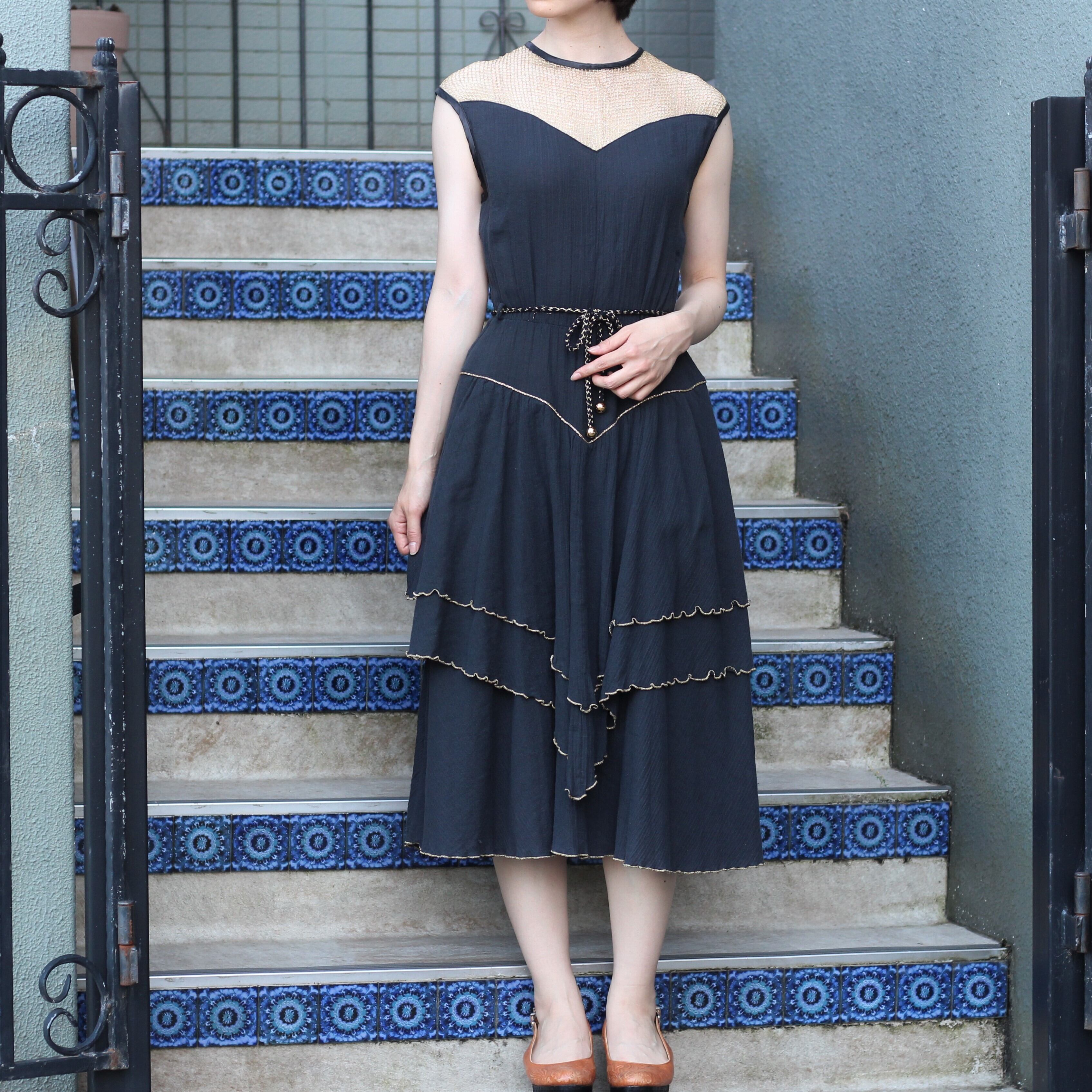 *SALE* EU VINTAGE LACE DRAPE DESIGN NO SLEEVE ONE PIECE/ヨーロッパ古着レースドレープデザインノースリーブワンピース