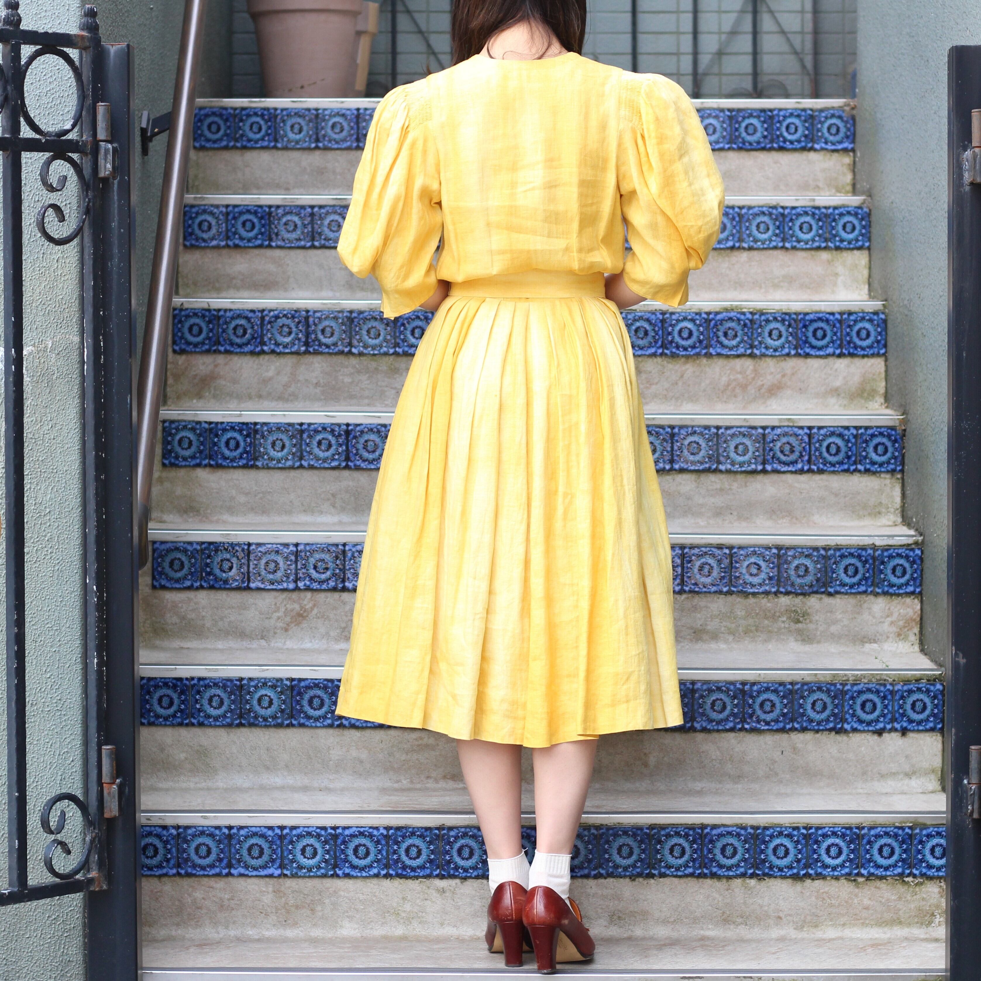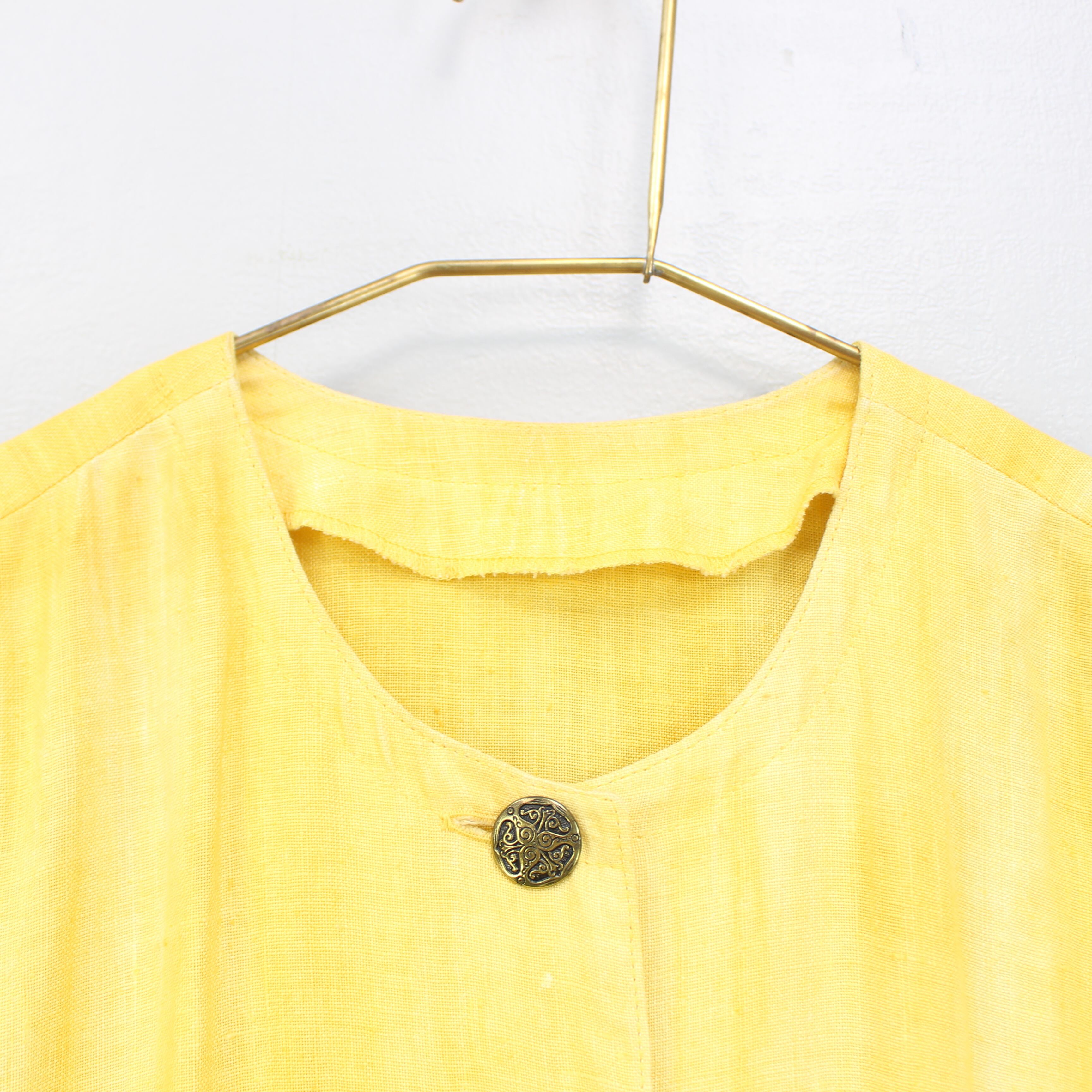 *SPECIAL ITEM* EU VINTAGE METAL BUTTON DESIGN HALF SLEEVE LINEN TYROLEAN ONE PIECE MADE IN AUSTRIA/ヨーロッパ古着メタルボタンデザイン半袖リネンチロリアンワンピース