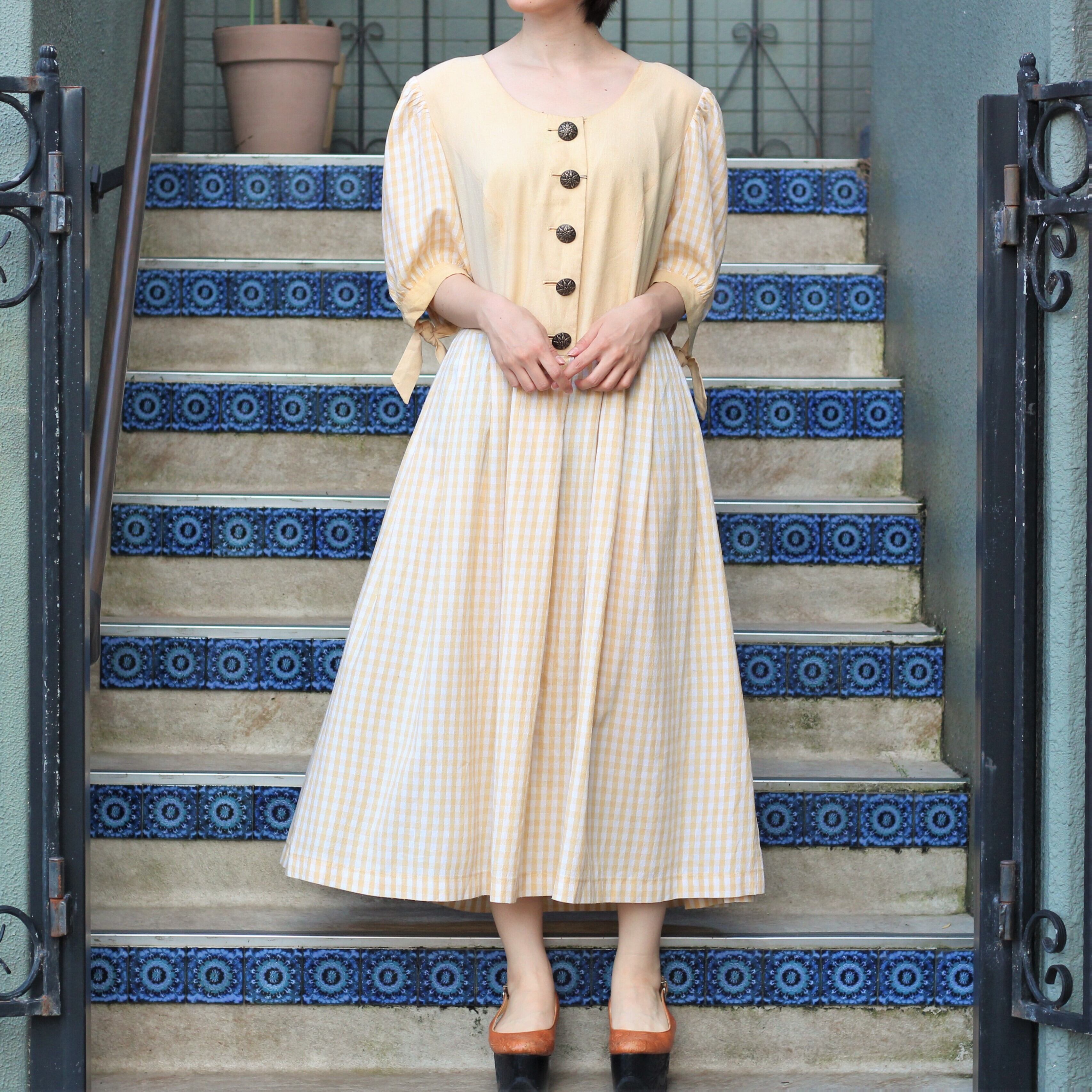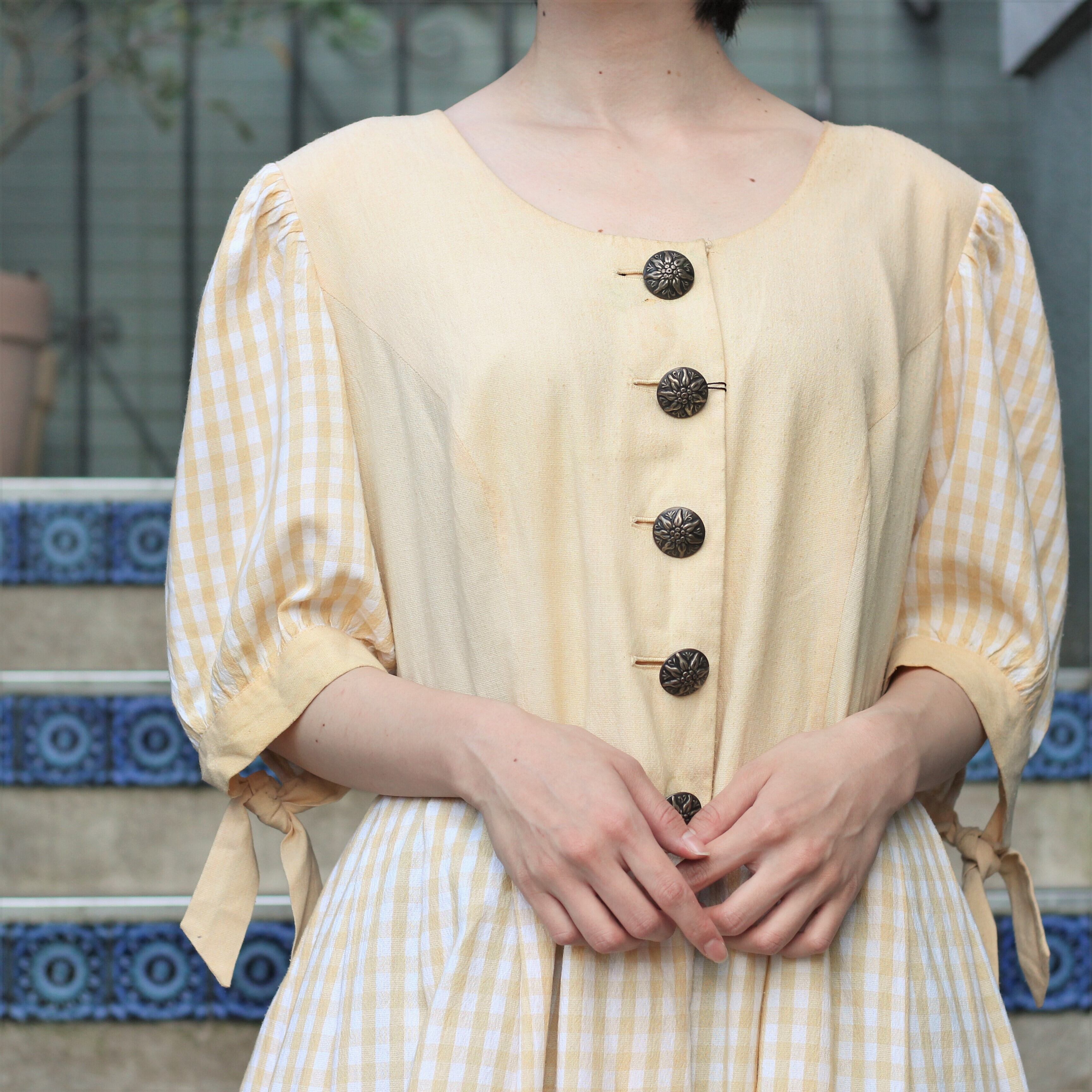 *SPECIAL ITEM* EU VINTAGE METAL BUTTON DESIGN HALF SLEEVE TYROLEAN ONE PIECE/ヨーロッパ古着メタルボタンデザイン半袖チロリアンワンピース