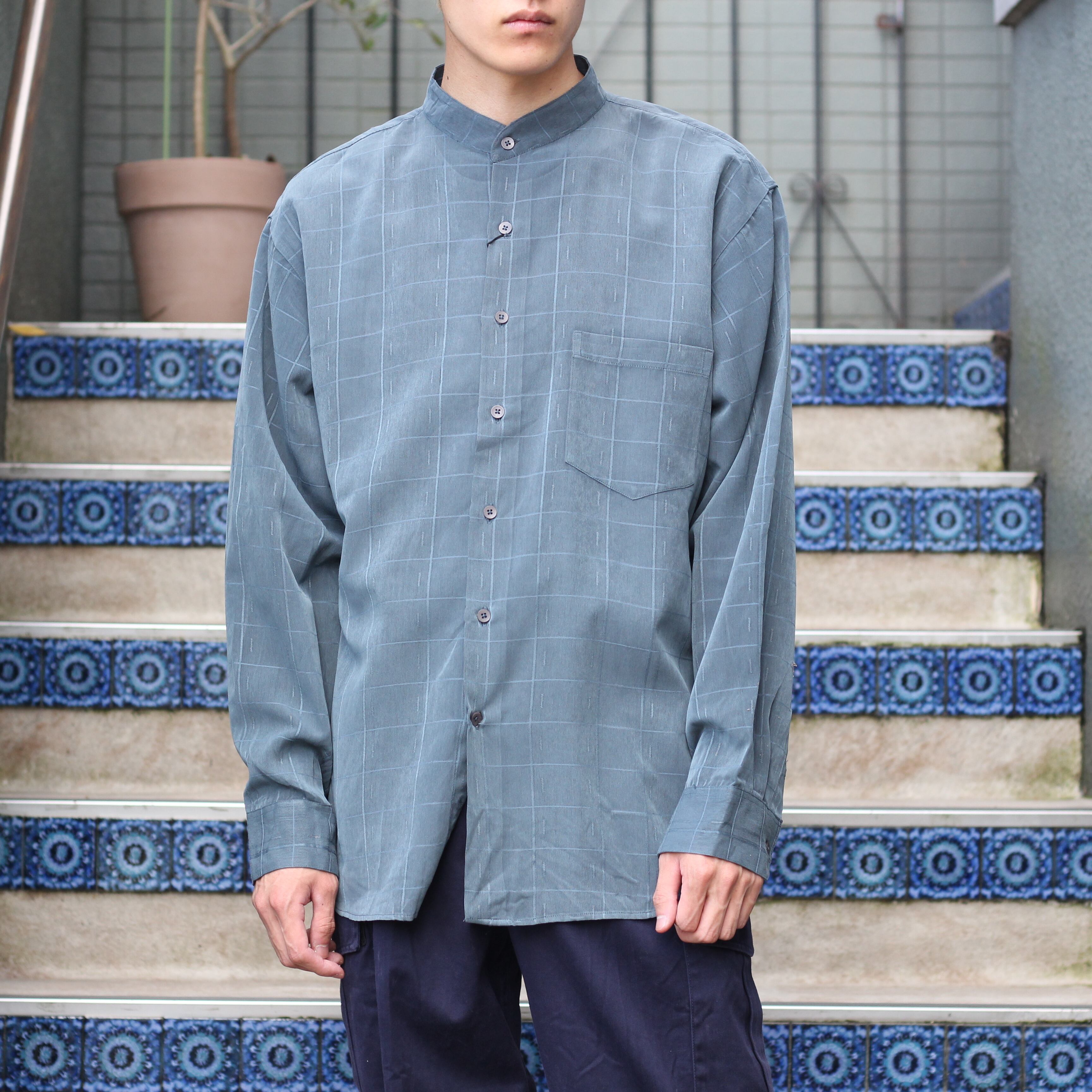 *SALE* USA VINTAGE BRUNO CHECK PATTERNED BAND COLLAR DESIGN SHIRT/アメリカ古着チェック柄バンドカラーデザインシャツ