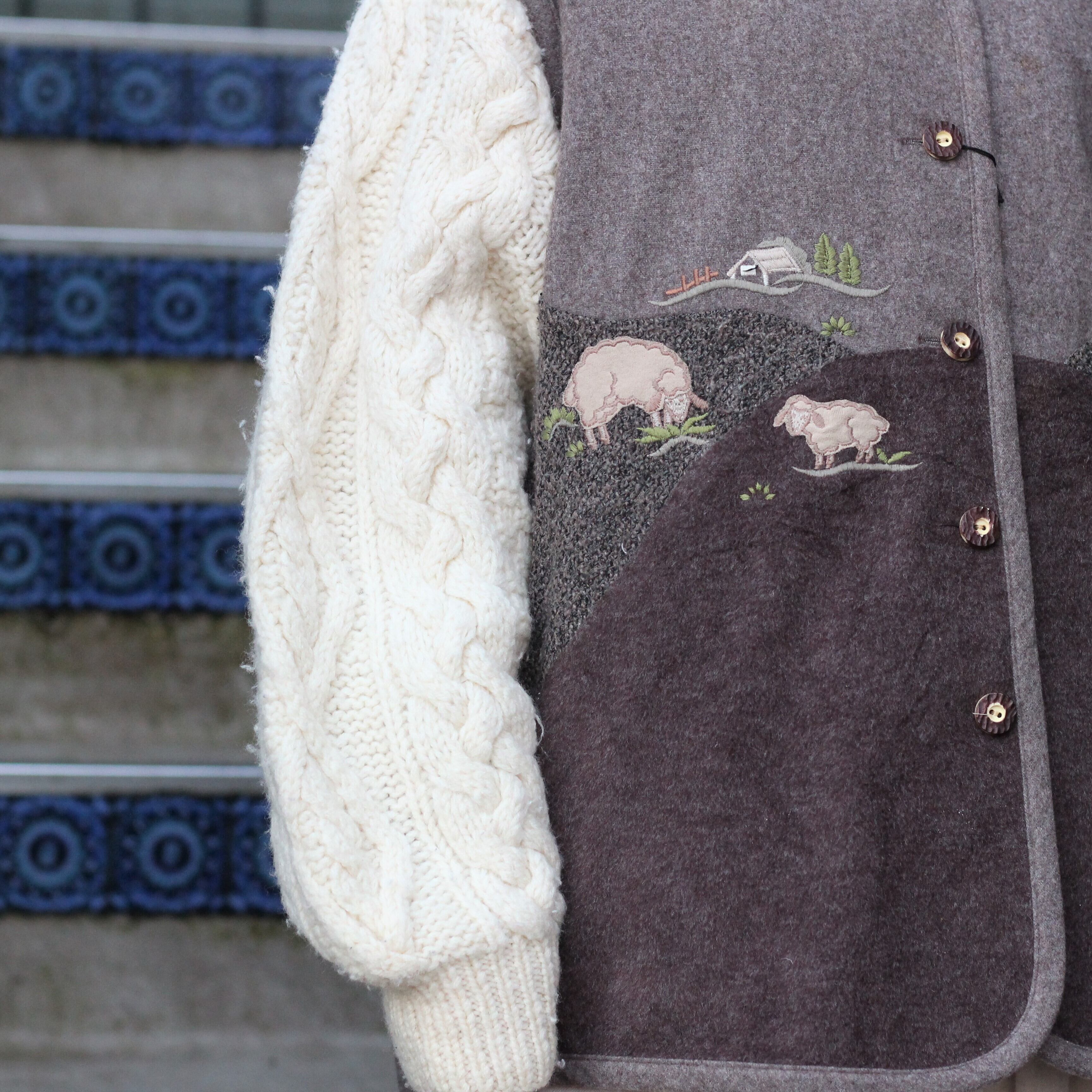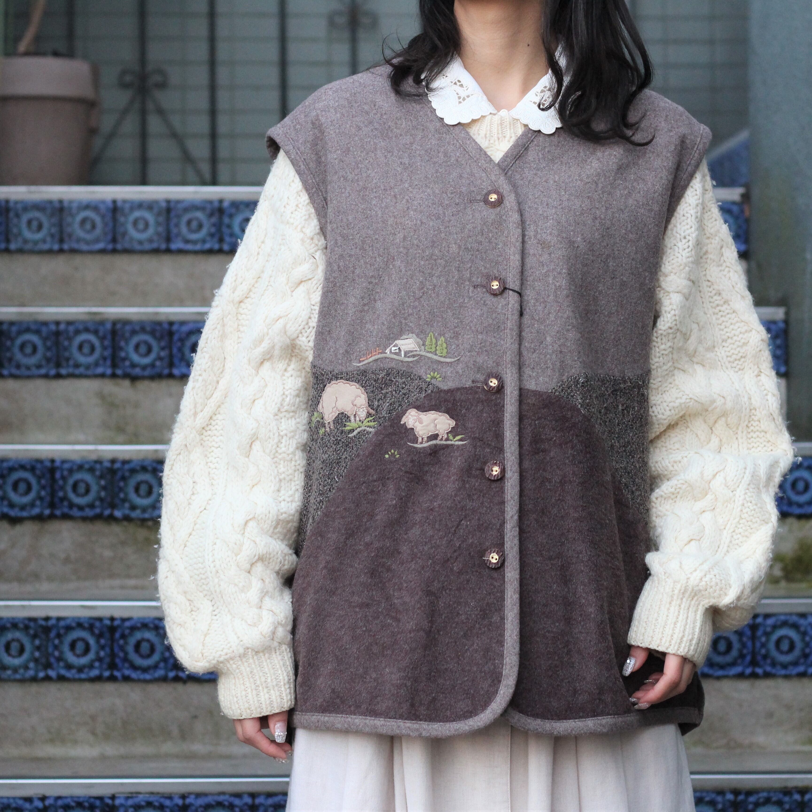 EU VINTAGE FER SHEEP DESIGN WOOL TYROLEAN VEST/ヨーロッパ古着ヒツジデザインチロリアンウールベスト