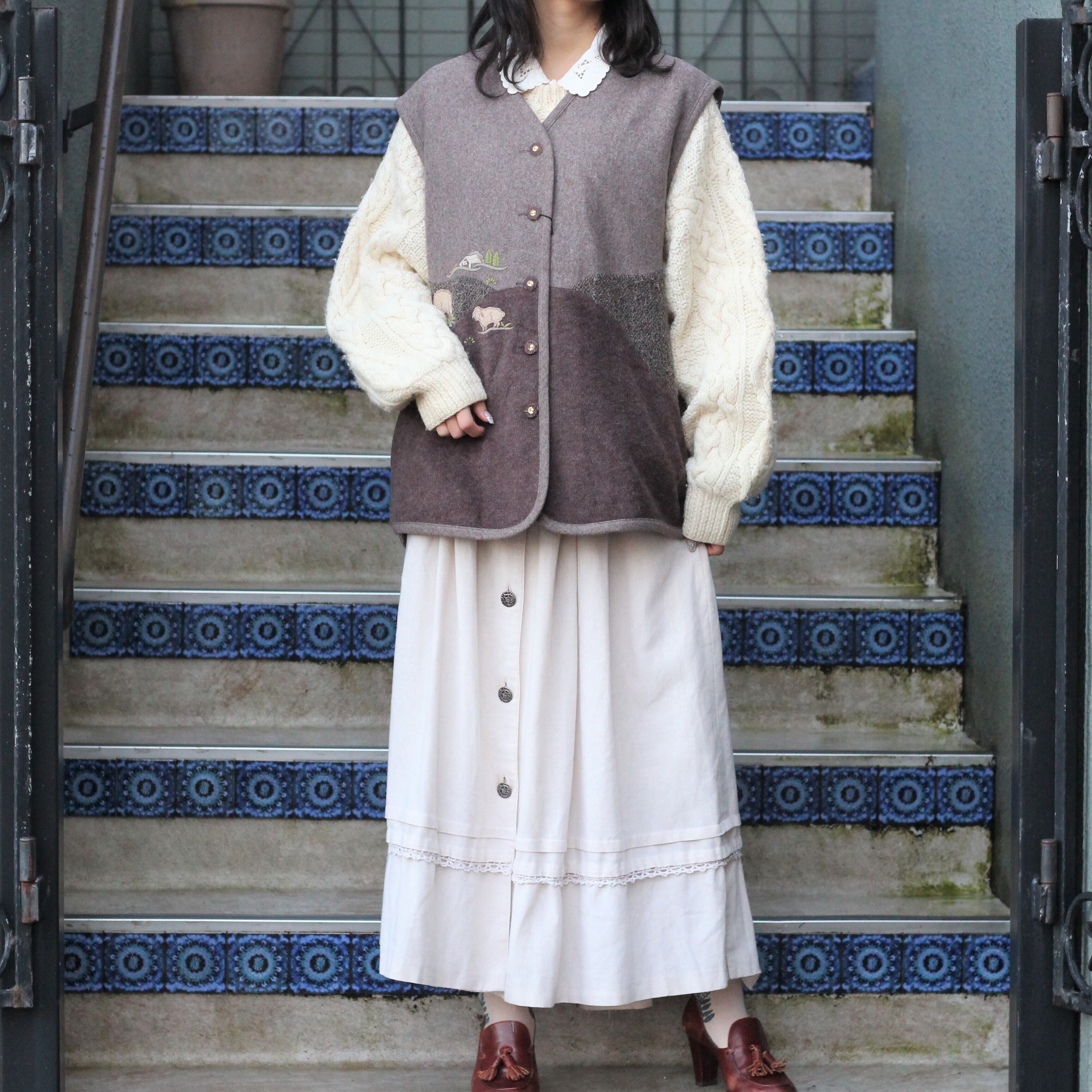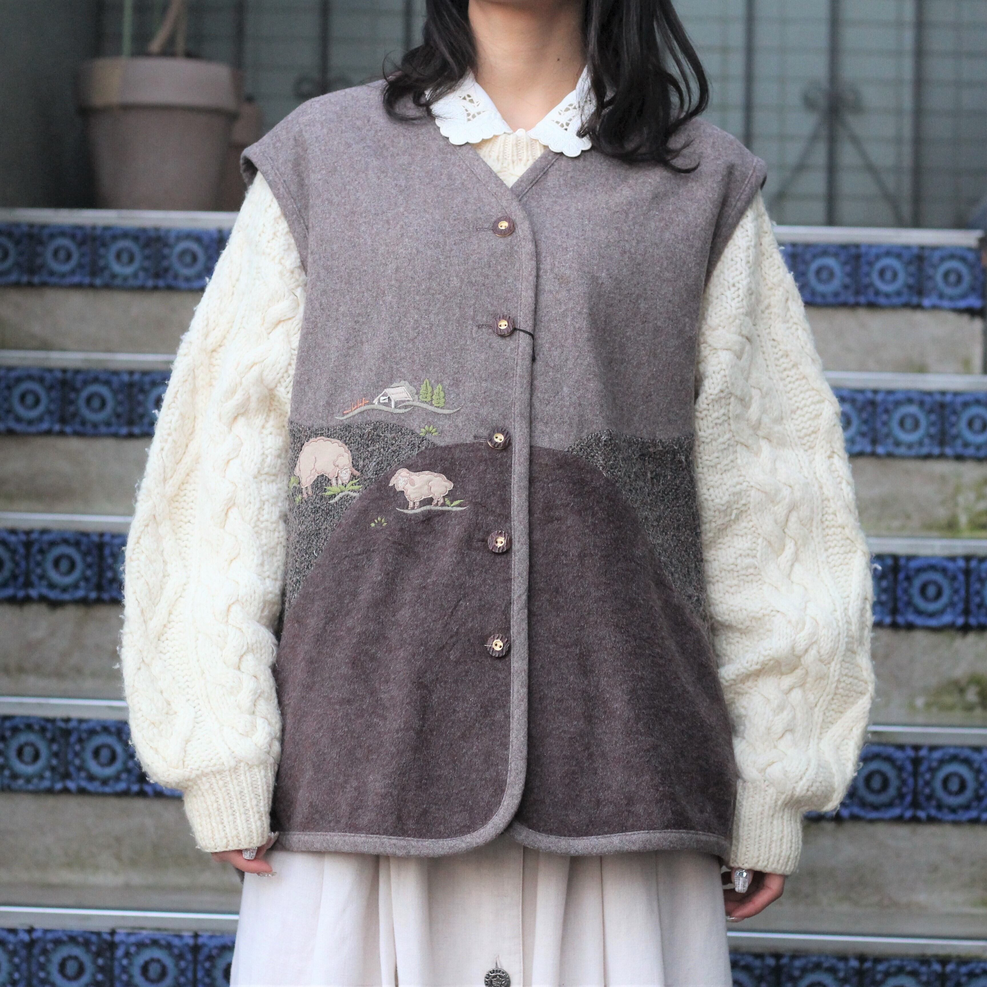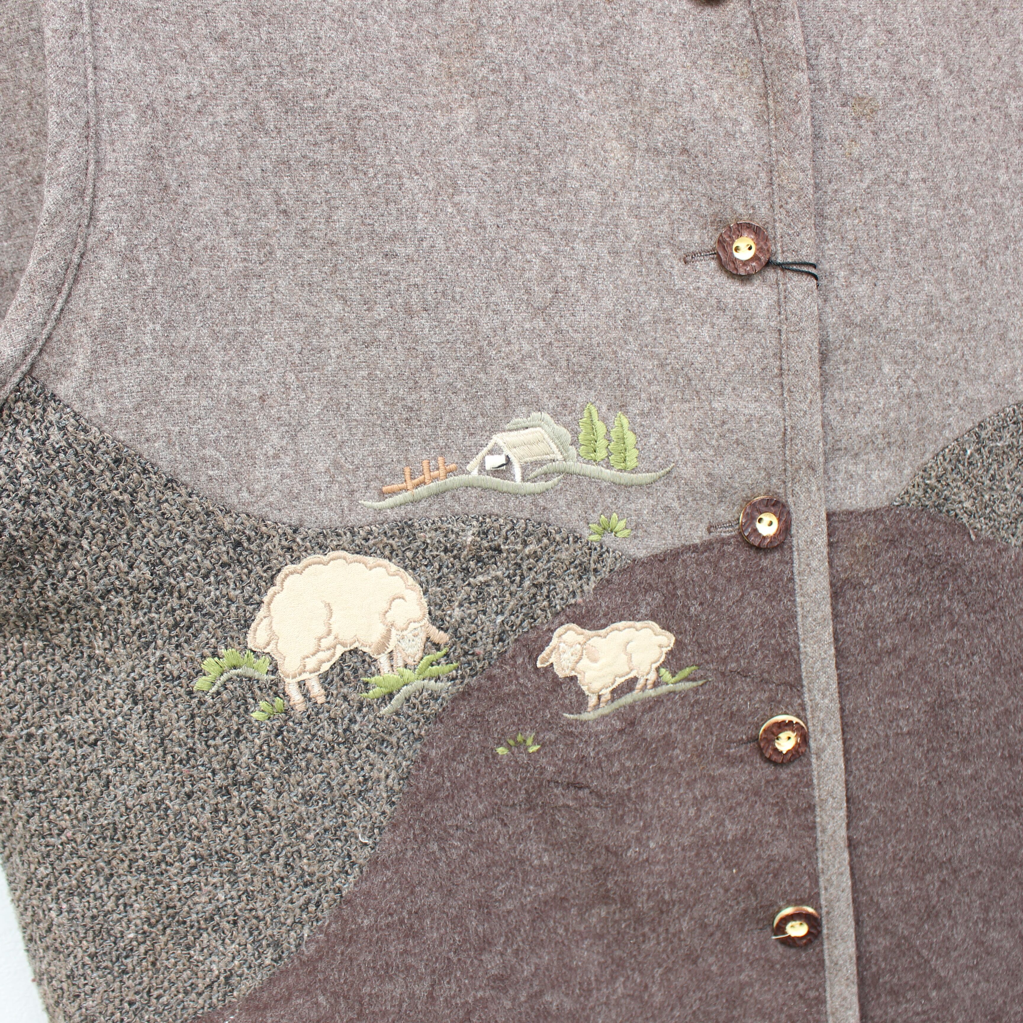 *SALE* EU VINTAGE FER SHEEP DESIGN WOOL TYROLEAN VEST/ヨーロッパ古着ヒツジデザインチロリアンウールベスト