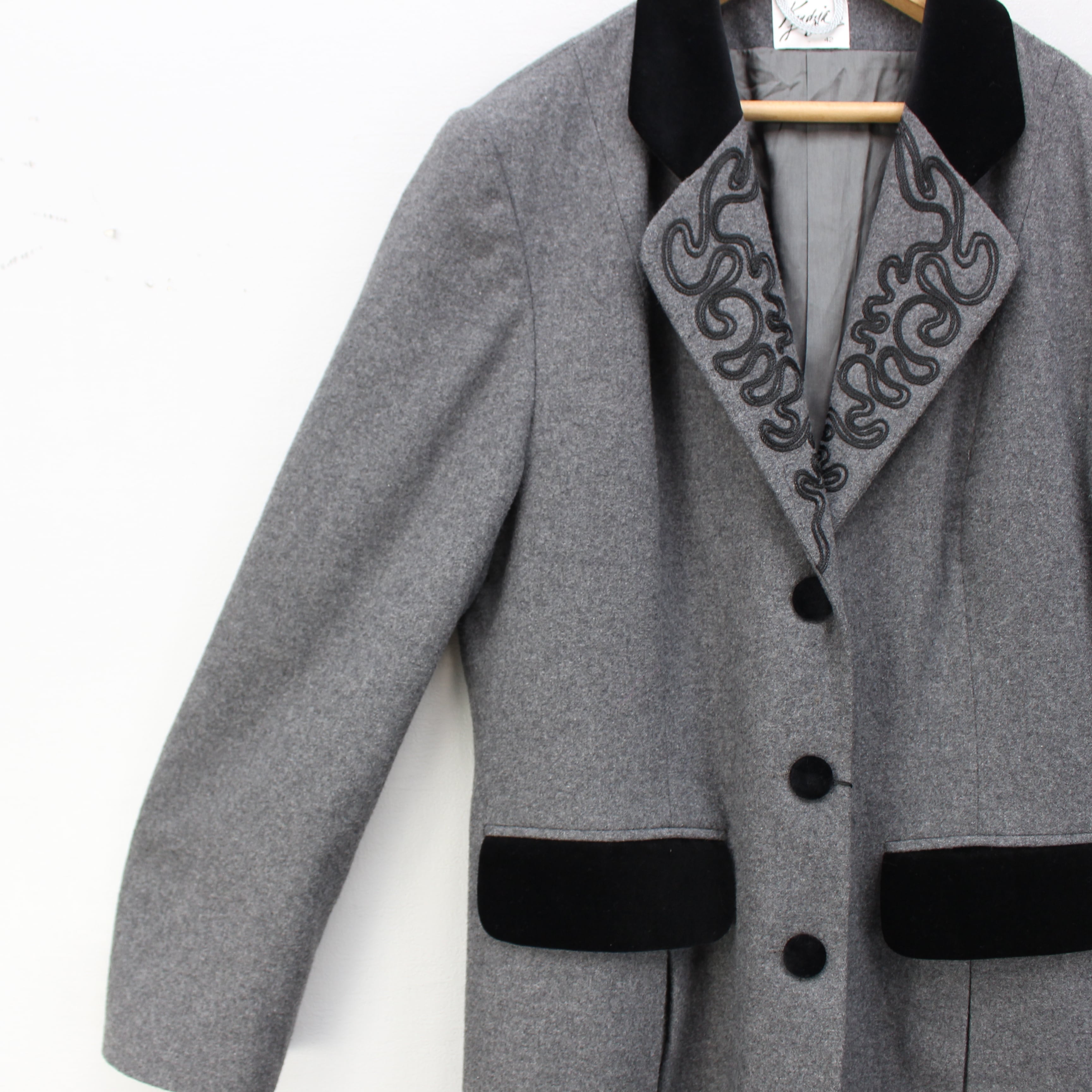 *SALE* EU VINTAGE Kendyia EMBROIDERY VELOUR PIPING WOOL DESIGN JACKET/ヨーロッパ古着刺繍ベロアパイピングウールデザインジャケット