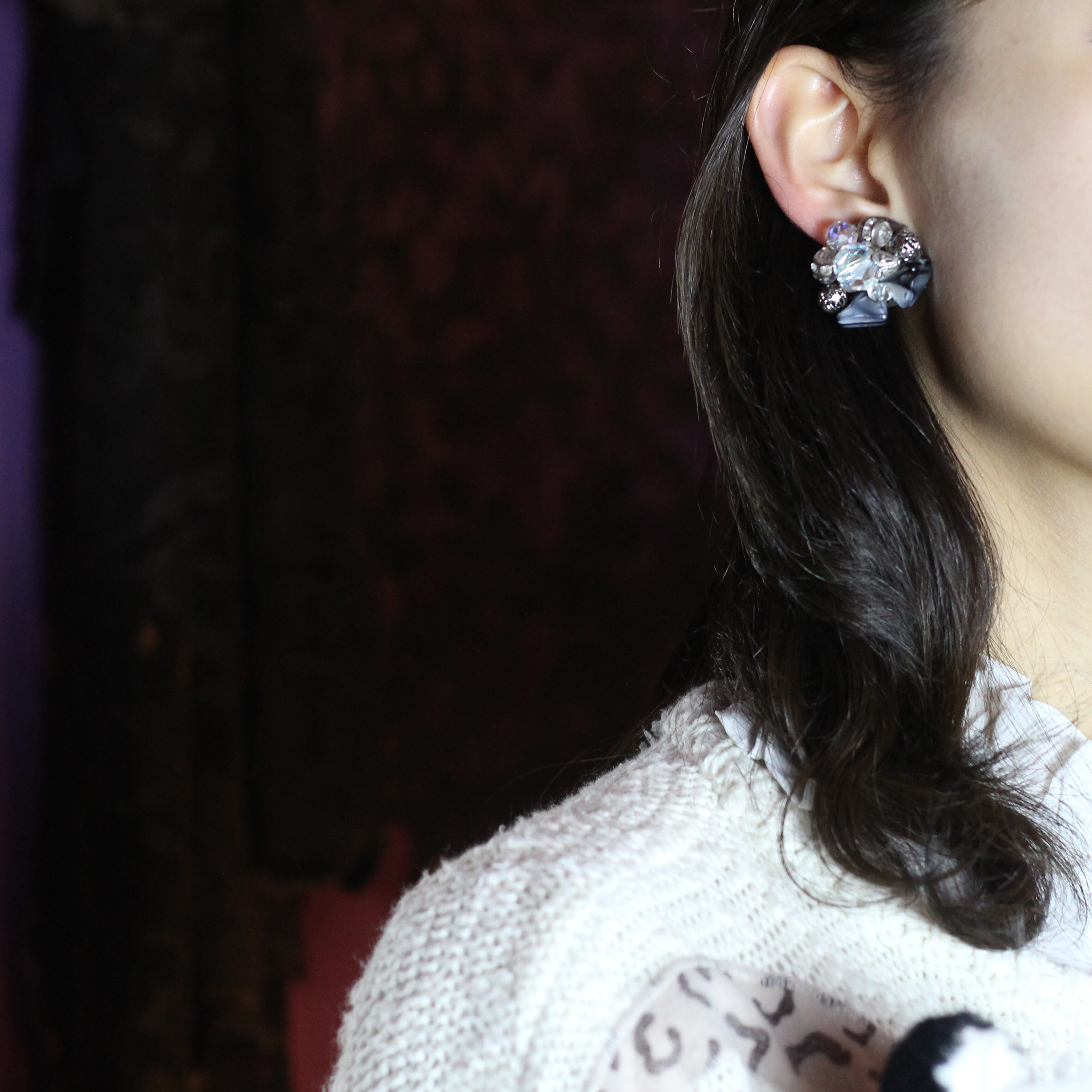 USA VINTAGE CLEAR STONE DESIGN EAR CLIPS/アメリカ古着クリアストーンデザインイヤリング