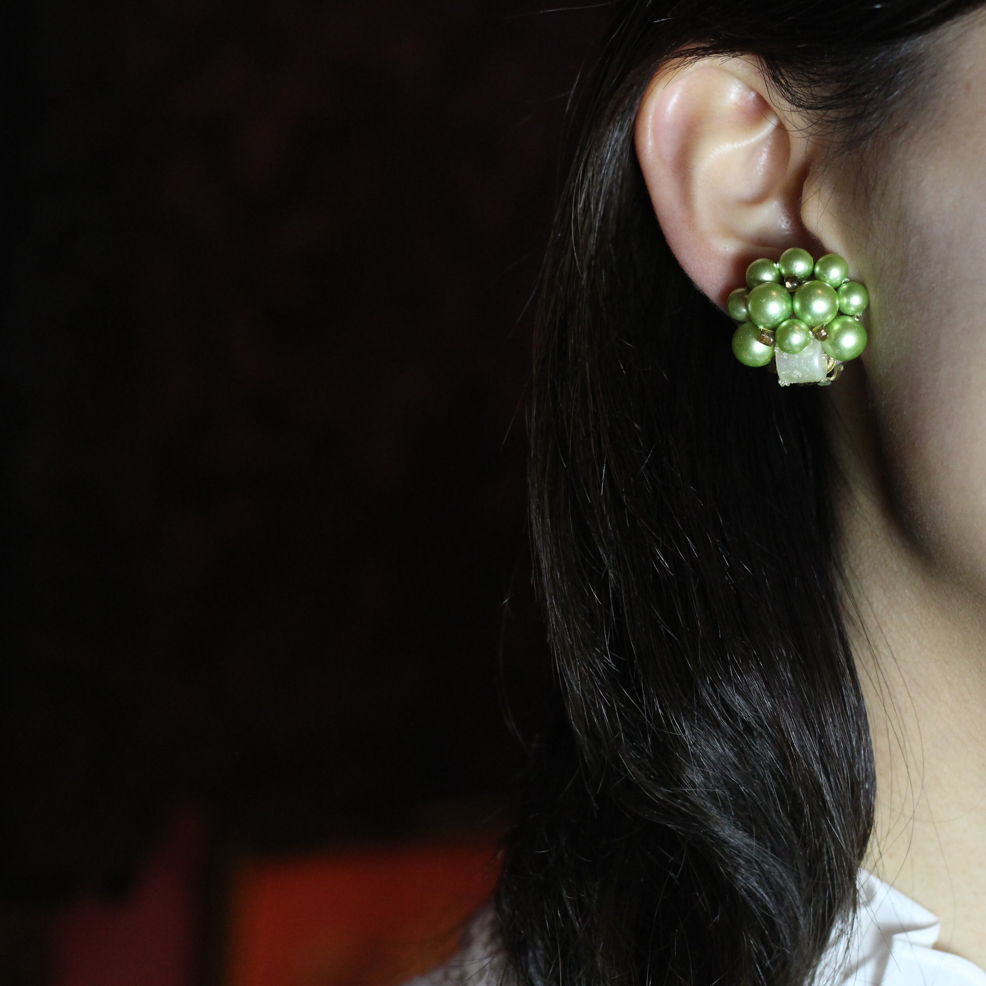 USA VINTAGE COLOR PEARL STONE DESIGN EAR CLIPS/アメリカ古着カラーパールストーンデザインイヤリング