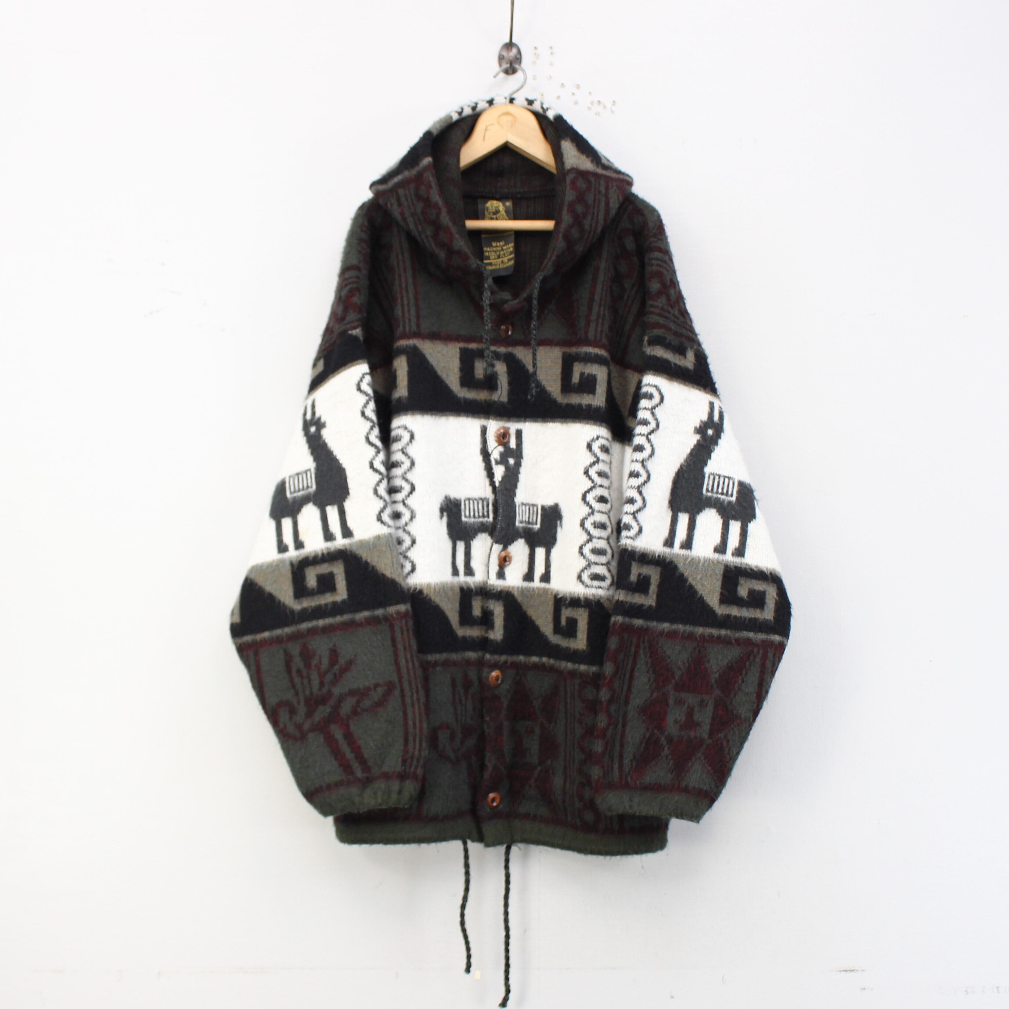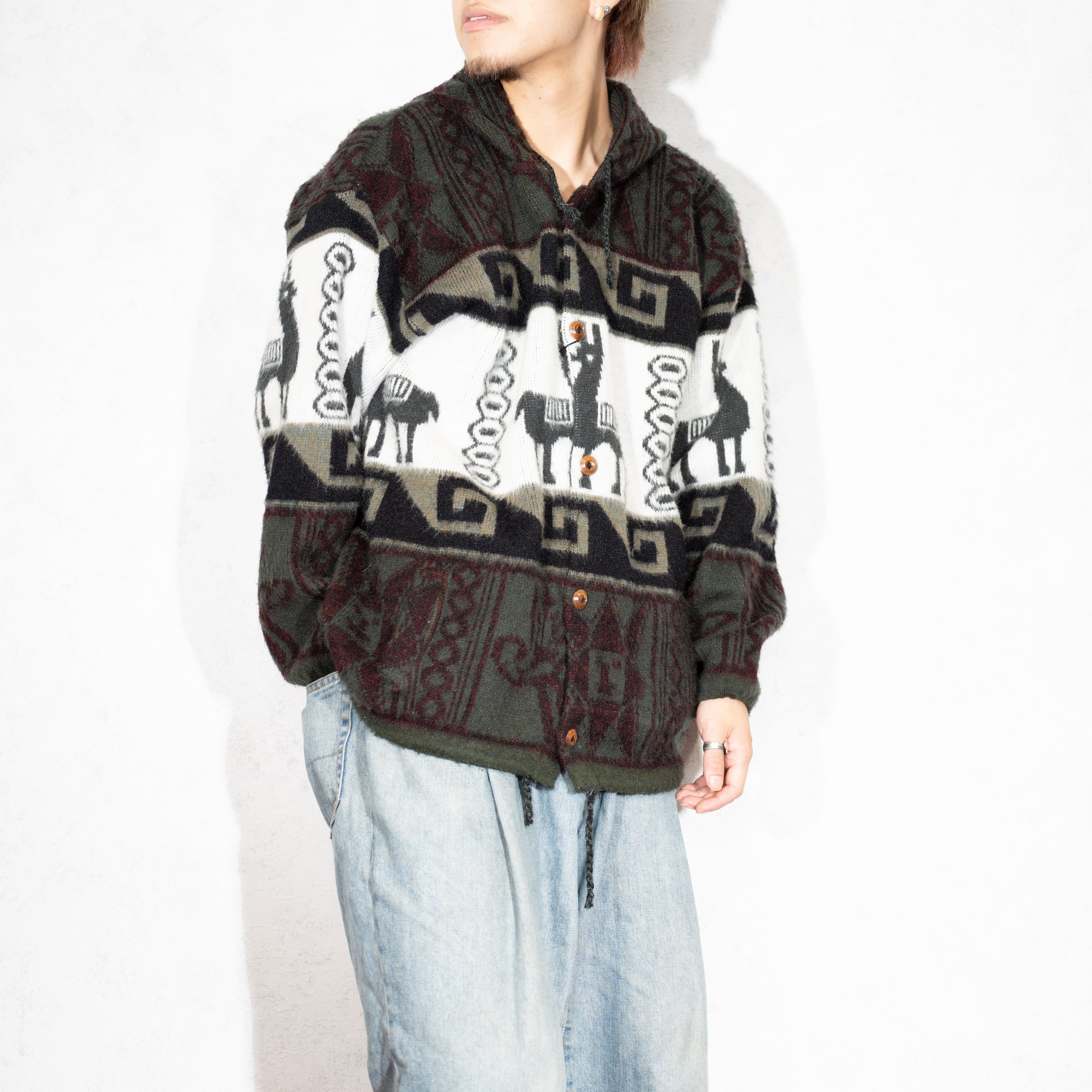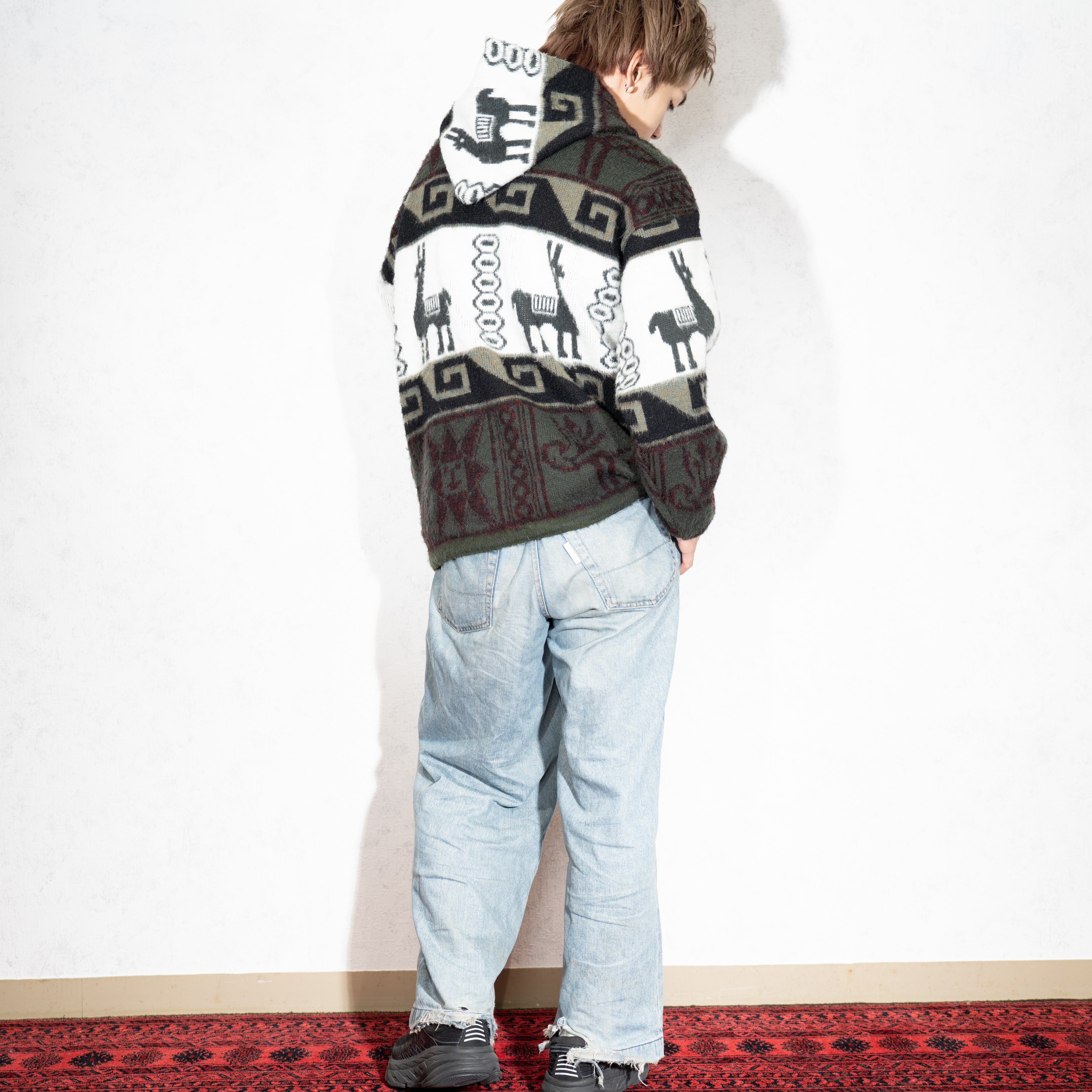 USA VINTAGE TEJIDOS RUMINAHUI ANIMAL PATTERNED WOOL MEXICAN HOODIE JACKET/アメリカ古着アニマル柄ウールメキシカンフーディジャケット(パーカー)
