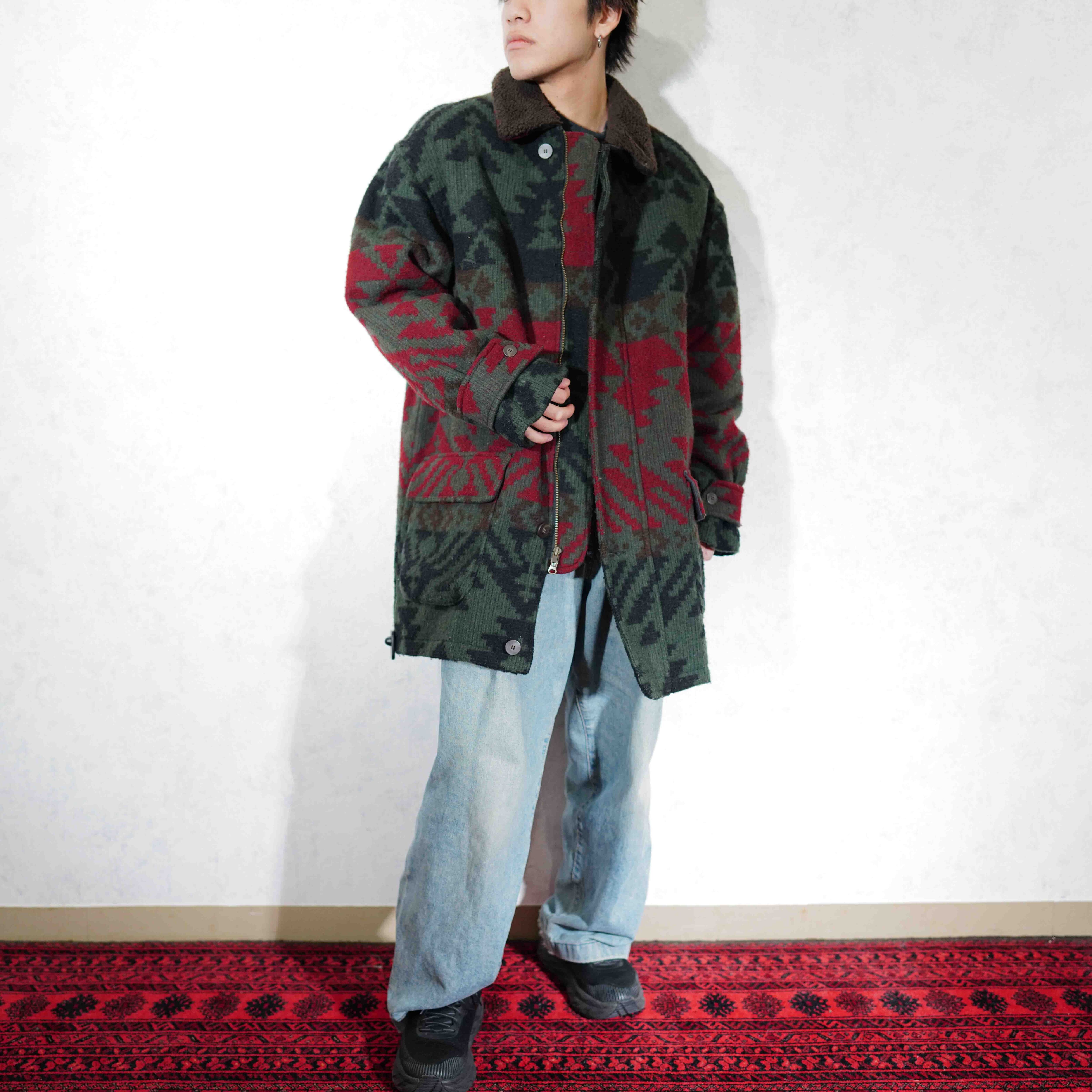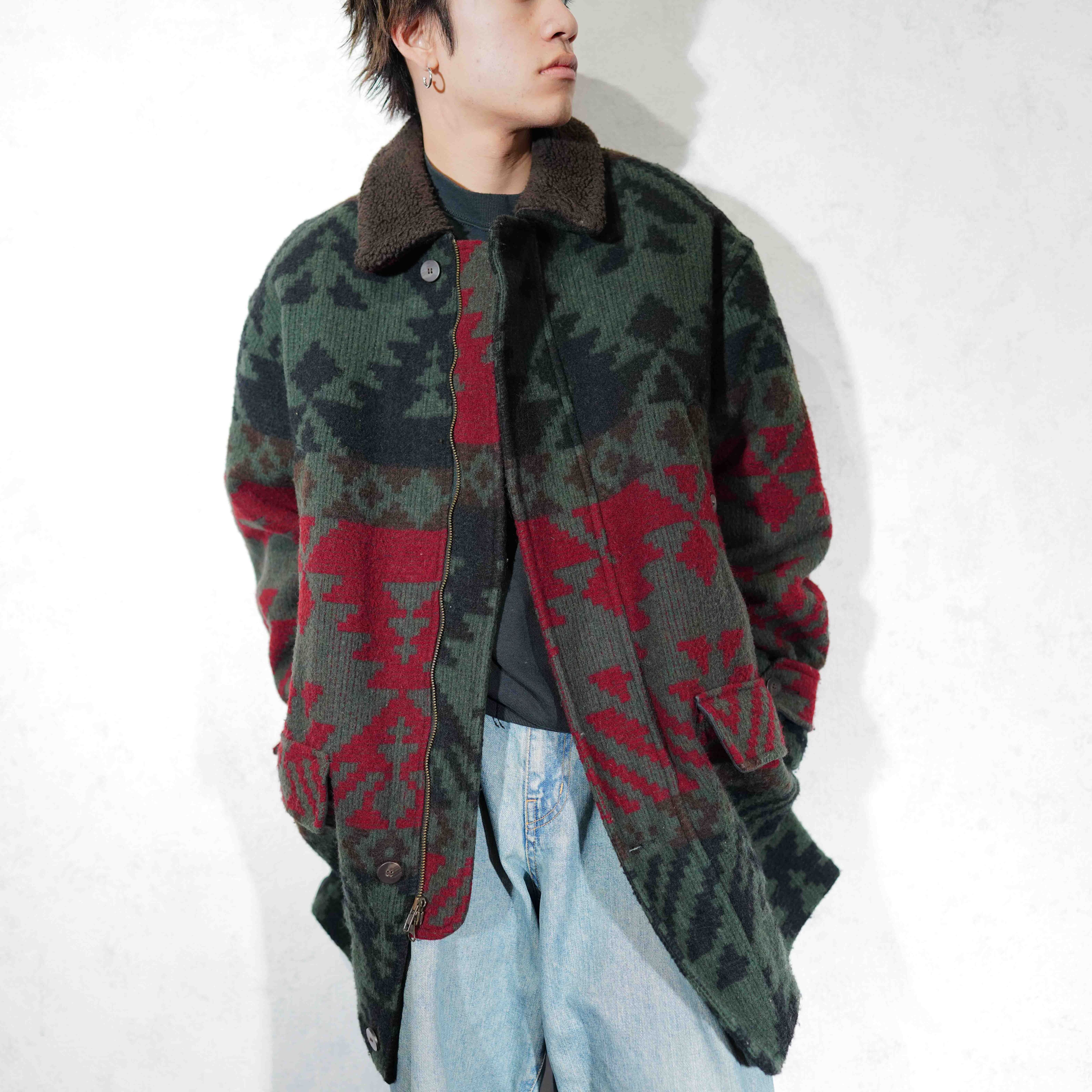 USA VINTAGE WOOL RICH NATIVE PATTERNED WOOL COAT/アメリカ古着ウールリッチネイティブ柄ウールコート
