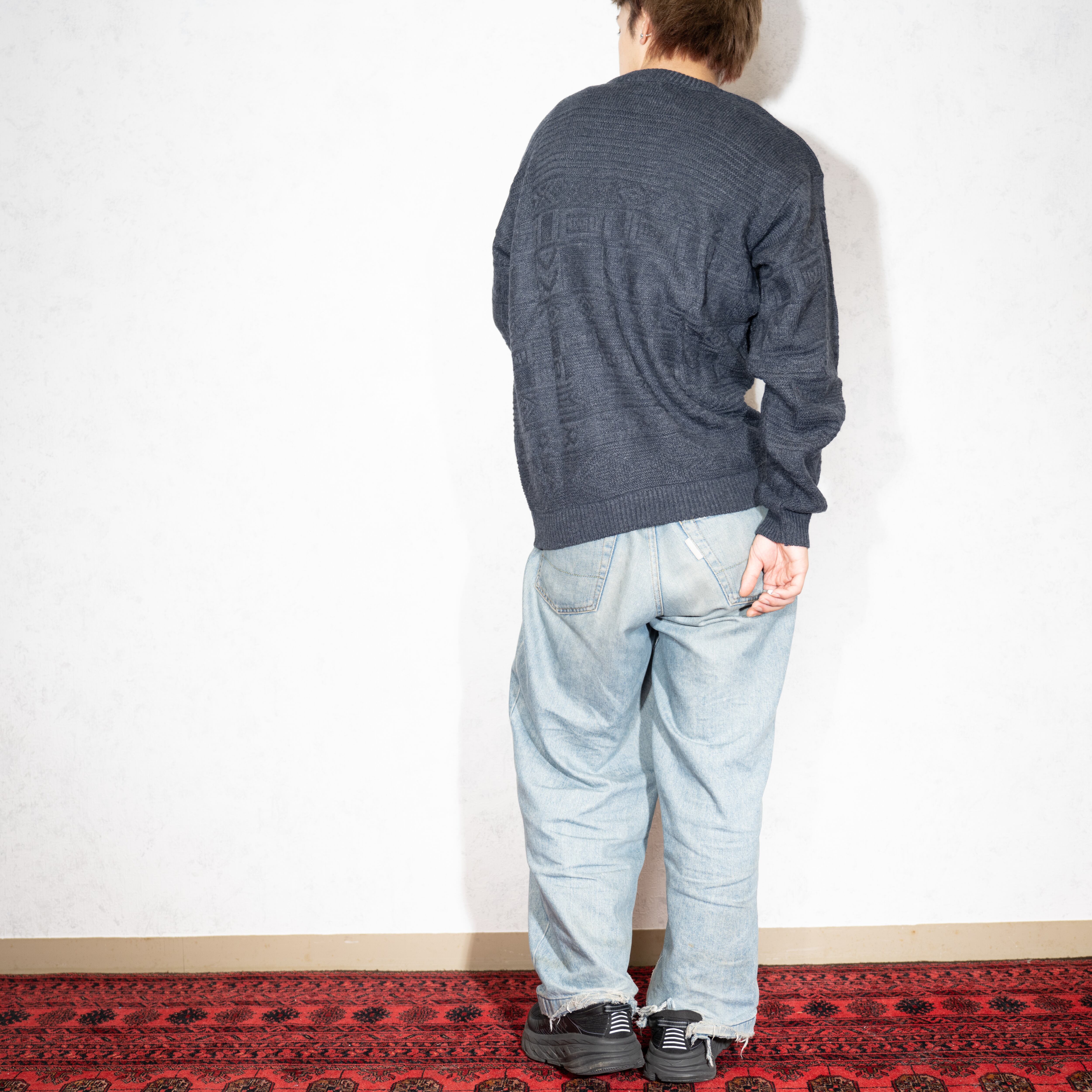 USA VINTAGE TIP TOP TAILORS PATTERNED DESIGN V NECK KNIT/アメリカ古着柄デザインVネックニット
