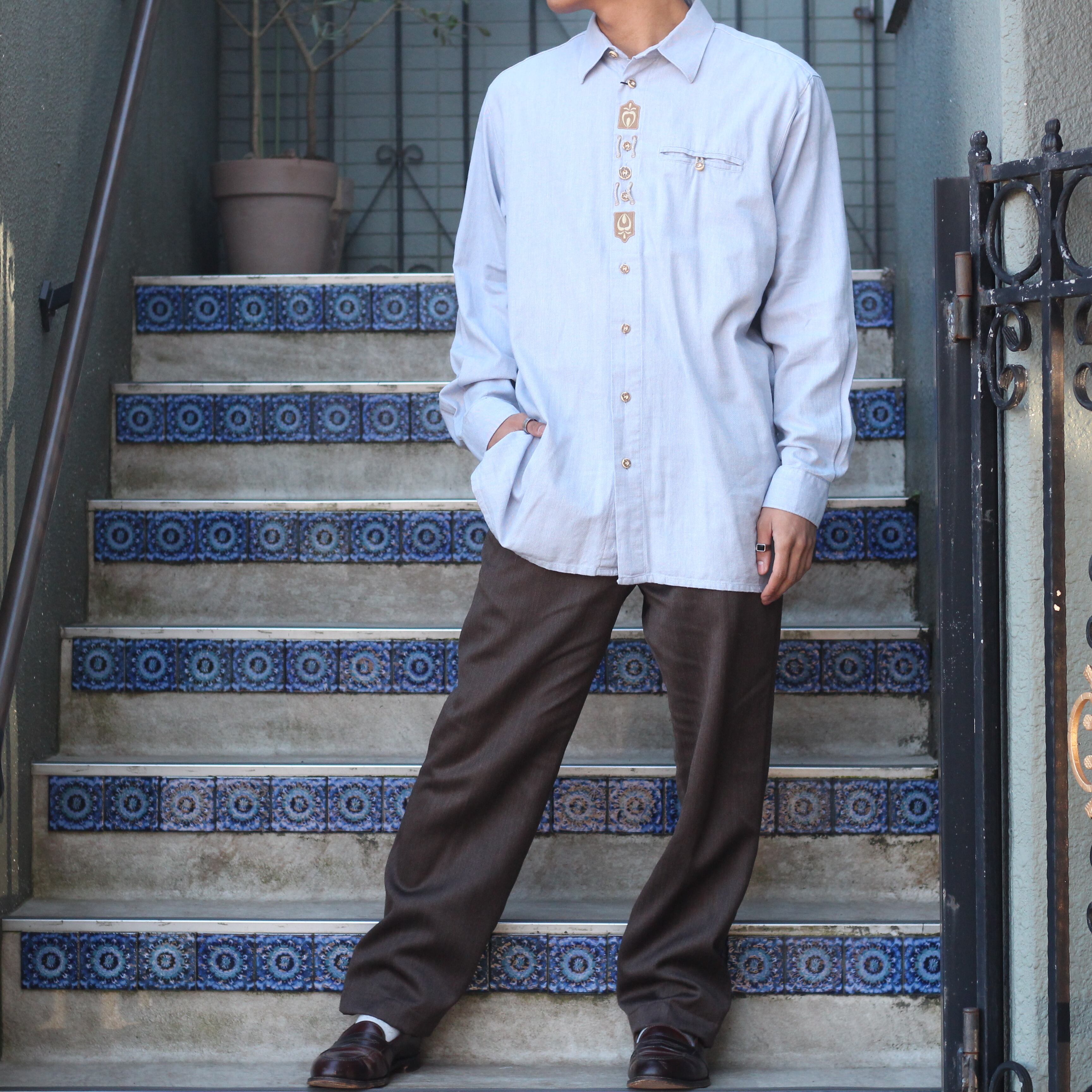 EU VINTAGE EMBROIDERY GIMMICK DESIGN TYROLEAN SHIRT/ヨーロッパ古着刺繍ギミックデザインチロリアンシャツ