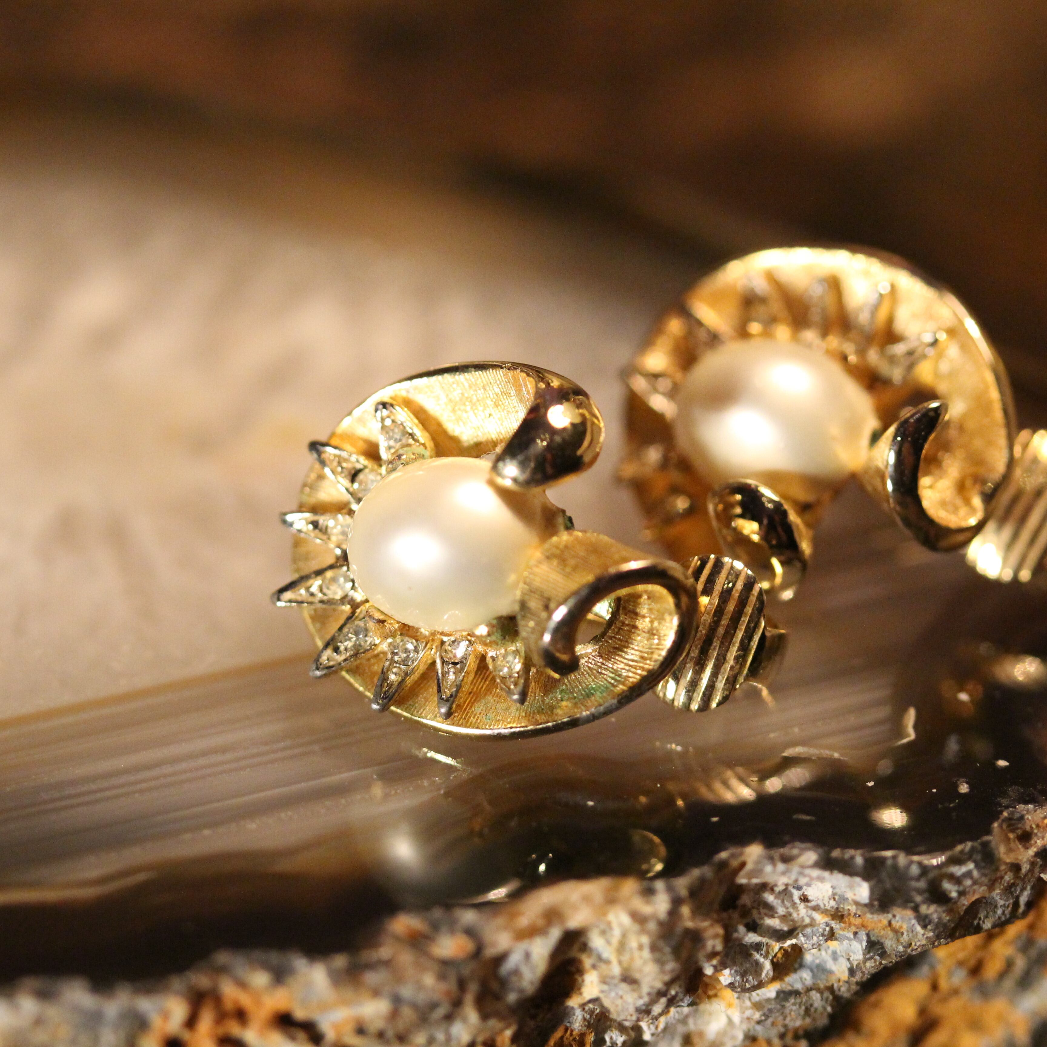 USA VINTAGE PEARL DESIGN EAR CLIPS/アメリカ古着パールデザインイヤリング
